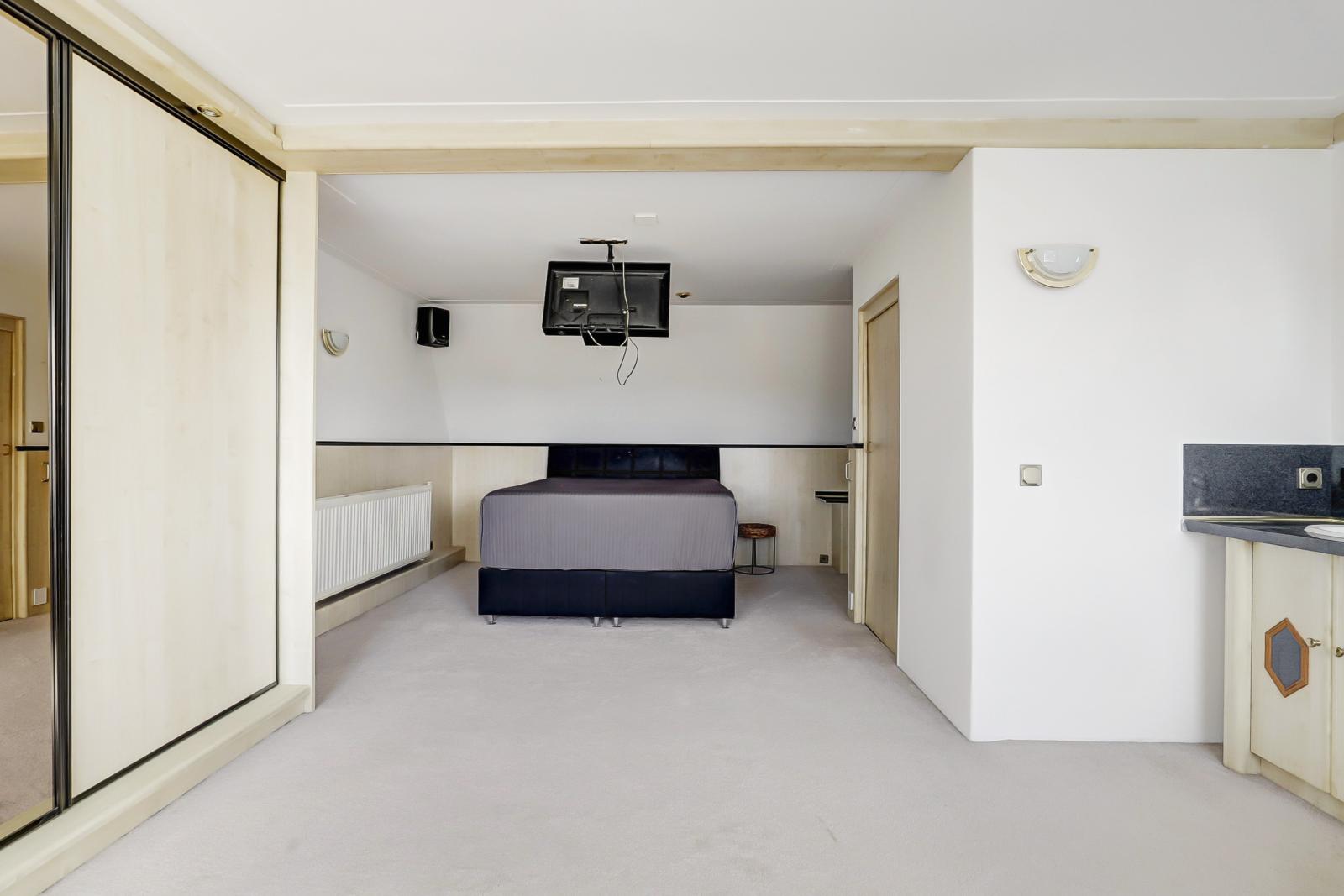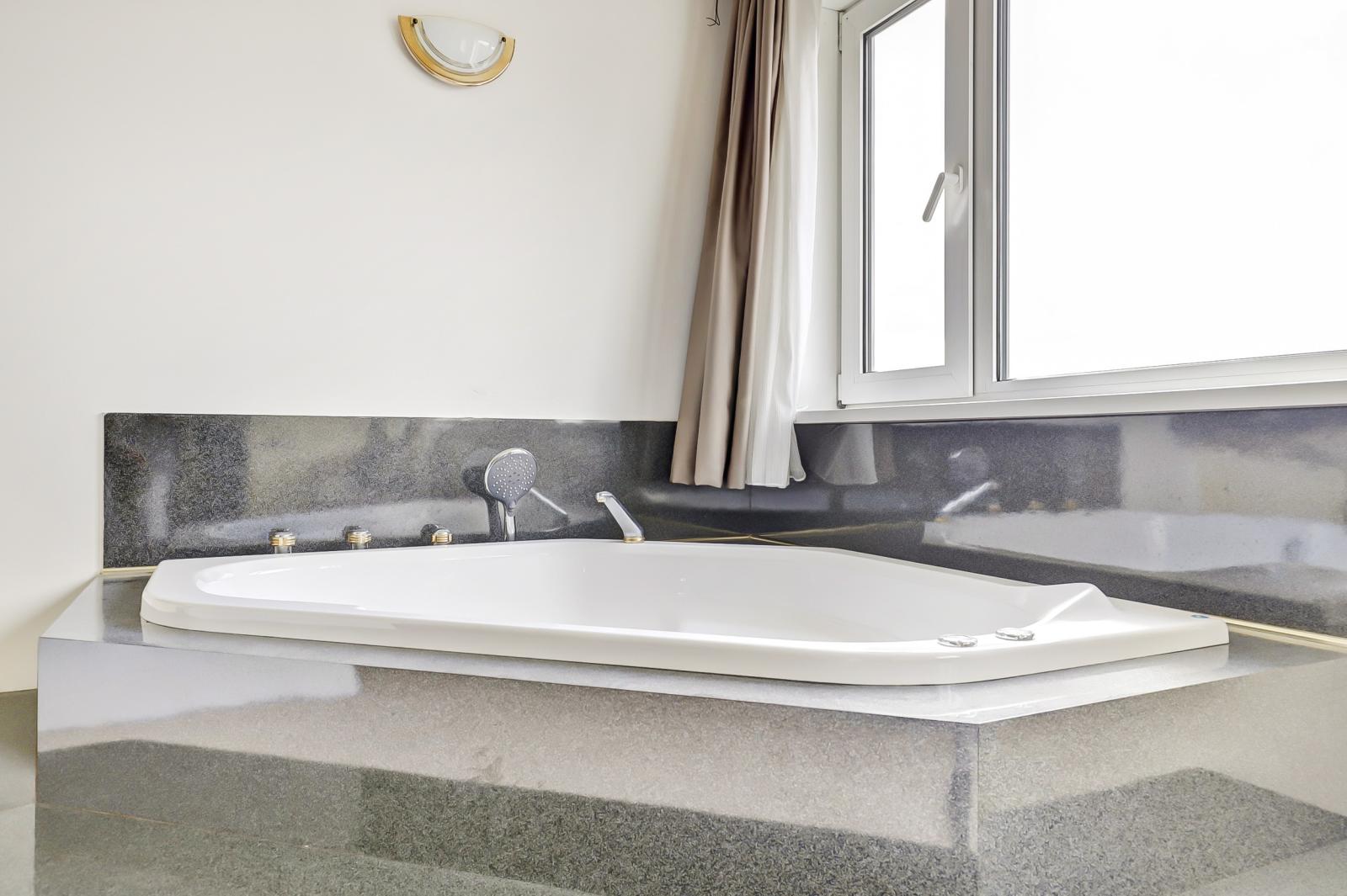 Tweede verdieping: grote zolderkamer voorzien van whirlpool en wastafel.