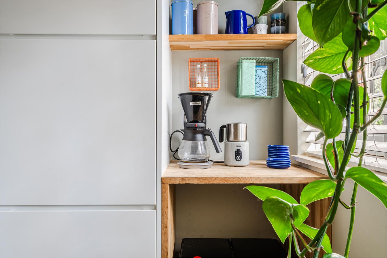 Het barretje geeft de keuken een besloten gevoel en tegelijk veel sfeer.