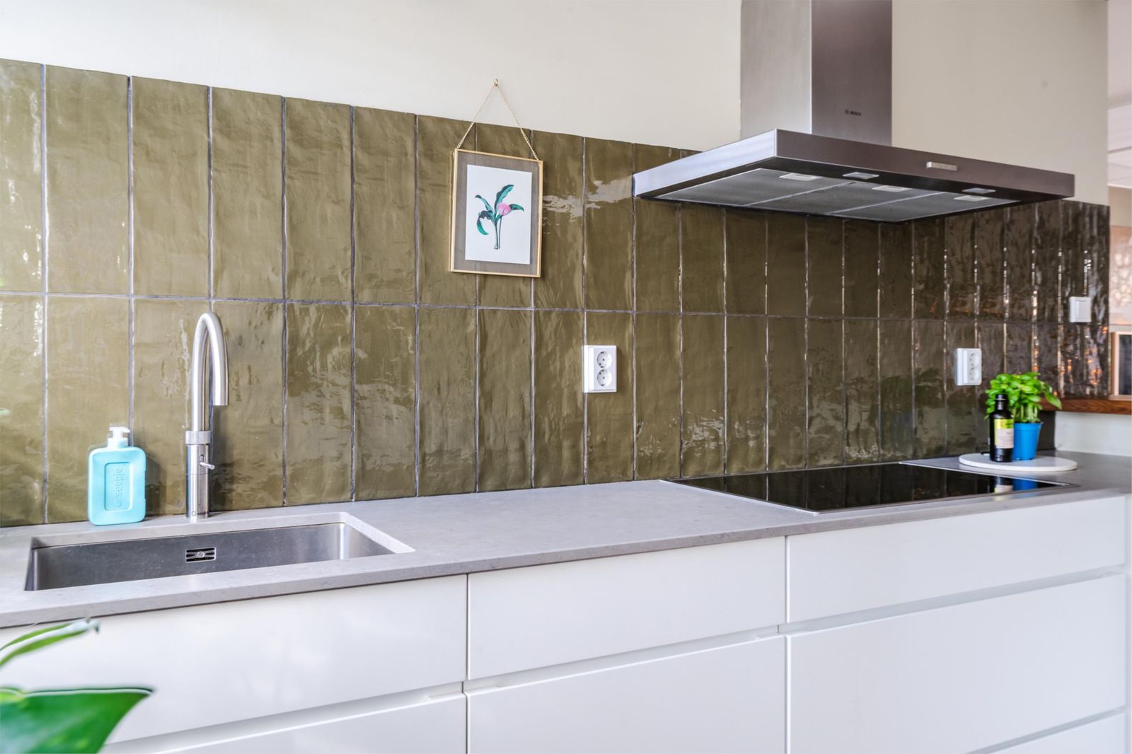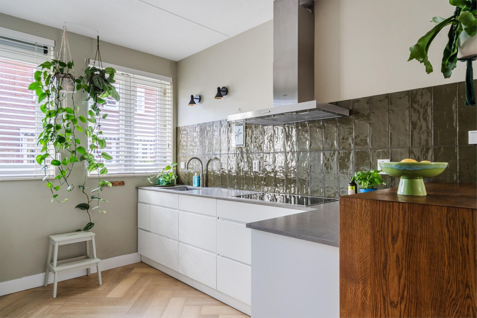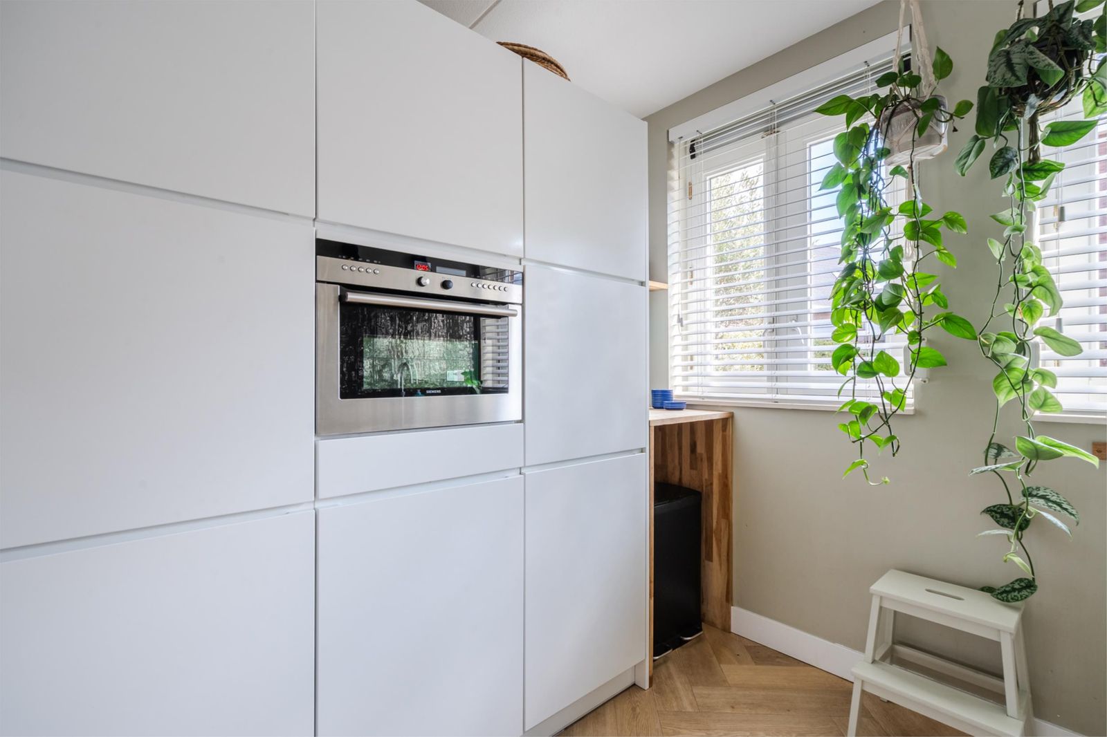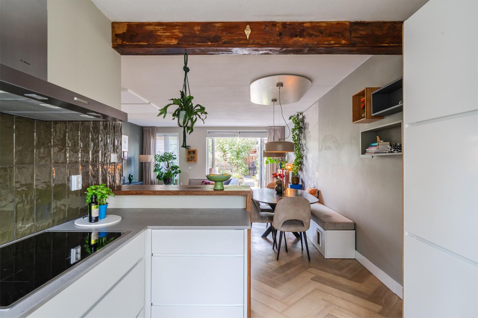 De L vormige keuken (2020) ligt aan de voorzijde van de woning. De keuken heeft naast een koel- vriescombinatie, vaatwasser en combimagnetron een Quooker en een inductie kookplaat.
