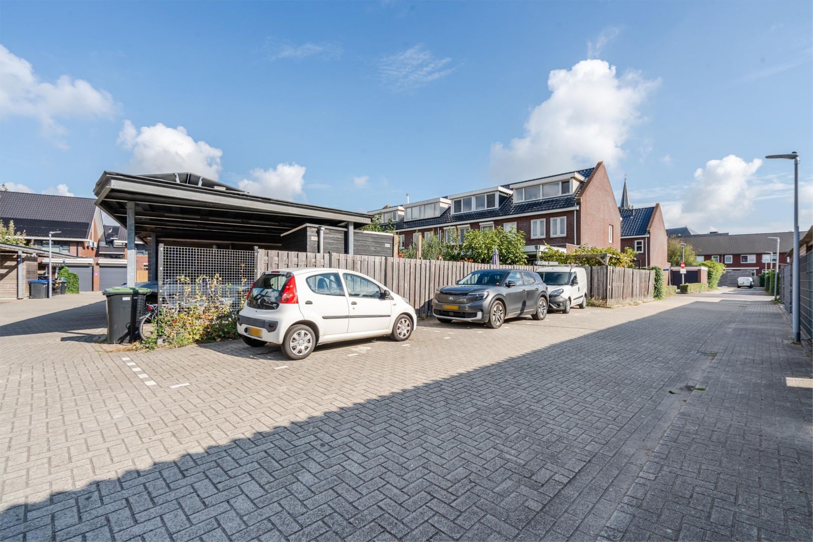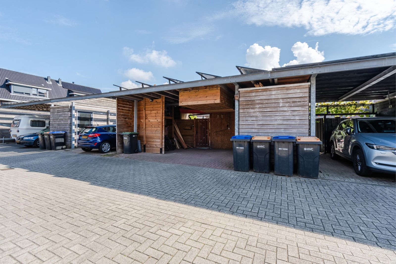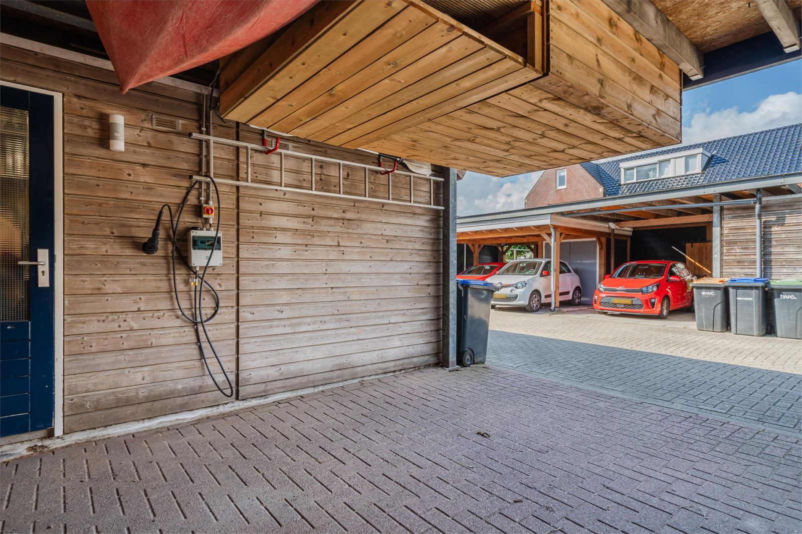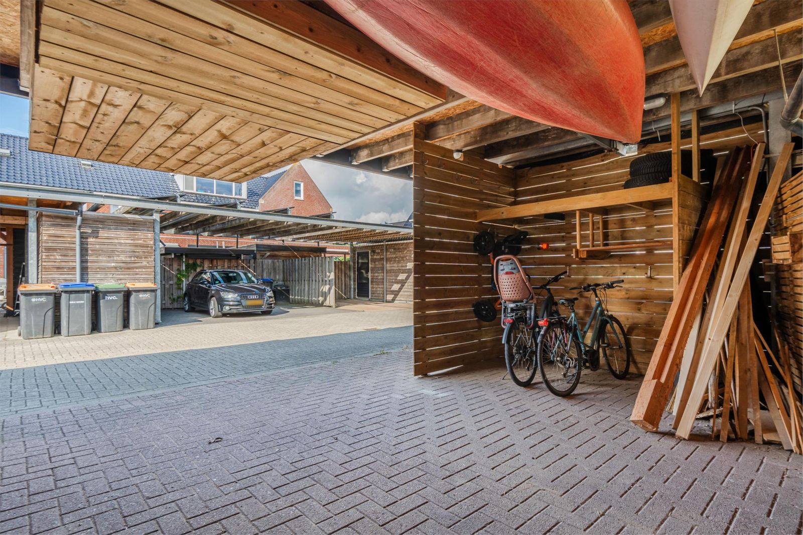 - Carport voor 2 auto's. De huidige bewoners gebruiken de 2e auto plek voor het stallen van extra fietsen. Het muurtje dat hiervoor geplaatst is kan eenvoudig weer weg gehaald worden.