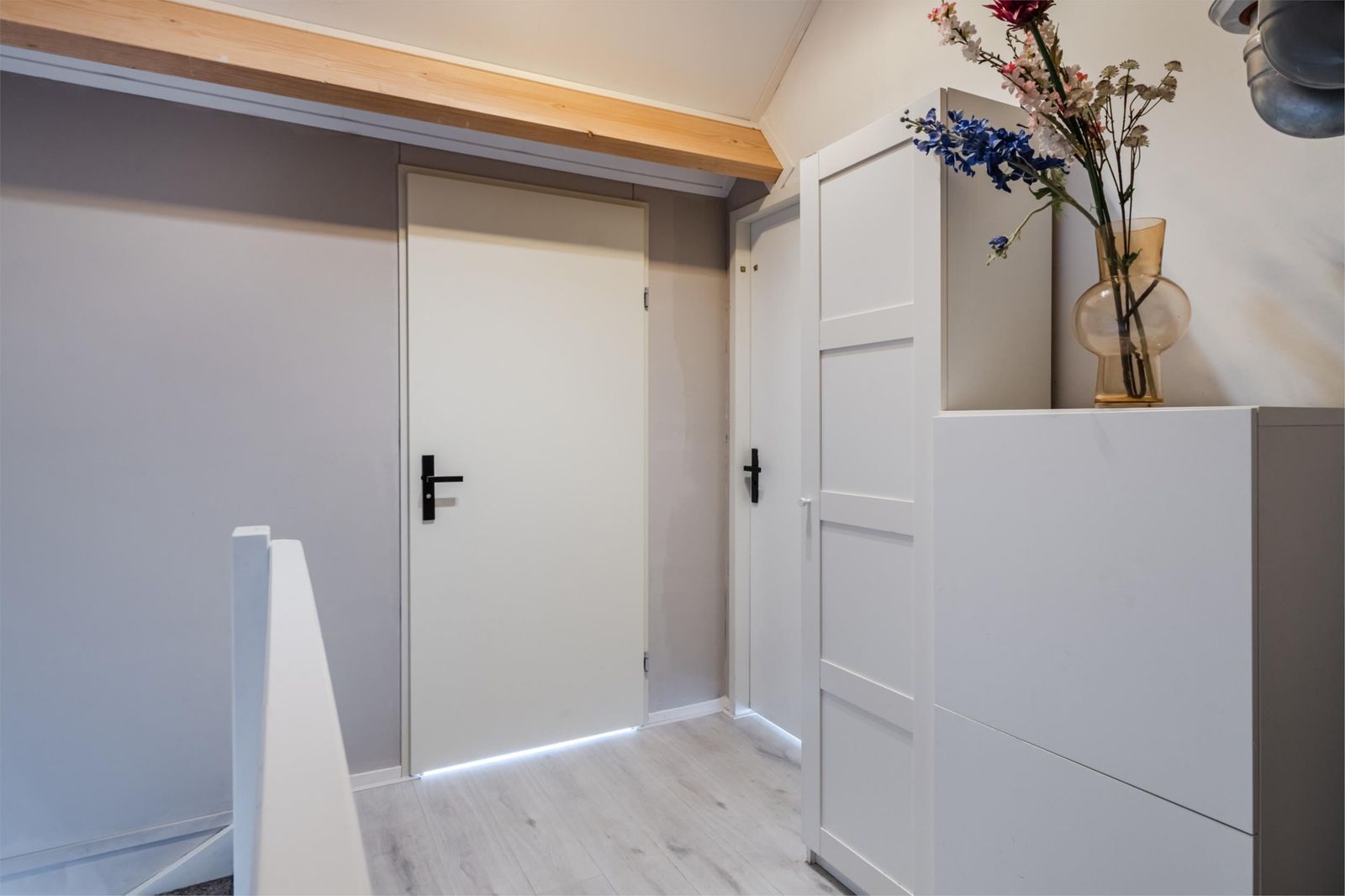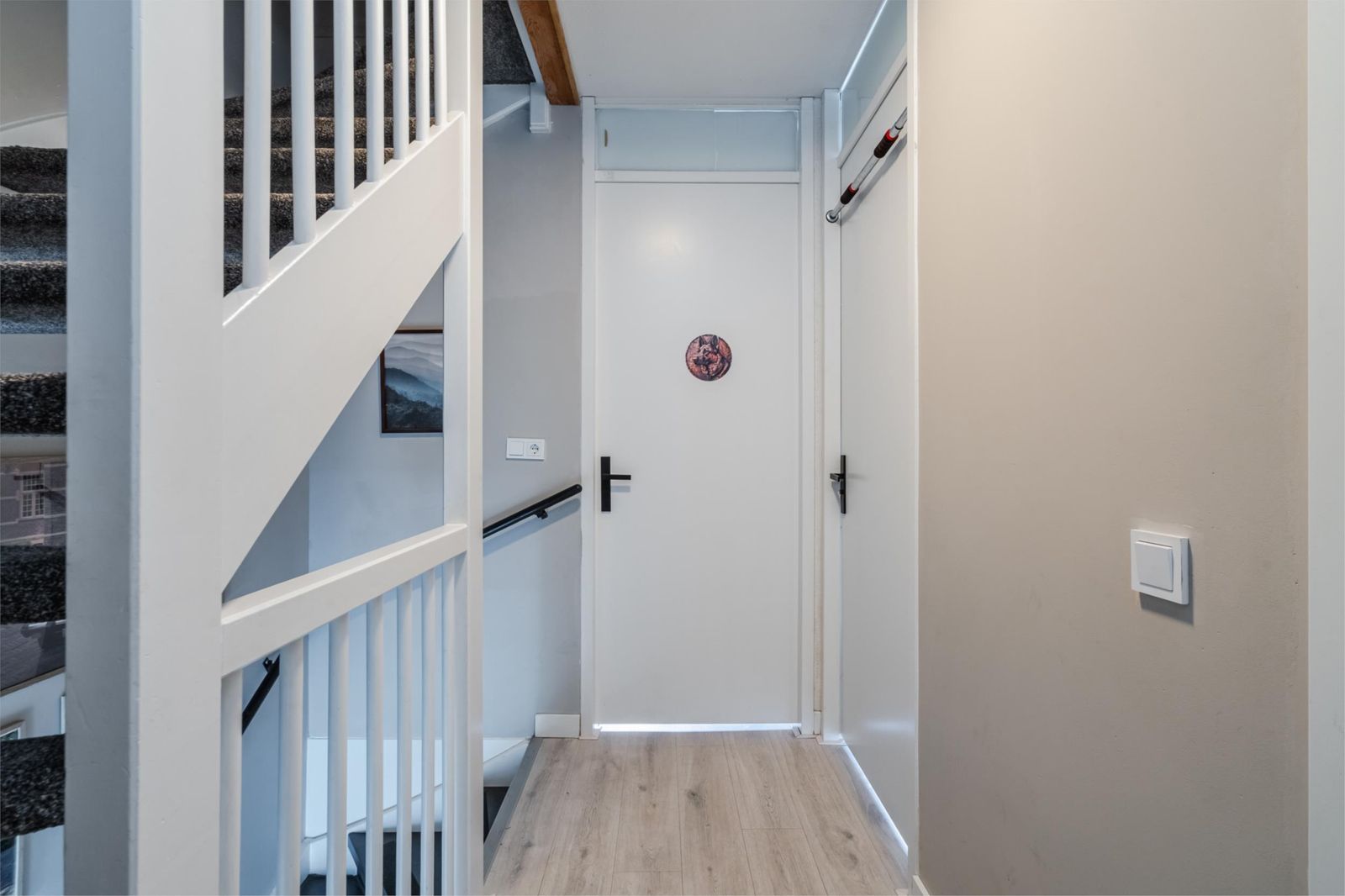 Op de gehele 1e verdieping ligt een lichte laminaatvloer (2020).