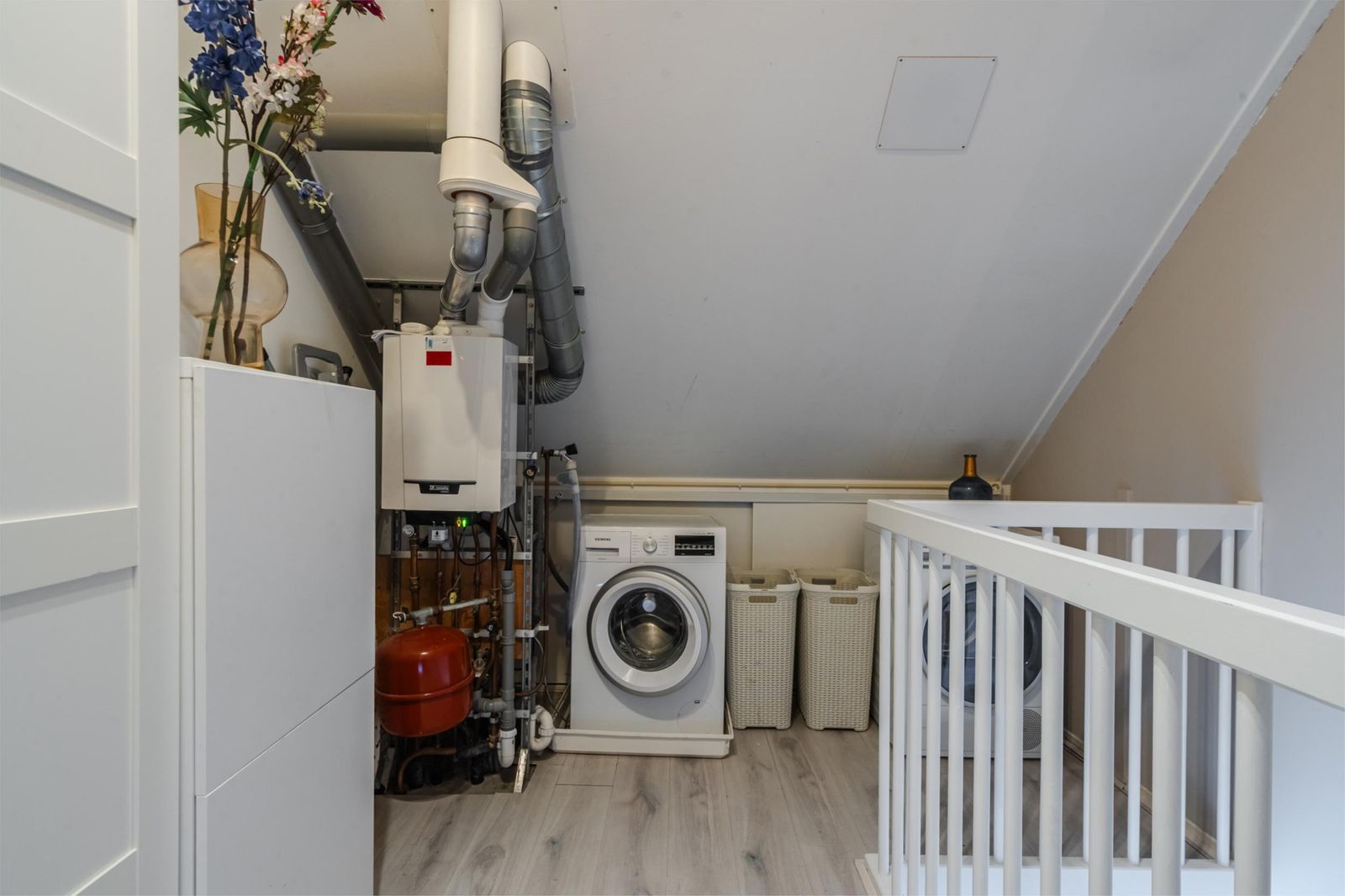 Een vaste trap leidt naar de tweede verdieping, die verrassend ruim en licht is dankzij een dakkapel aan de voorzijde en aan de achterzijde (2020). Op deze verdieping bevinden zich nog eens twee slaapkamers. De voorzolder heeft aansluitingen voor de wasmachine en hier bevindt zich de cv-installatie. Ook op deze verdieping ligt een lichte laminaatvloer (2020).
