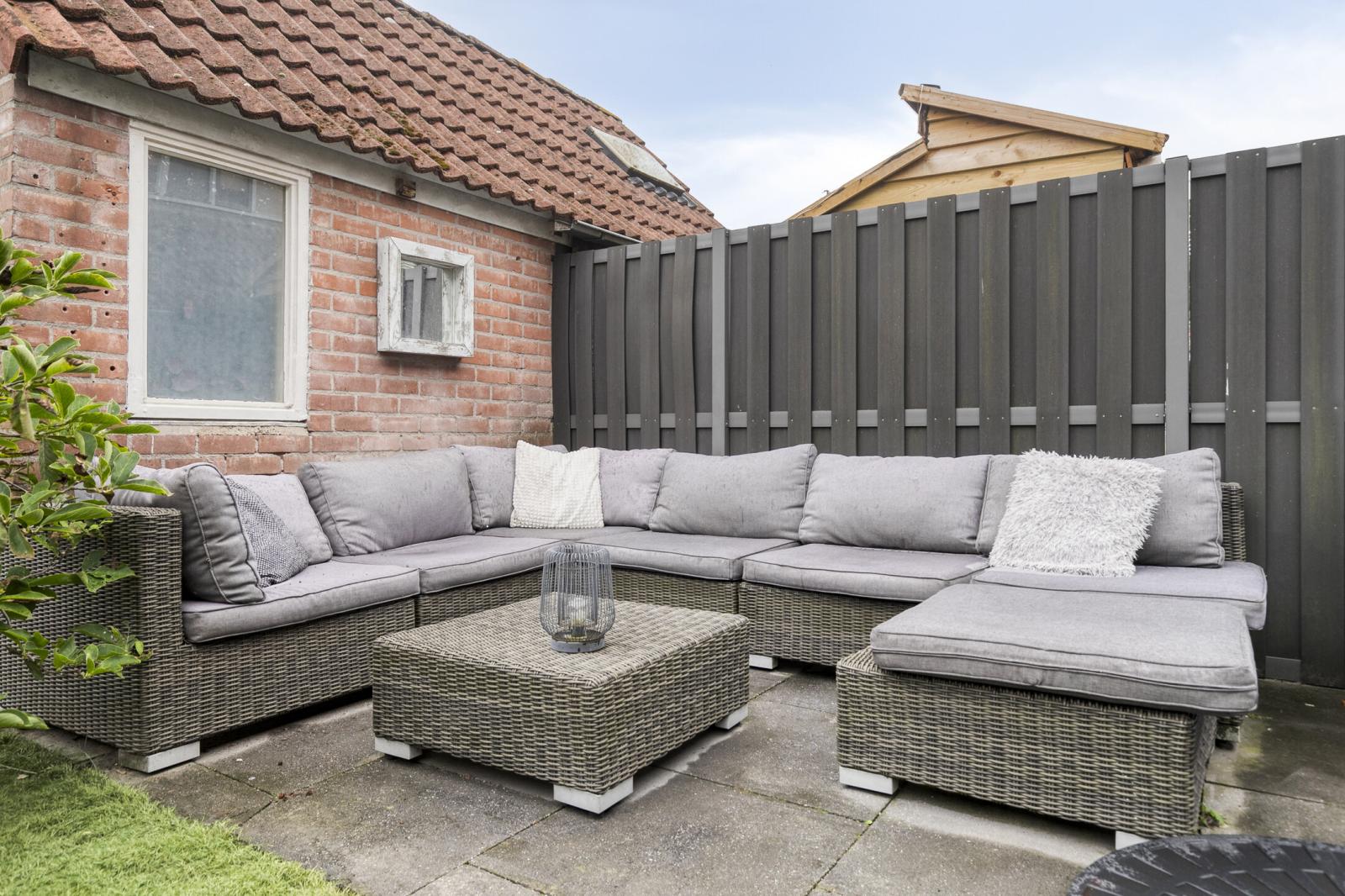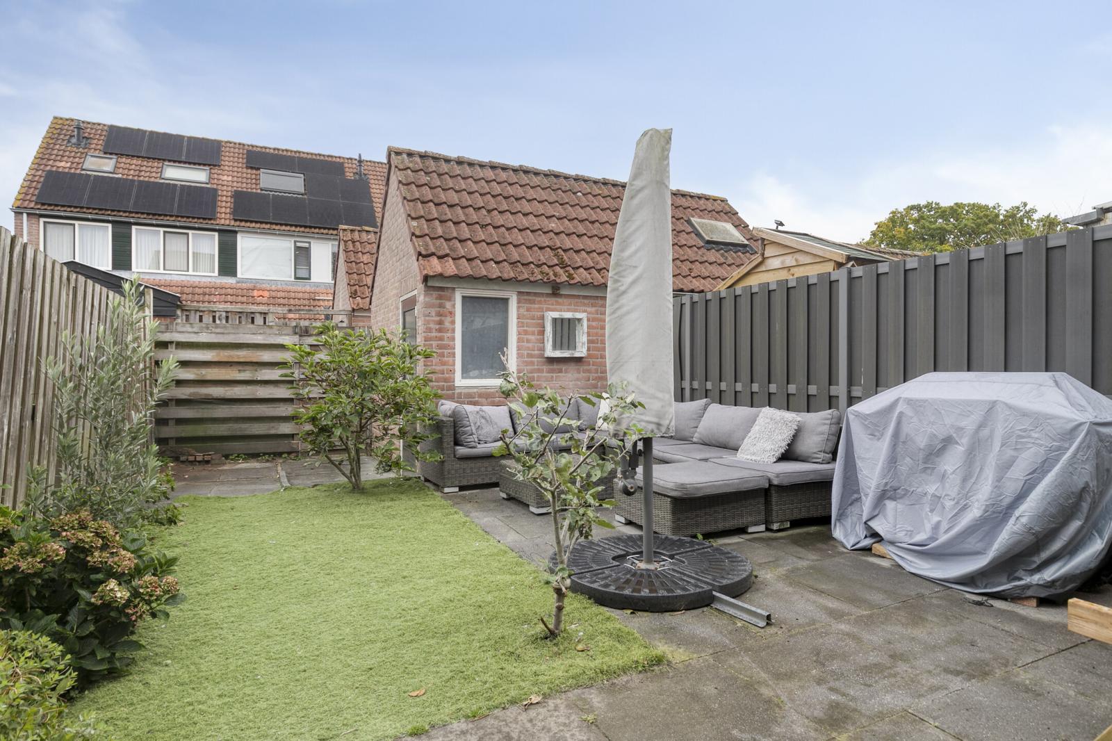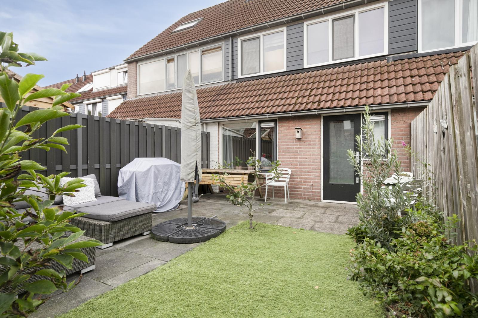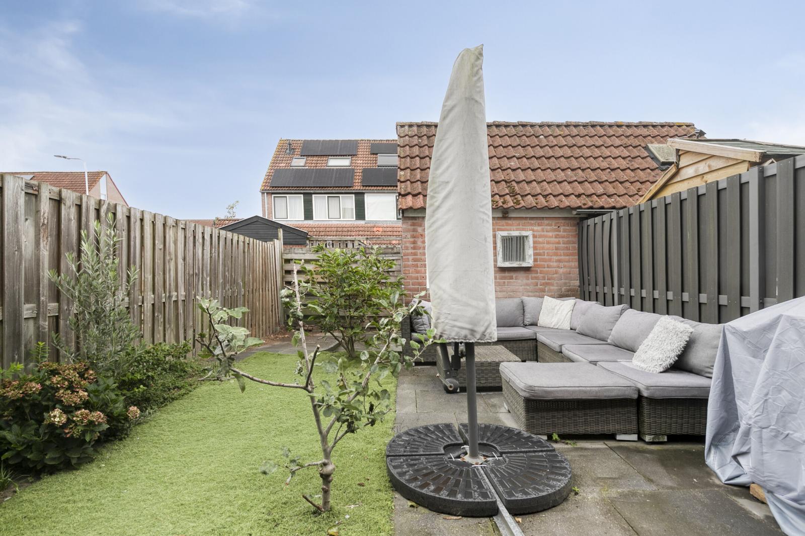 Via de keuken stap je zo de achtertuin in, die is gelegen op het noordoosten. De tuin is onderhoudsvriendelijk ingericht met een combinatie van tegels en een stuk kunstgras, en heeft bovendien een achterom. Een heerlijke plek om in de ochtendzon van je koffie te genieten!