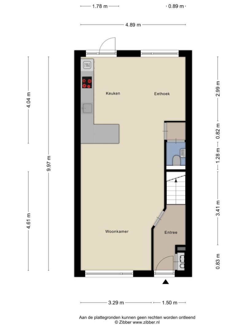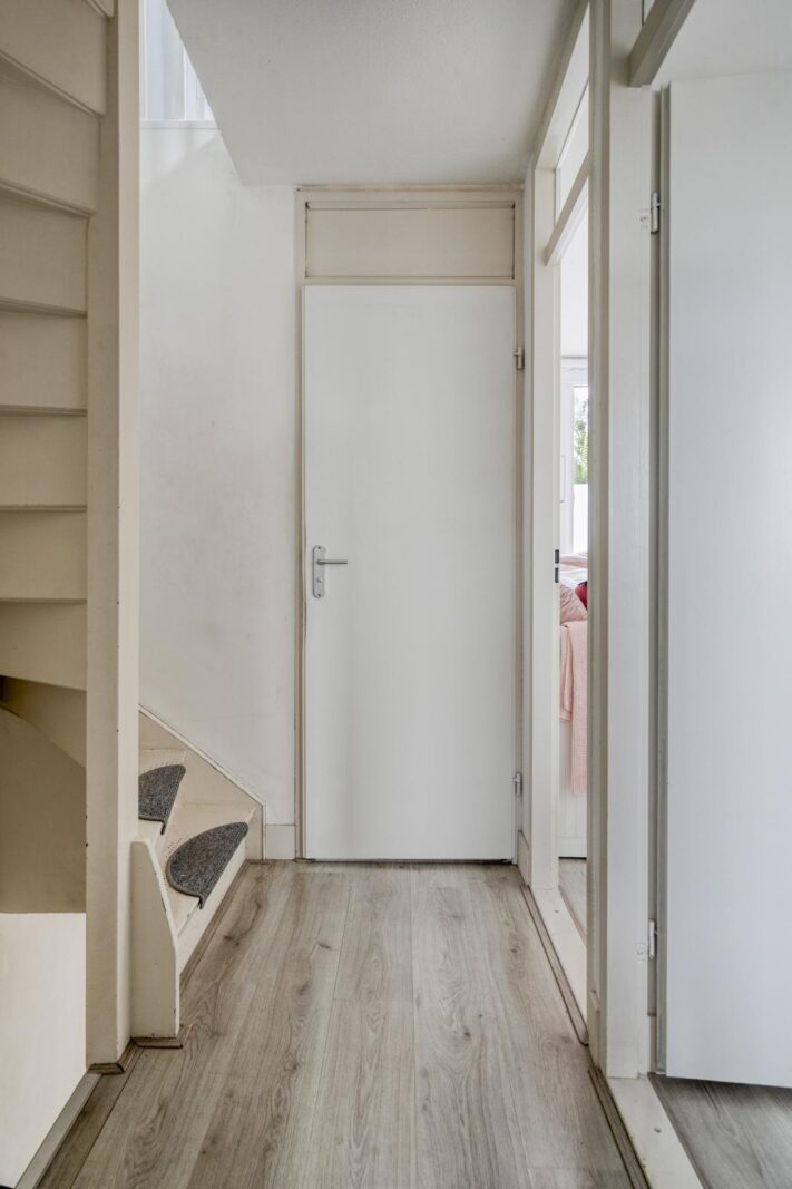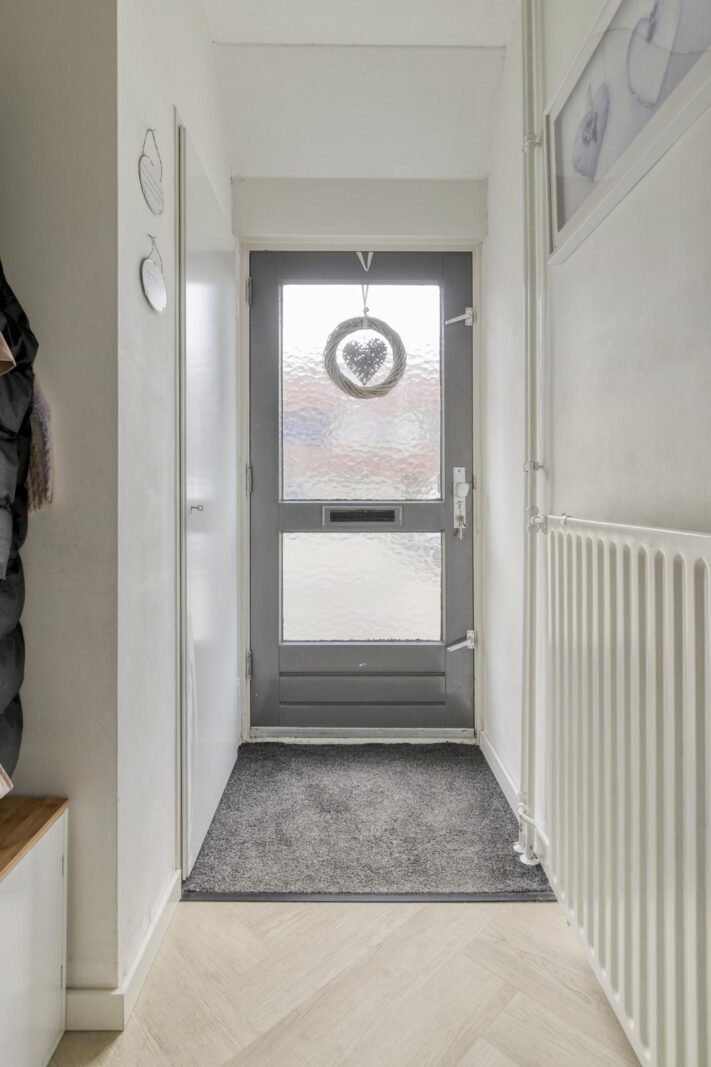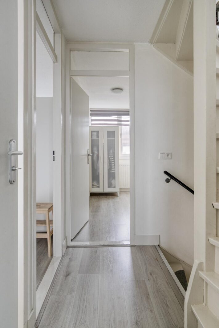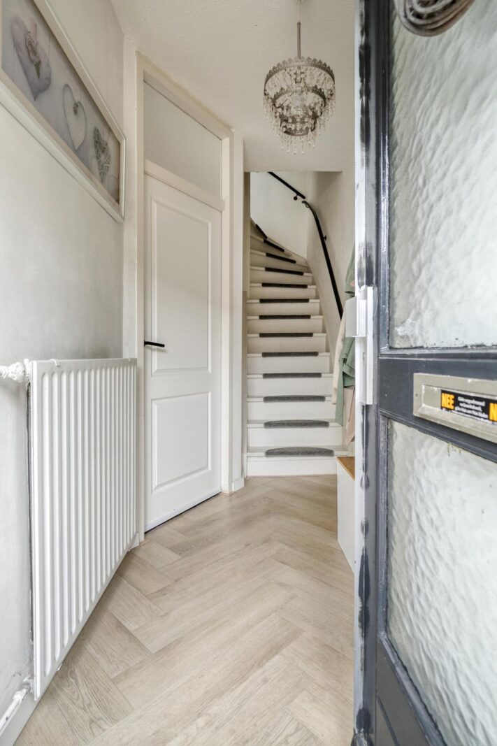 Je betreedt de woning via een ruime entree met toegang tot de woonkamer en de trapopgang naar de eerste verdieping.