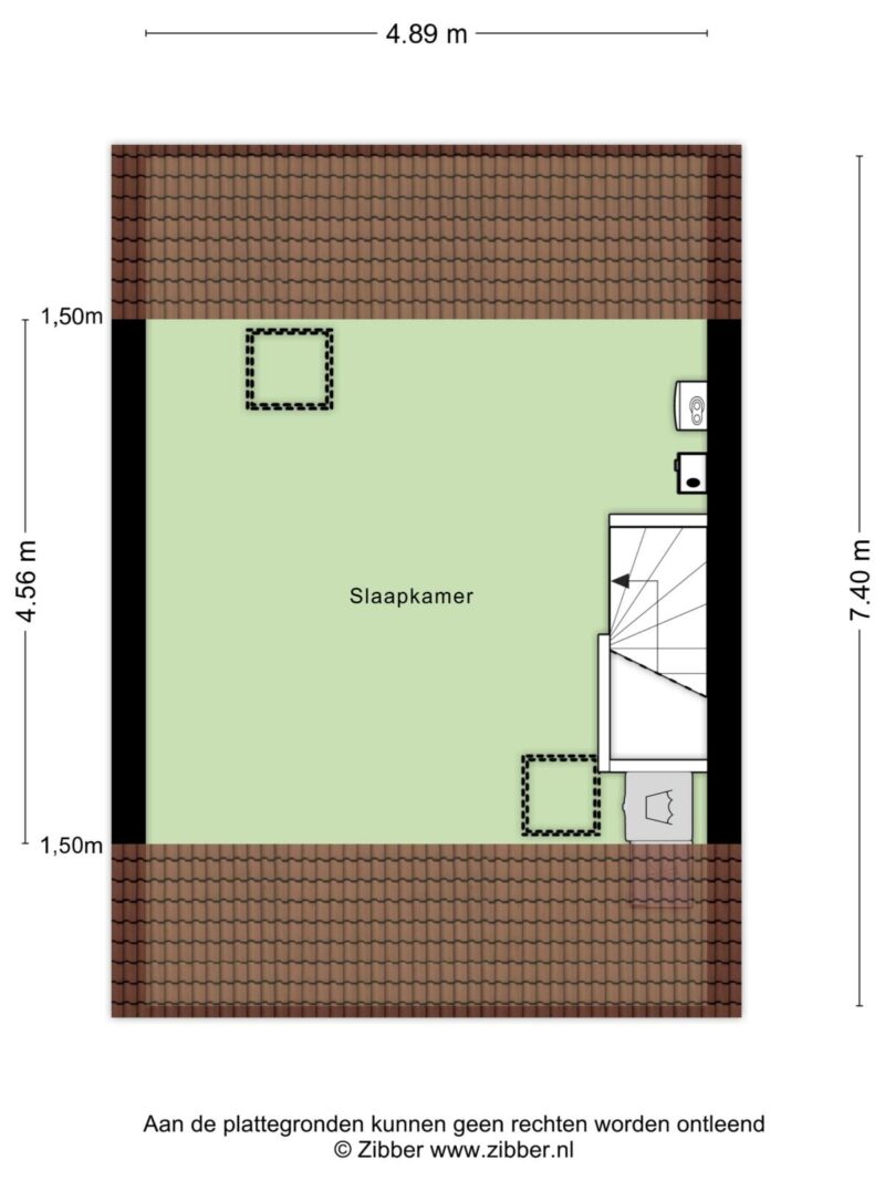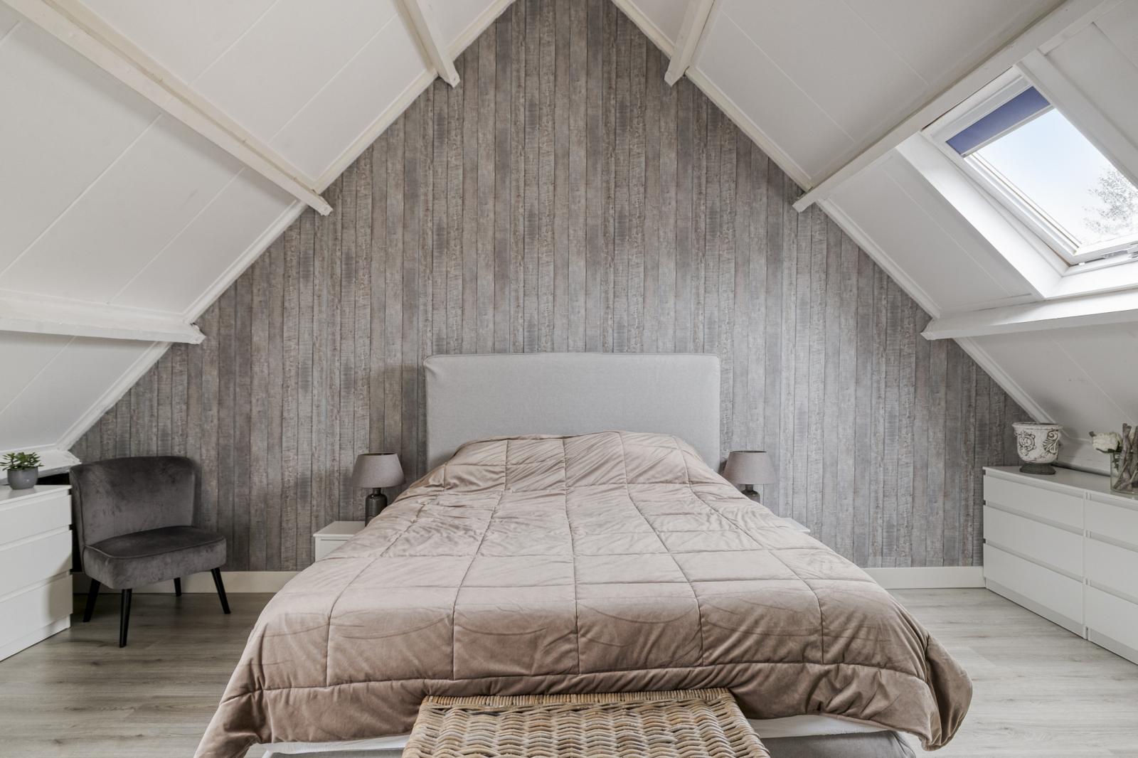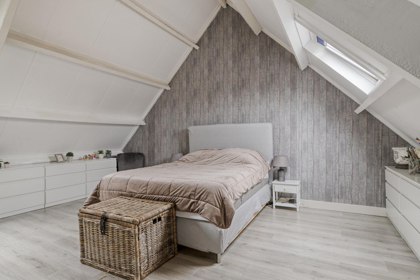 Via de vaste trap bereik je de zolderverdieping, die momenteel is ingericht als ouderslaapkamer. Dankzij de dakramen valt er natuurlijk licht binnen en kan er goed geventileerd worden.