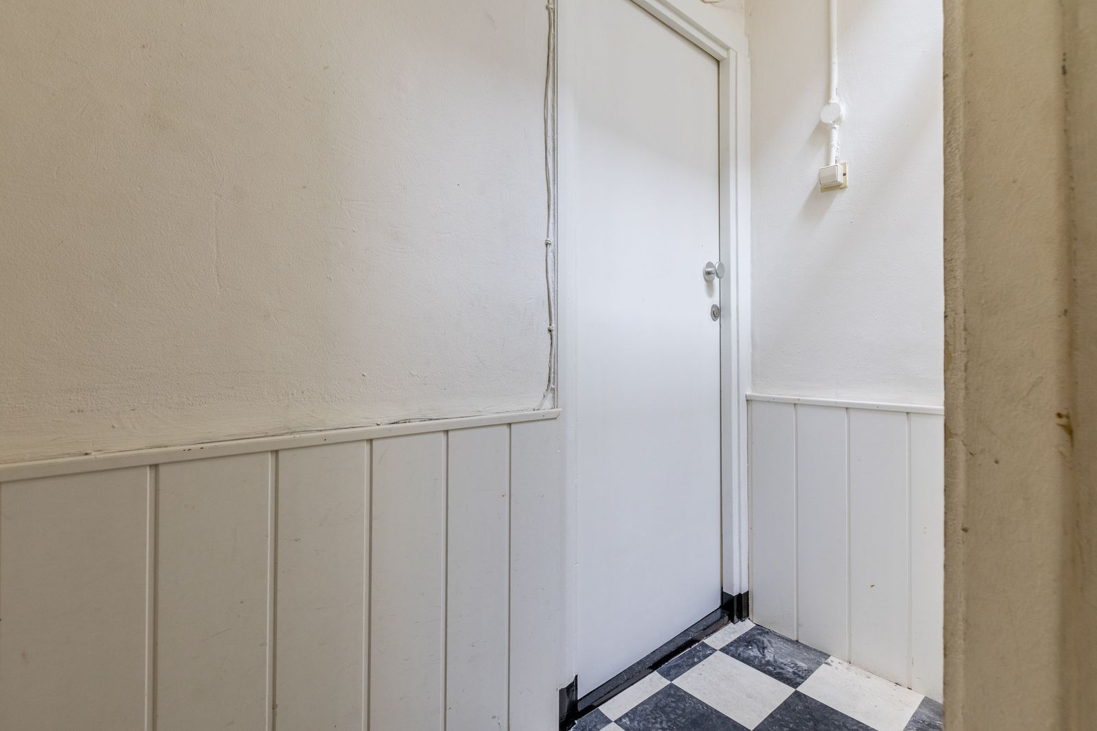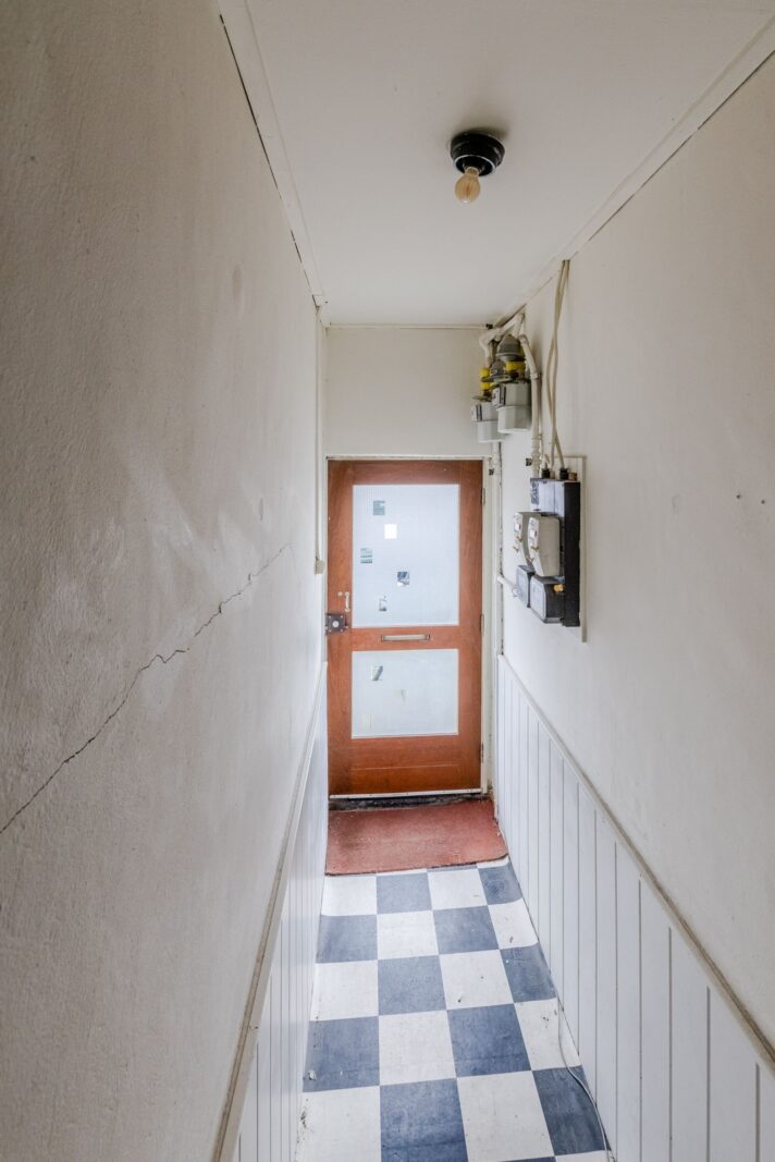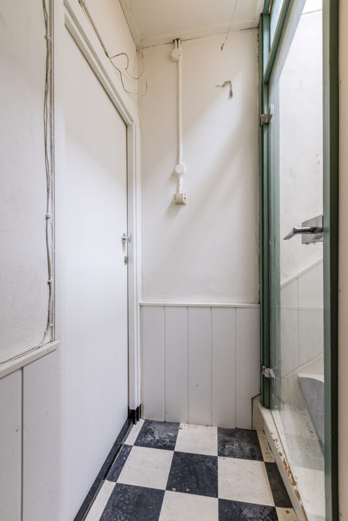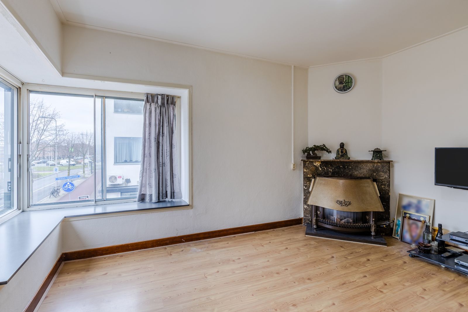 Via de gezamenlijke entree en trapopgang bereik je het appartement op de eerste verdieping. Bij binnenkomst kom je in de hal die toegang geeft tot alle vertrekken. De lichte woonkamer valt direct op door de grote raampartij, waardoor er veel daglicht binnenvalt. De karakteristieke moederhaard geeft de ruimte extra sfeer.