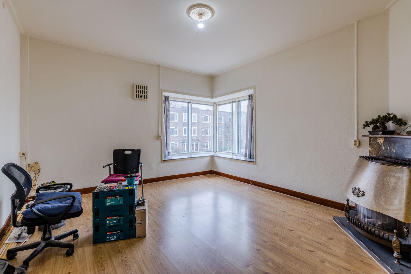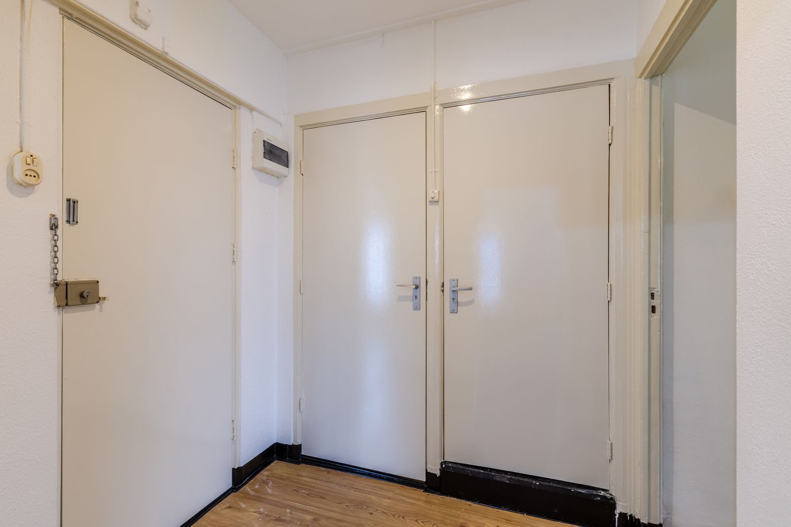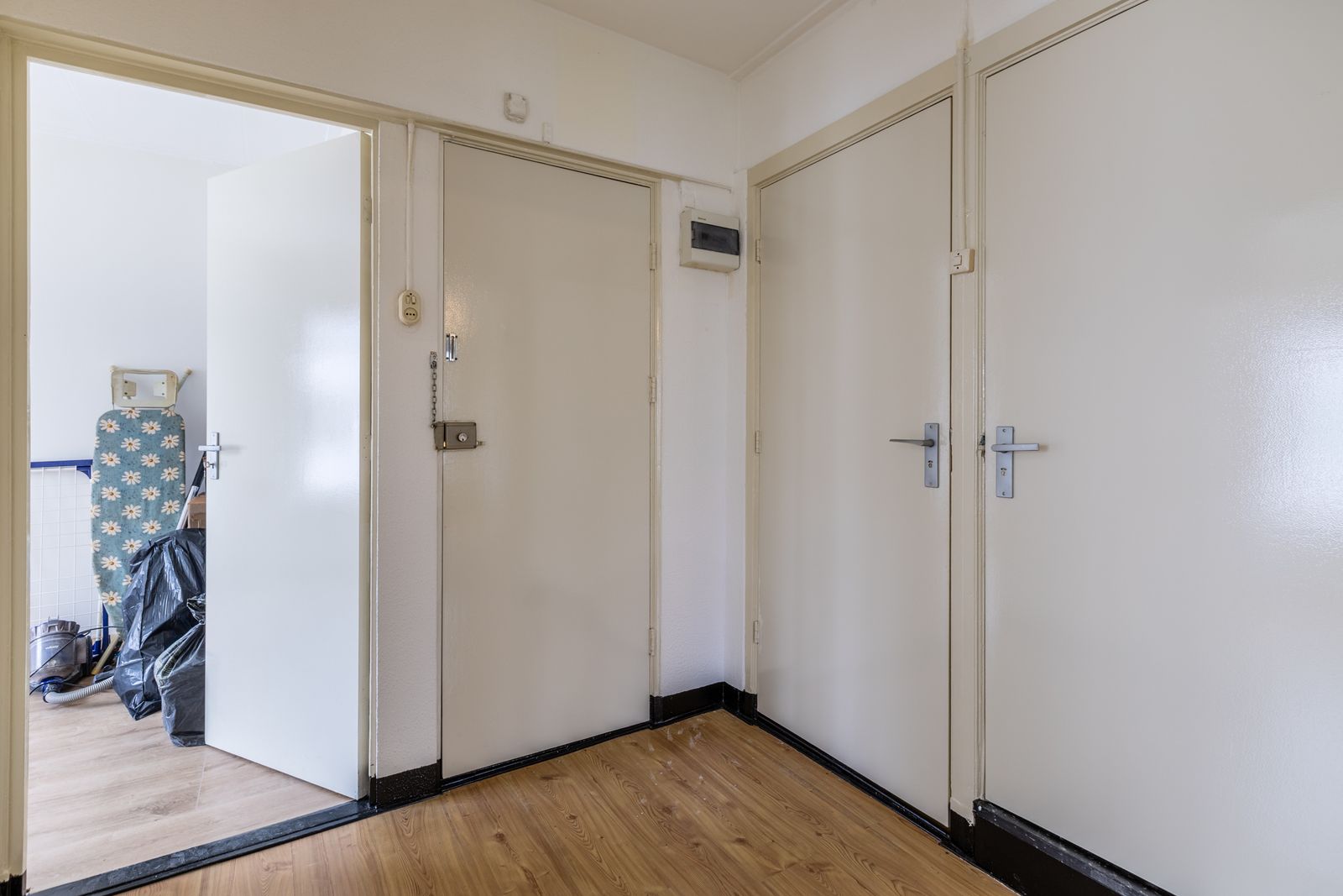 Via de gezamenlijke entree en trapopgang bereik je het appartement op de eerste verdieping. Bij binnenkomst kom je in de hal die toegang geeft tot alle vertrekken. De lichte woonkamer valt direct op door de grote raampartij, waardoor er veel daglicht binnenvalt. De karakteristieke moederhaard geeft de ruimte extra sfeer.