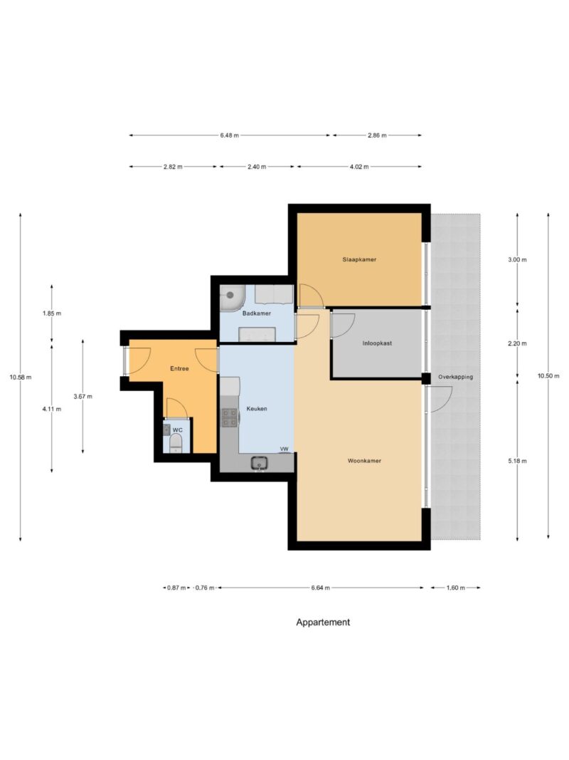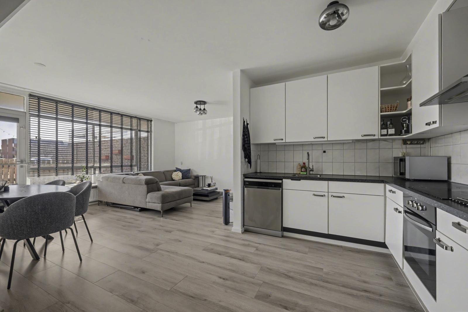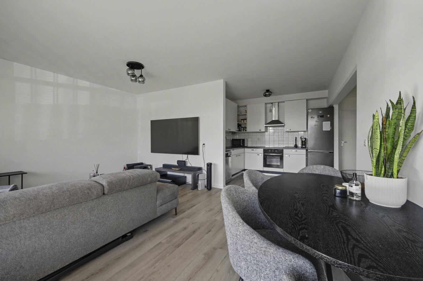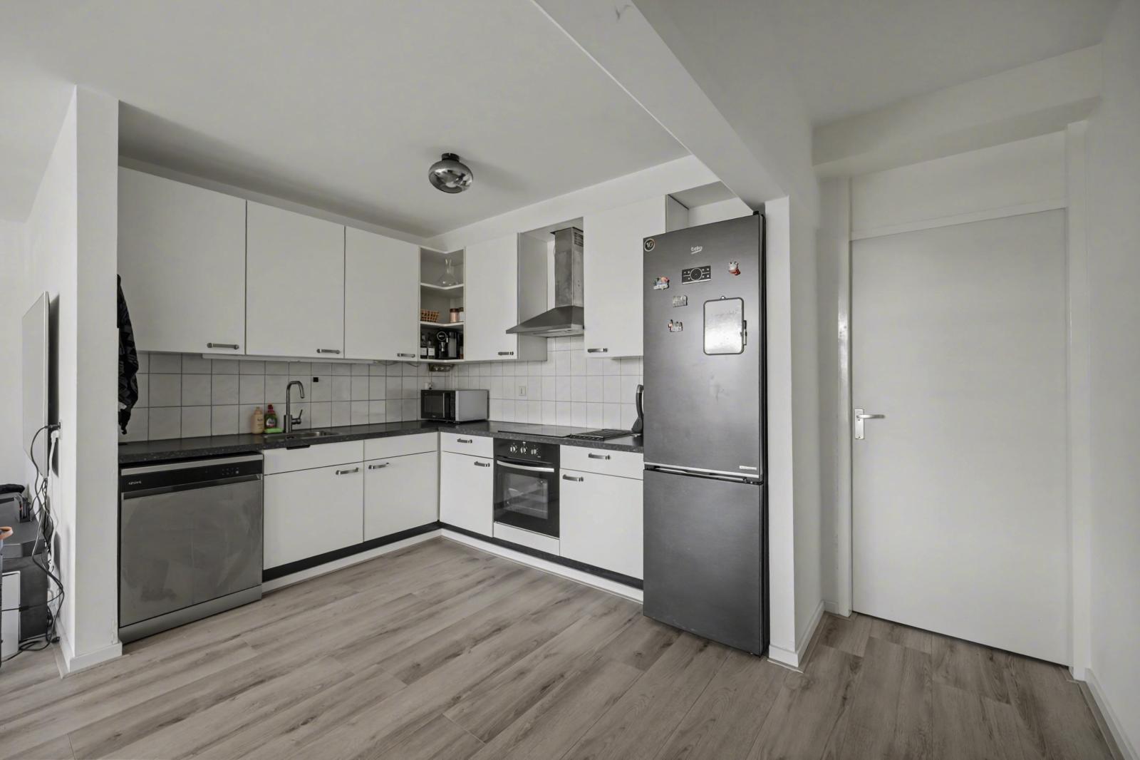 De moderne keuken is praktisch ingericht en voorzien van alle gemakken, terwijl de stijlvolle badkamer zorgt voor extra wooncomfort. De indeling met twee slaapkamers maakt het appartement geschikt voor starters, stellen of kleine huishoudens.