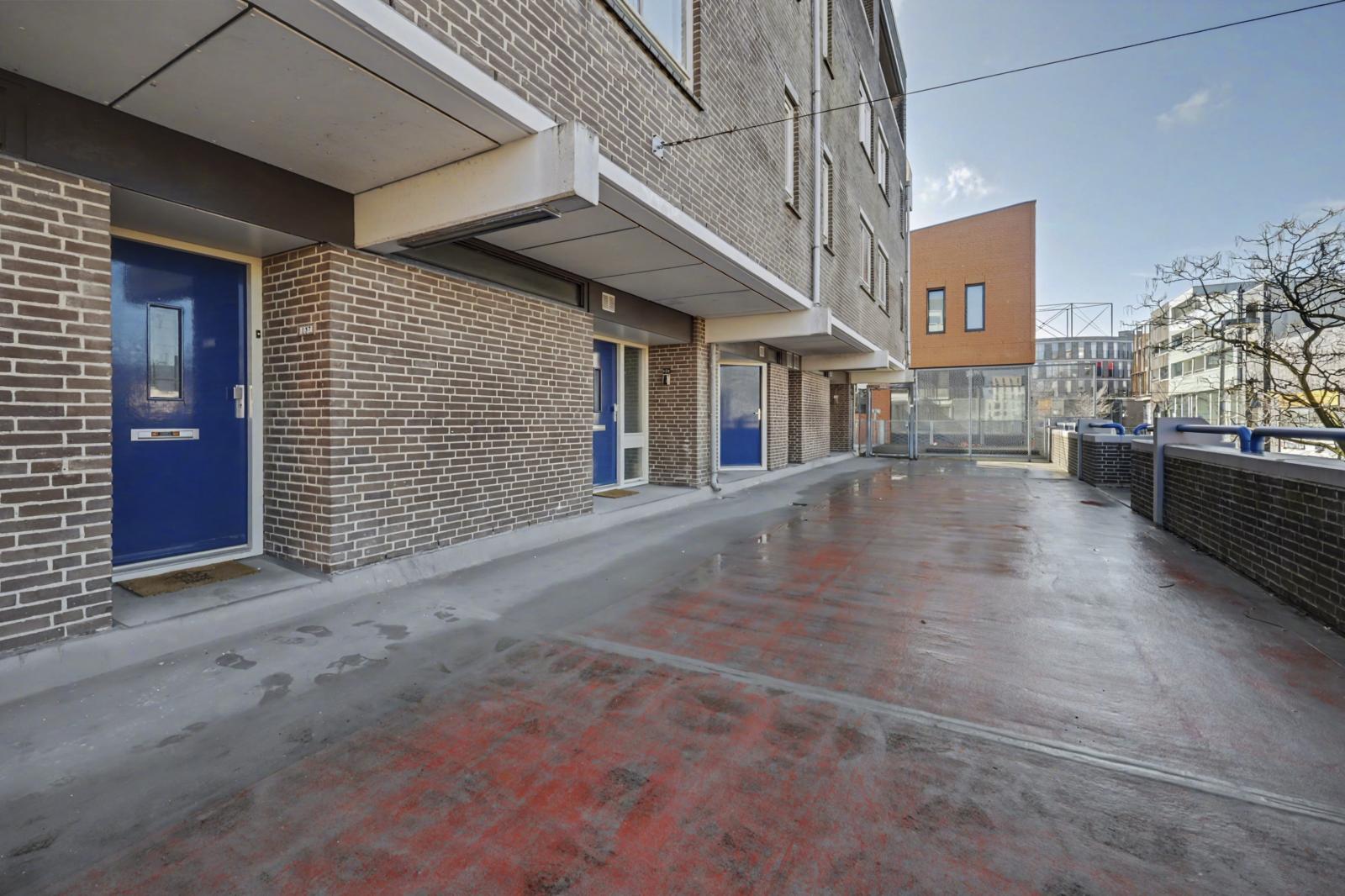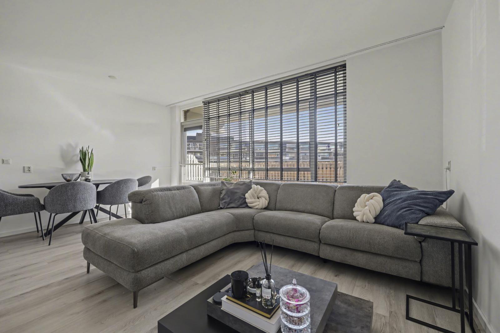 Het appartement beschikt over een lichte woonkamer met directe toegang tot een ruim op het zuiden gelegen terras. Dankzij de gunstige ligging kun je hier een groot deel van de dag van de zon genieten. Het terras biedt bovendien directe toegang tot het parkeerdek. Hier is een parkeerplaats te huur voor slechts €31 per maand.
