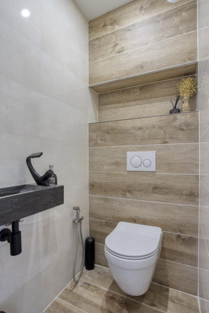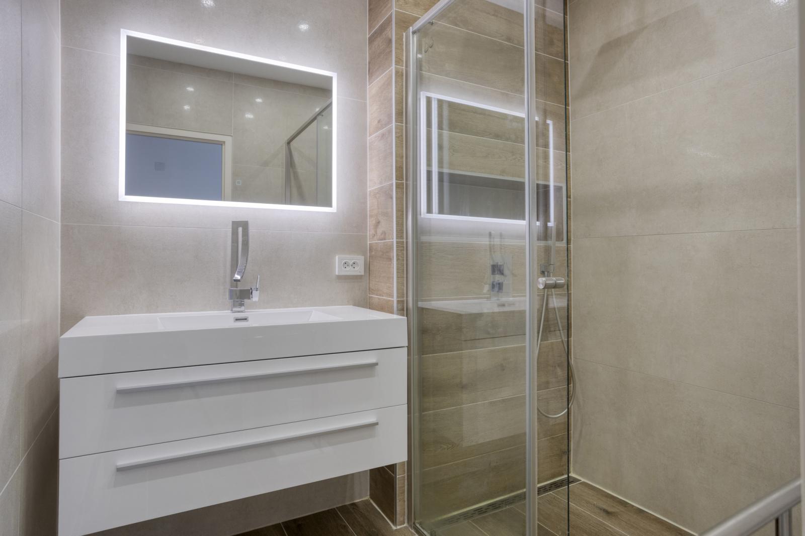 De badkamer is in november 2020 volledig vernieuwd en uitgevoerd in een moderne, tijdloze stijl met een inloopdouche en strak afgewerkte materialen.