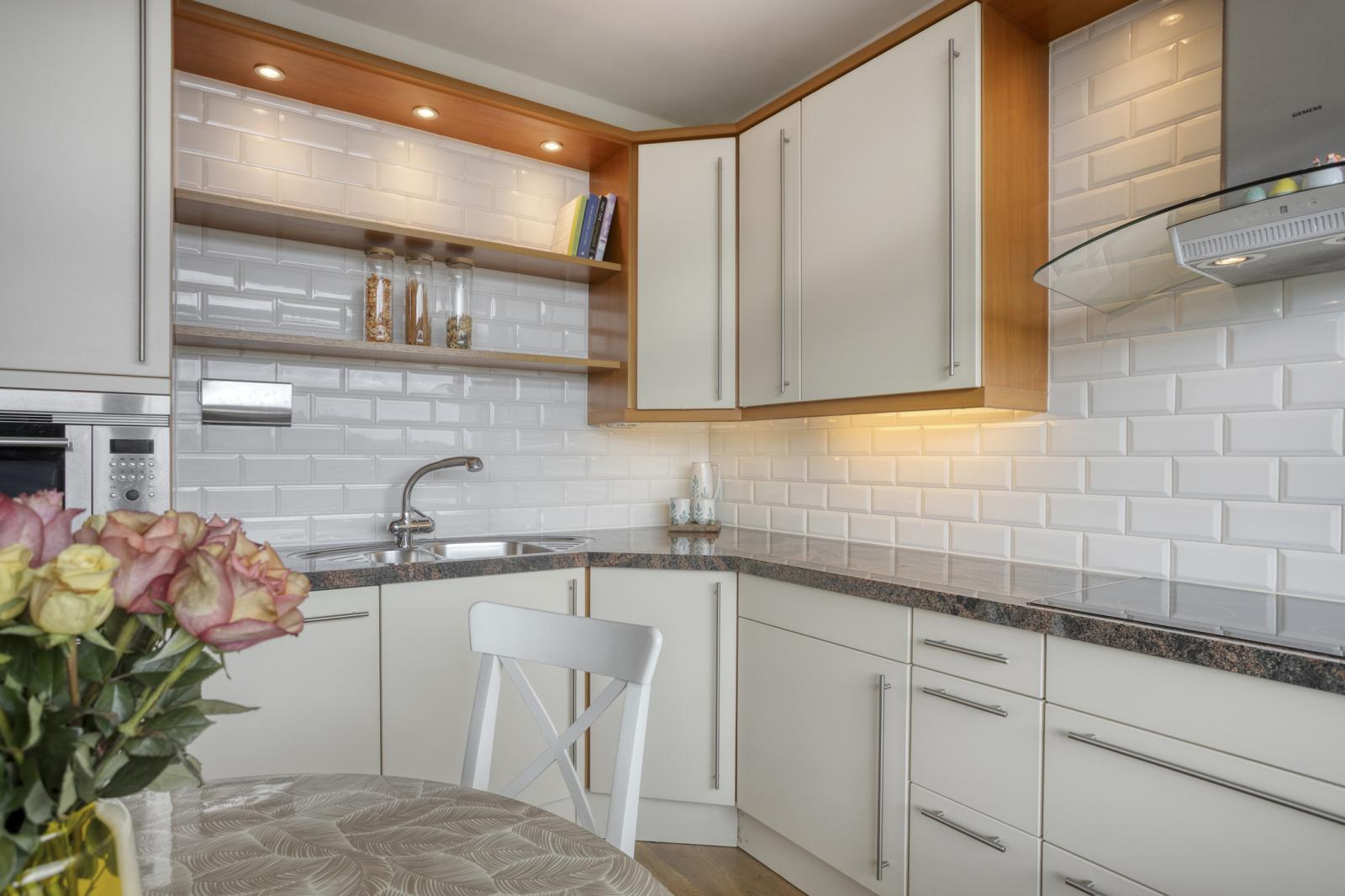 De keuken is functioneel ingericht en voorzien van voldoende werk- en bergruimte. De inbouwapparatuur is grotendeels vernieuwd in 2024/2025. Vanuit de keuken is er toegang tot het tweede balkon, waar je in de ochtendzon kunt zitten.
