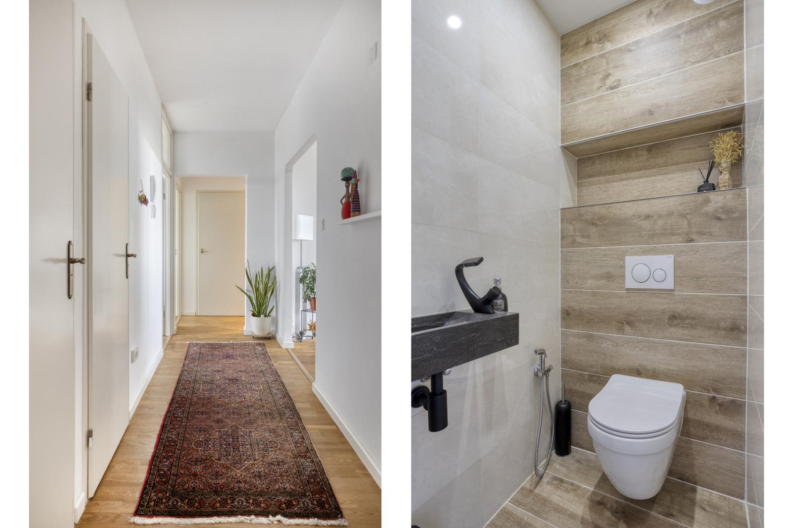 De twee balkons vormen een duidelijke meerwaarde: één aan de woonkamerzijde en één bij de keuken. Hierdoor heb je altijd een fijne plek buiten met vrij uitzicht over de groene omgeving. Beide balkons liggen over de volledige breedte van het appartement en zijn voorzien van zonneschermen.