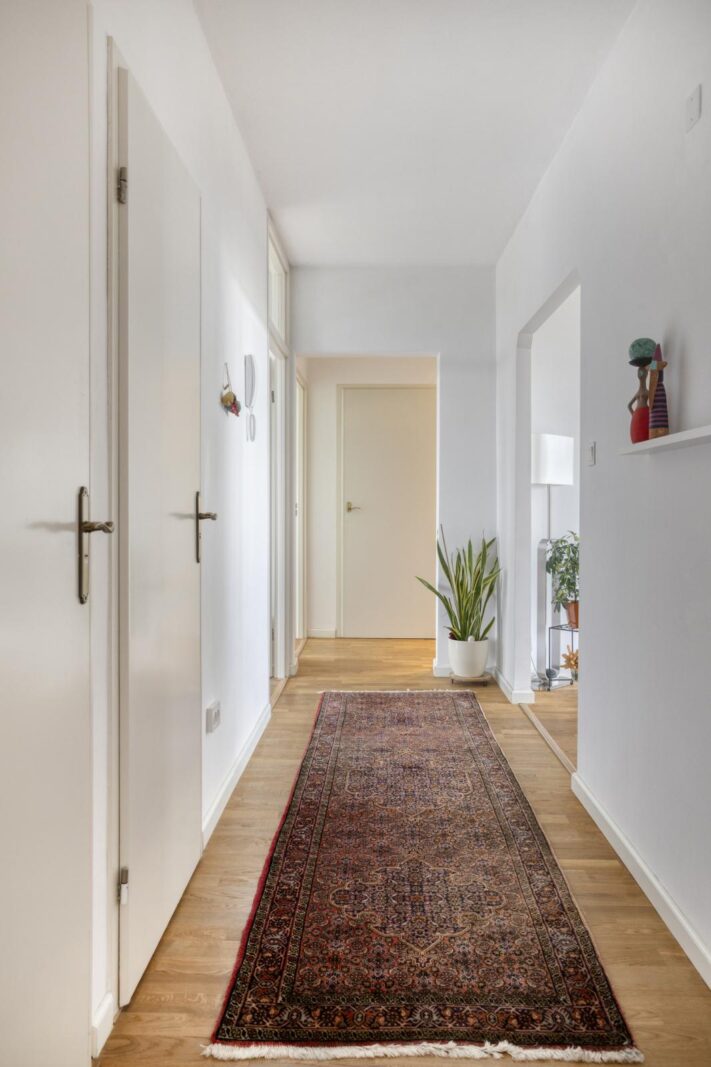 Inside, the spacious layout immediately stands out. The living room is bright and generously sized, with large windows and direct access to the balcony. The adjacent dining room offers additional living space and flexibility, and can easily be closed off to serve as a home office or an extra bedroom.