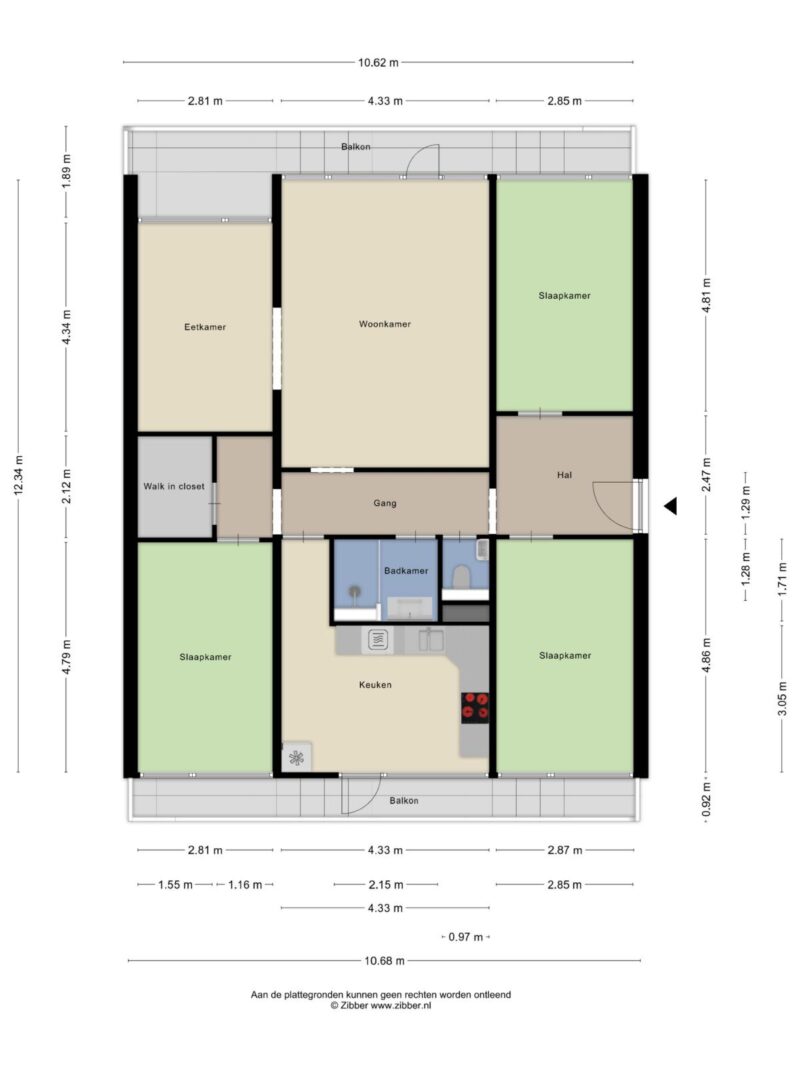 Het appartement beschikt over drie slaapkamers van goed formaat en een praktische inloopkast, wat zorgt voor extra comfort en opbergruimte.