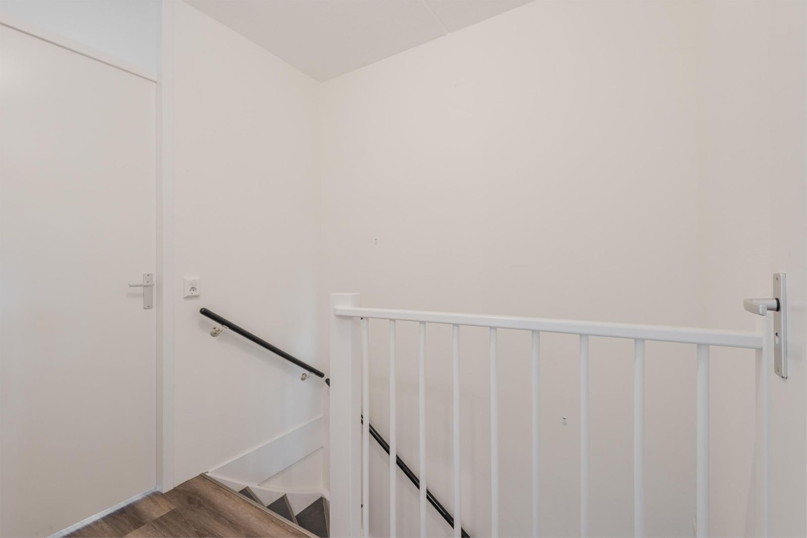 Overloop met toegang tot twee slaapkamers (3e mogelijk) en de luxe badkamer (2021). De badkamer is uitgevoerd met fraai tegelwerk tot aan het plafond, een inloopdouche met handdouche, een vrij hangend 2e toilet en een wastafelmeubel. De gehele verdieping is voorzien van een PVC vloer. De slaapkamer aan de achterzijde is een riante “master bedroom” in een L-vorm.
