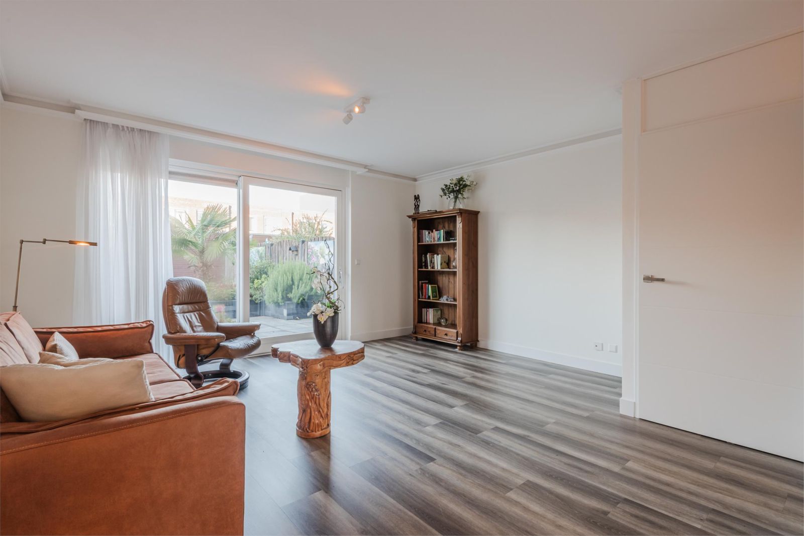 De fraai aangelegde voortuin brengt je bij de entree, hal met de meterkast, vernieuwd (2023) toilet en vernieuwde trapopgang naar de verdieping. De tuingerichte woon- en eetkamer is licht en is voorzien van een handige trapkast. De straatgerichte moderne keuken is vernieuwd in 2023. De keuken is uitgevoerd in hoekopstelling met diverse inbouwapparatuur, waaronder: inductiekookplaat, afzuigkap, combi oven, stoomoven, vriezer, koelkast en een vaatwasser. Vanuit de keuken heb je een vrij uitzicht. De gehele begane grond is voorzien van een moderne PVC vloer en de wanden zijn glad gestuukt. De woonkamer is tuingericht en via de schuifpui met elektrisch zonnescherm heb je toegang tot de keurig bestraatte ruim 11 meter diepe zonnige achtertuin, gelegen op het zuid/westen.