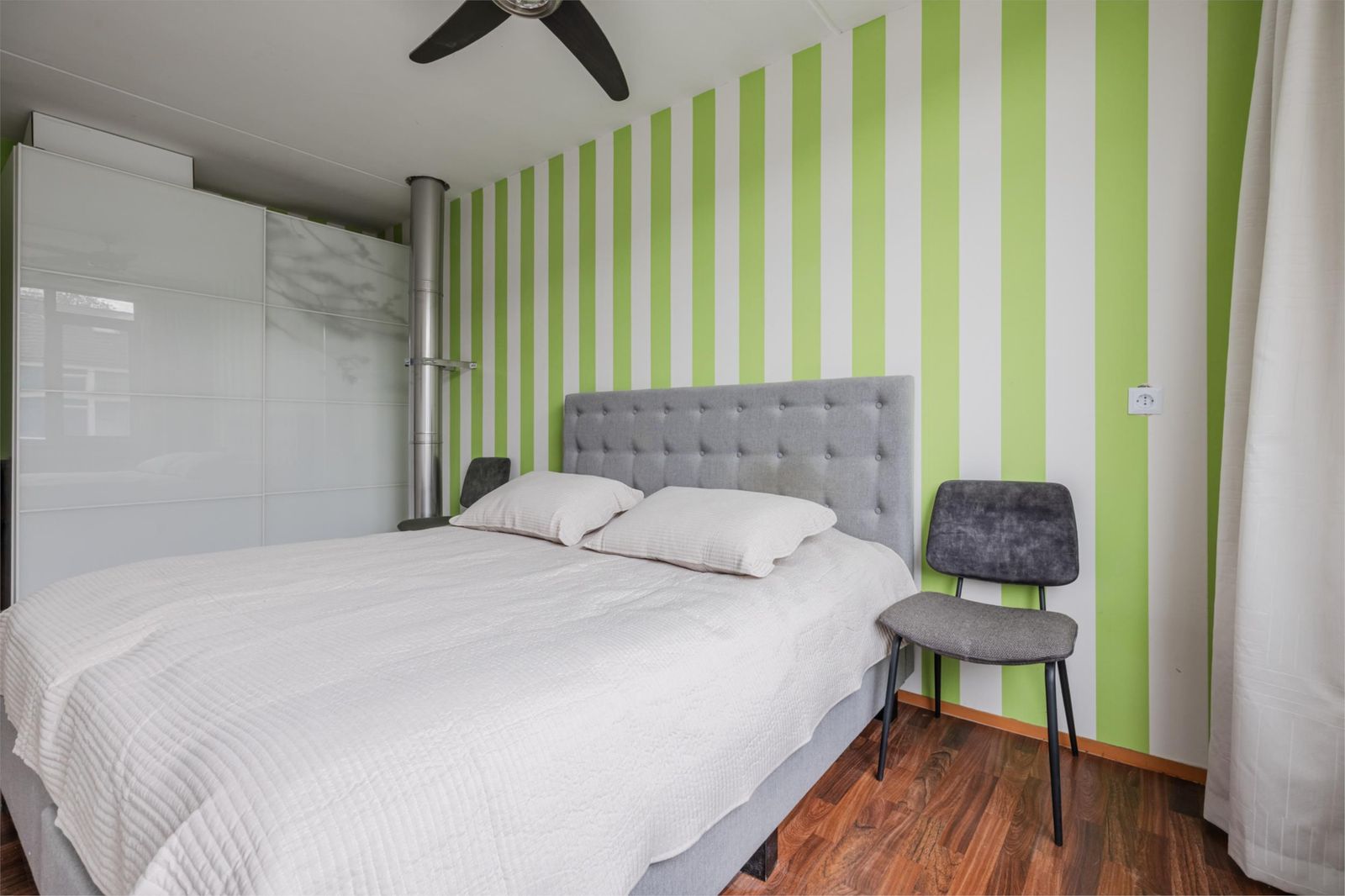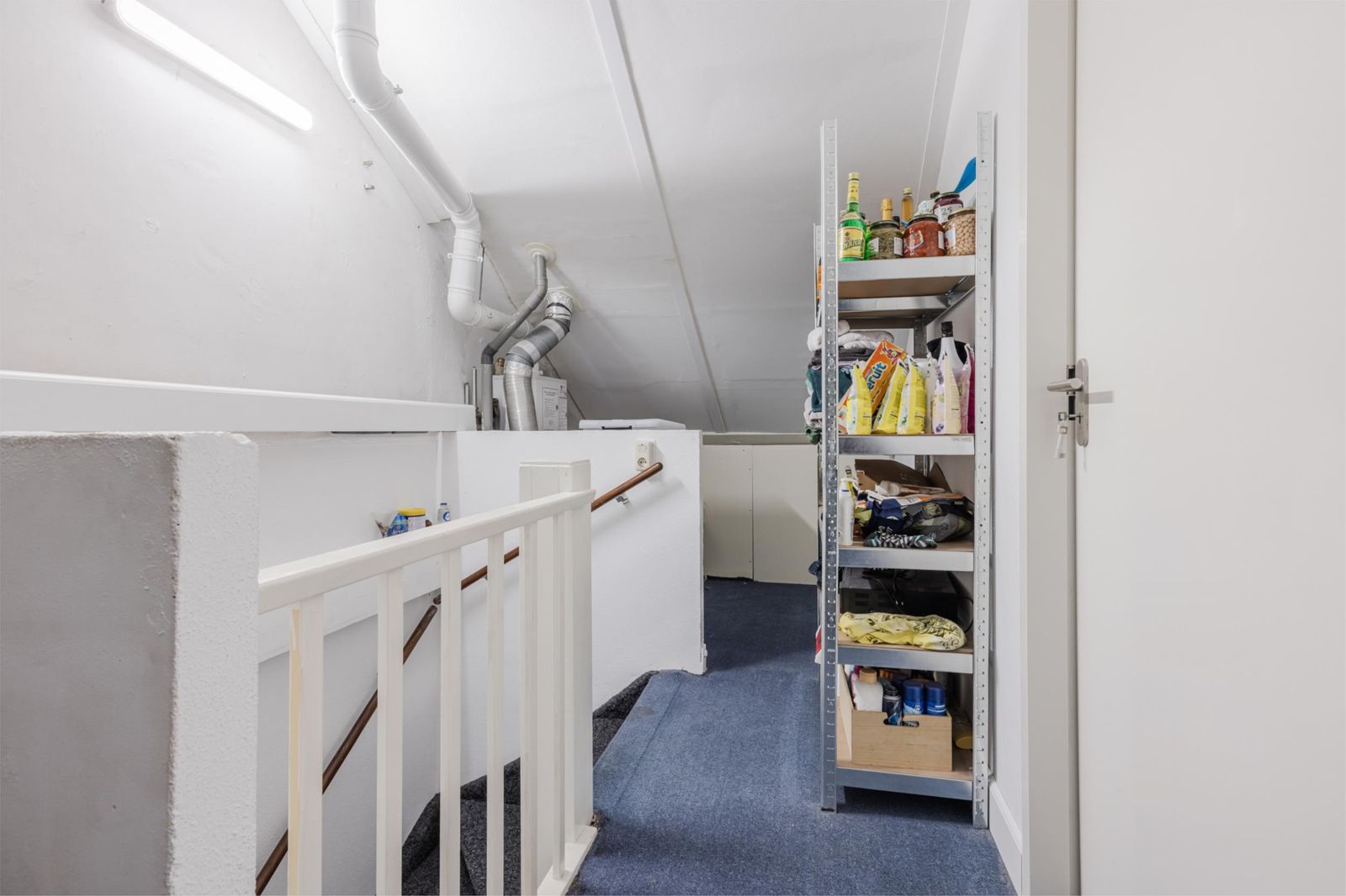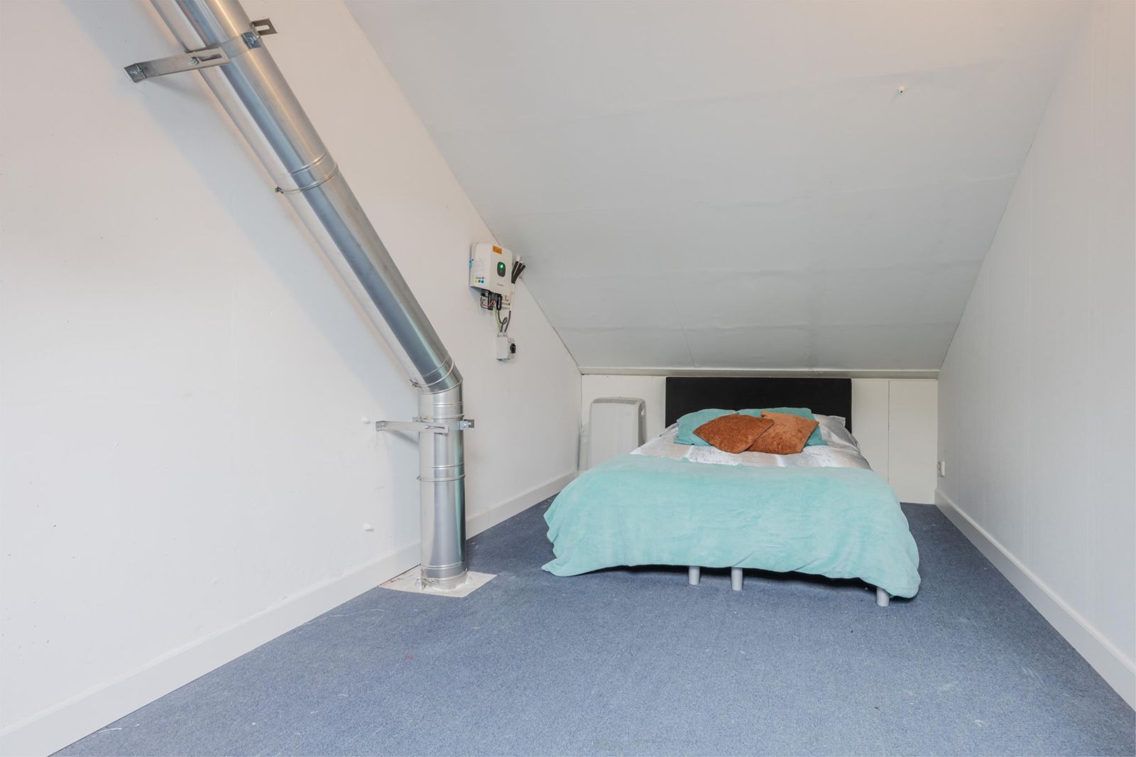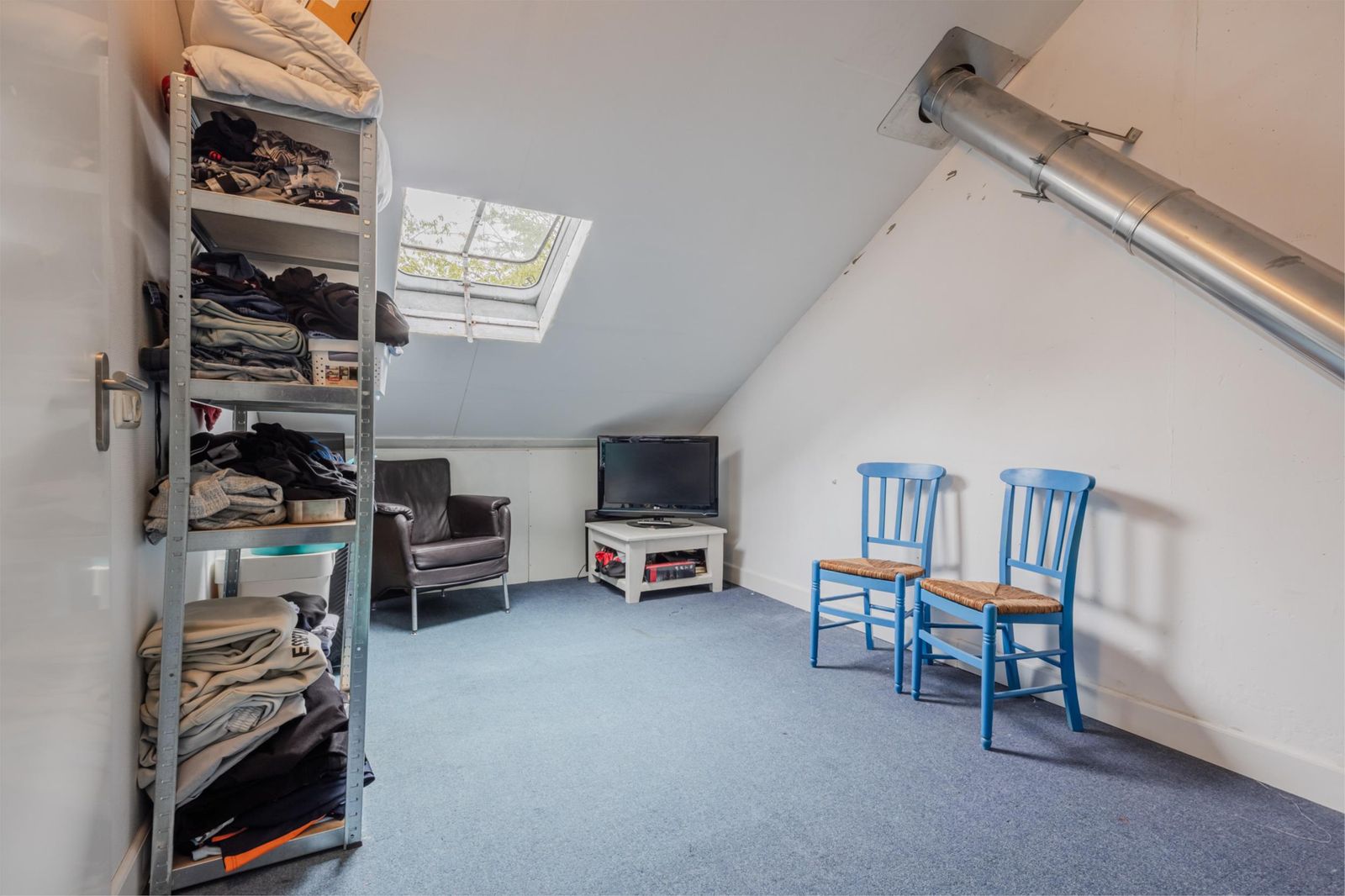 Overloop met toegang tot slaapkamer voorzien van een dakraam en met vloerbedekking en knieschotten. De voorzolder is voorzien van een wasmachineaansluiting, opstelplaats cv-ketel en mechanische ventilatie unit.