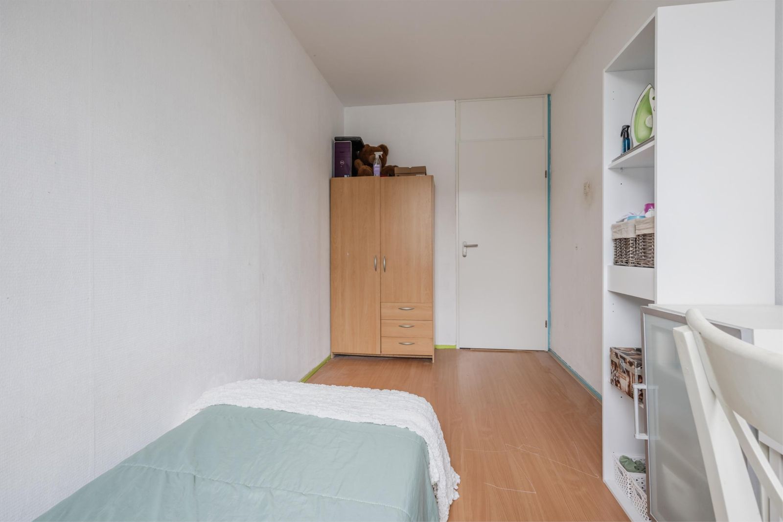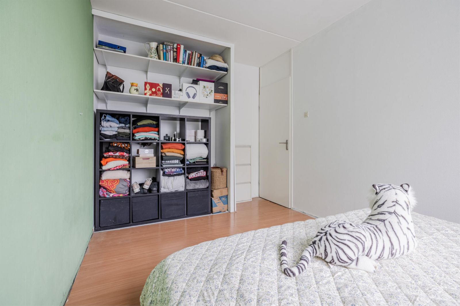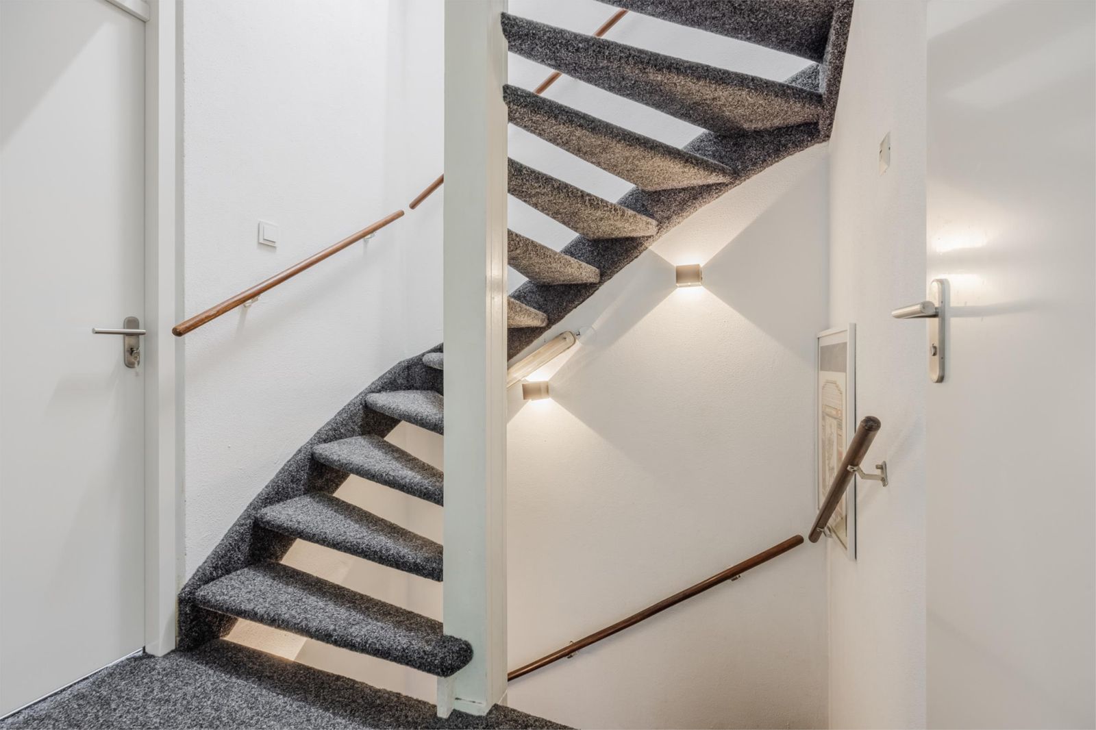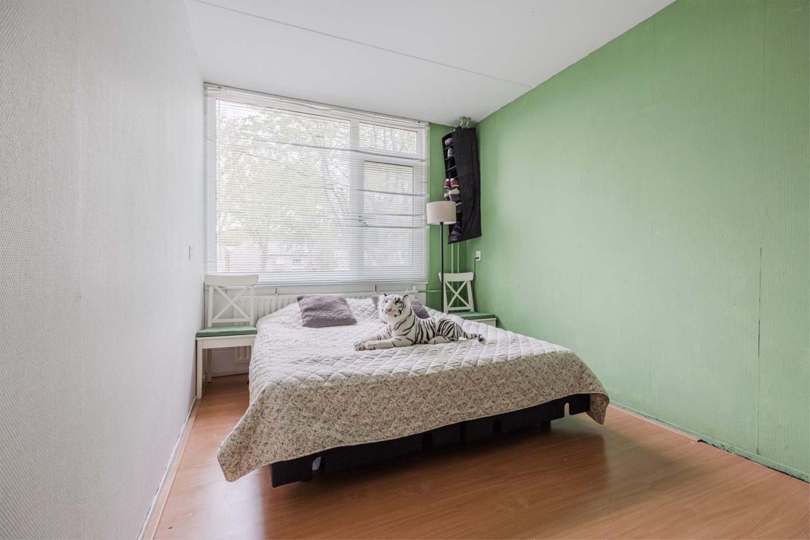 Overloop met toegang tot slaapkamer voorzien van een dakraam en met vloerbedekking en knieschotten. De voorzolder is voorzien van een wasmachineaansluiting, opstelplaats cv-ketel en mechanische ventilatie unit.