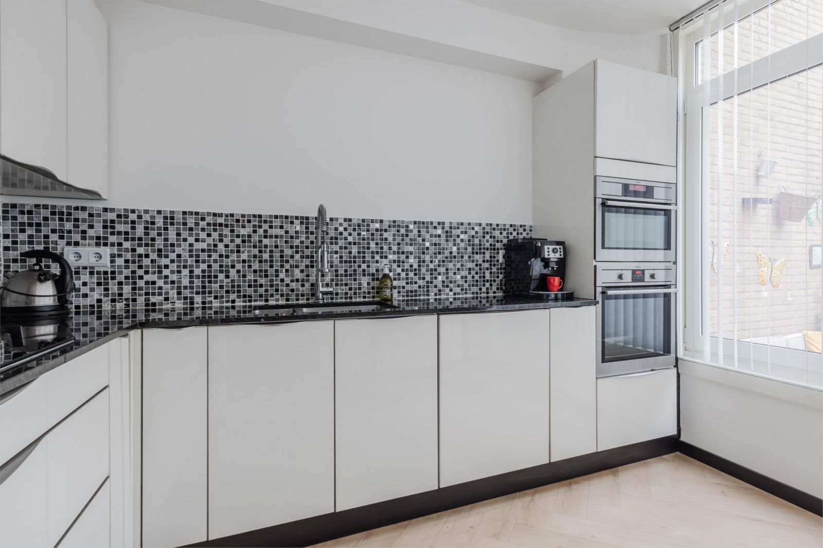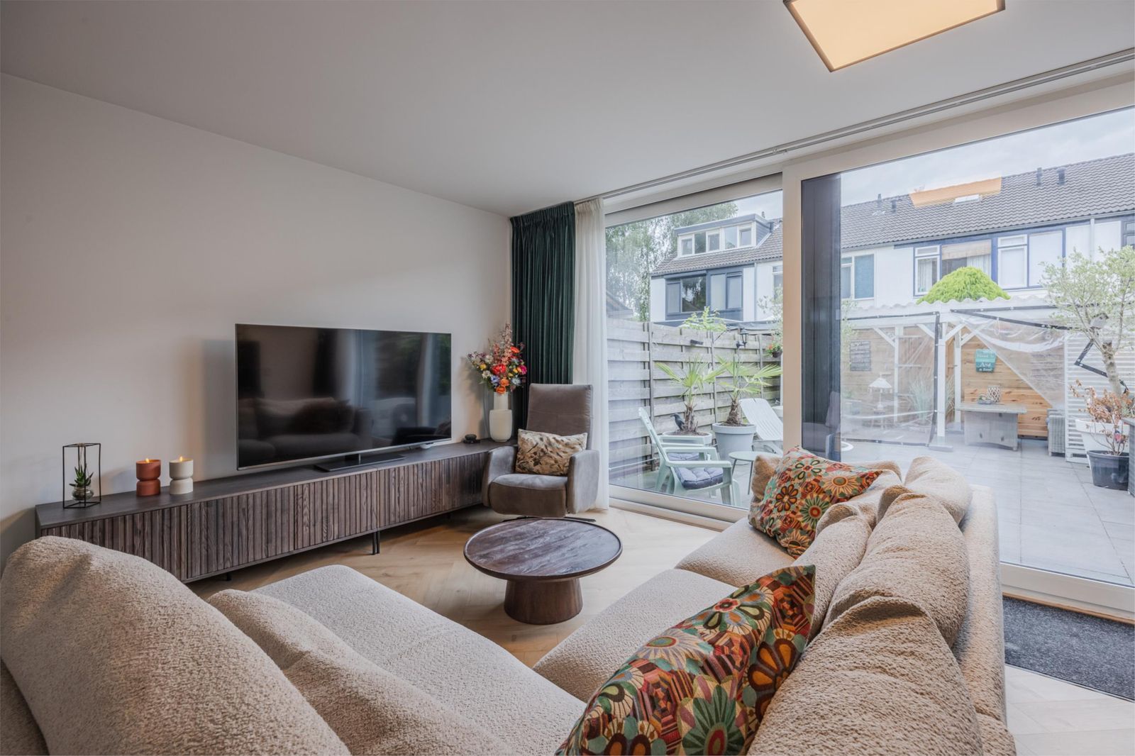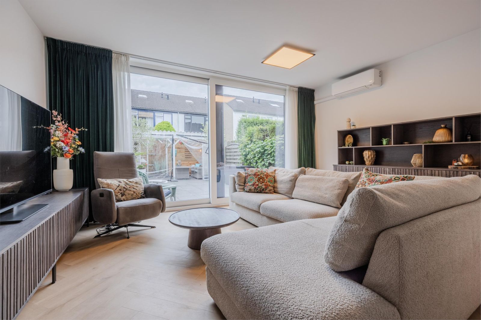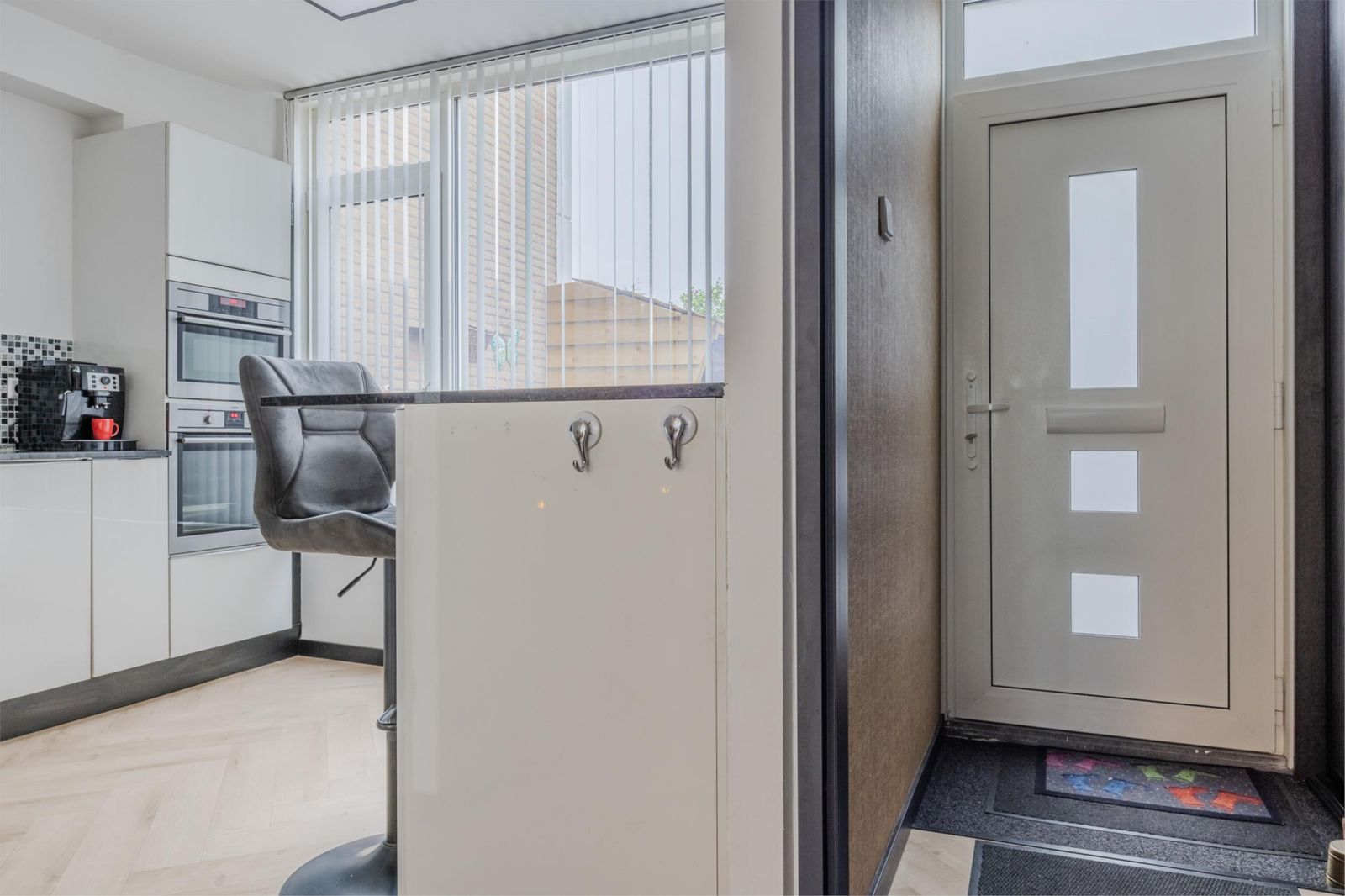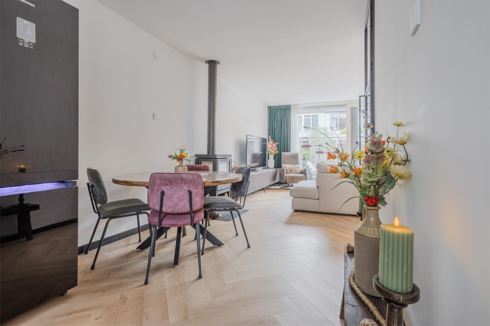 Via de voortuin kom je binnen in de entree waarbij de kapstok netjes is weggewerkt achter een mooie kast met soft-close deuren. Vanuit hier komt u in de tuingerichte woonkamer. De half open keuken is voorzien van boven- en onderkasten, natuursteen aanrechtblad en diverse inbouwapparatuur, zoals gaskookplaat, afzuigschouw, combi- magnetron, oven, vaatwasser en een close in boiler. Het grote raamkozijn zorgt voor veel lichtinval. De grote schuifpui geeft toegang tot de achtertuin. In de hal bevind zich de toilet met hangend closet en fonteintje.