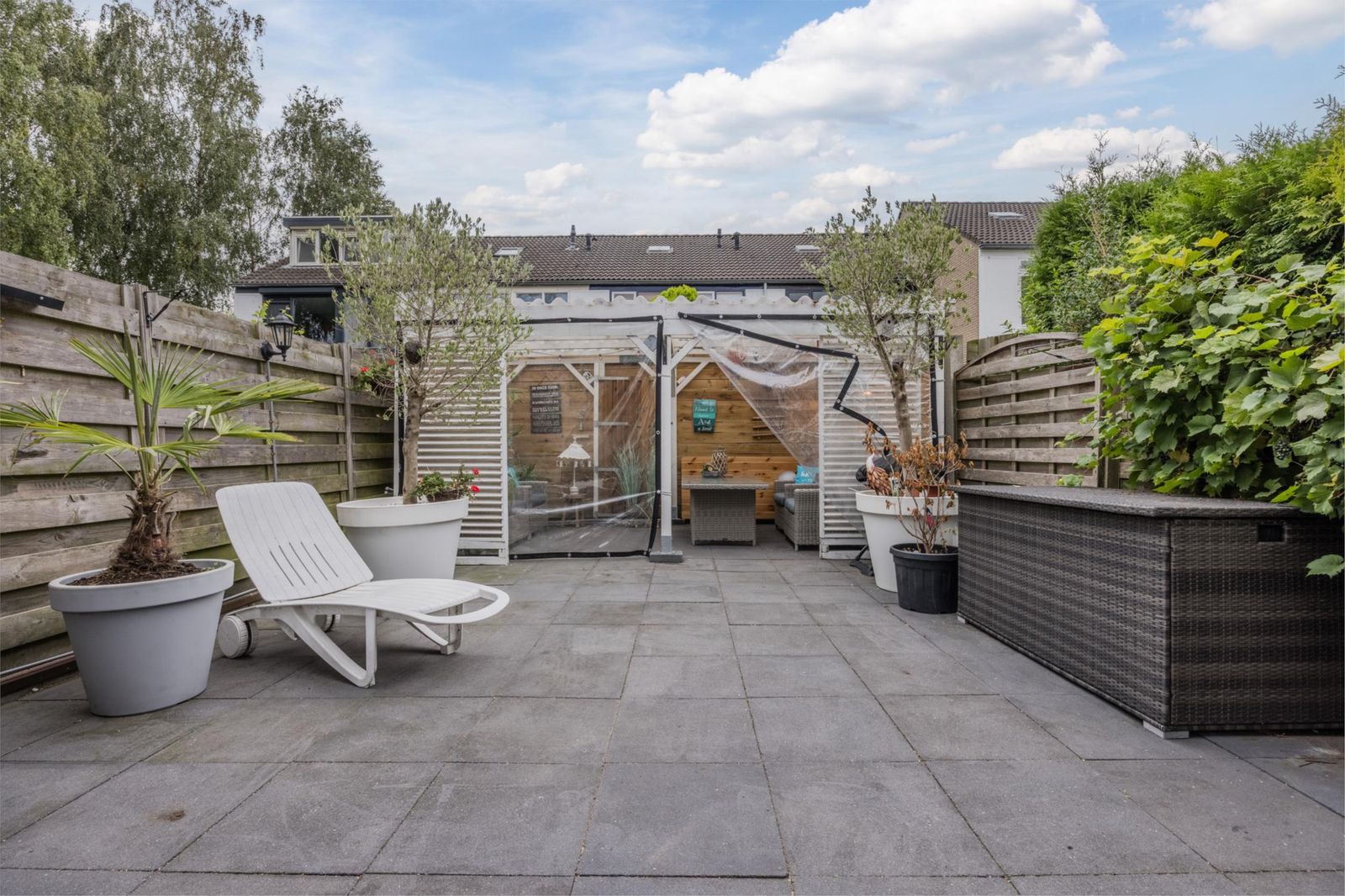 De royale zonnige tuin is zuidwestelijk gelegen en voorzien van bestrating en schuttingen. Een leuke overkapping waar u heerlijk kan vertoeven.