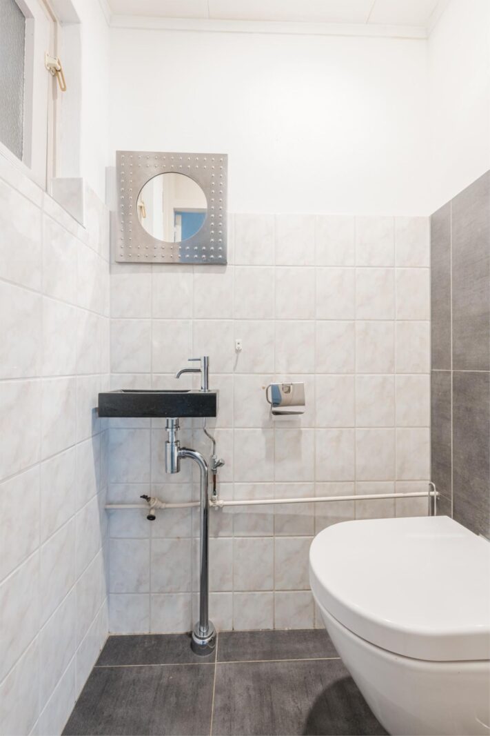 Verder vind je op de begane grond een slaapkamer met naastgelegen badkamer. Deze ruimte is flexibel in te delen en kan bijvoorbeeld dienen als werkkamer, speelkamer of hobbyruimte.