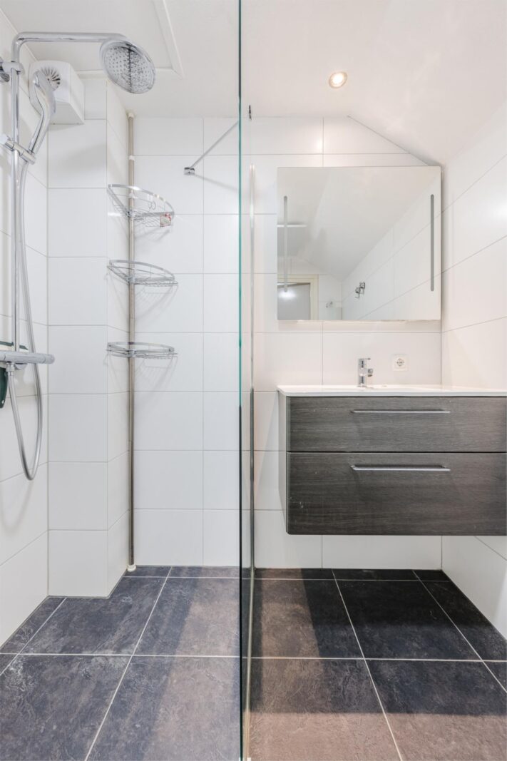 Boven de slaapkamer op de eerste verdieping bevindt zich een handige vliering. Deze extra opbergruimte is ideaal voor spullen die je niet dagelijks nodig hebt.