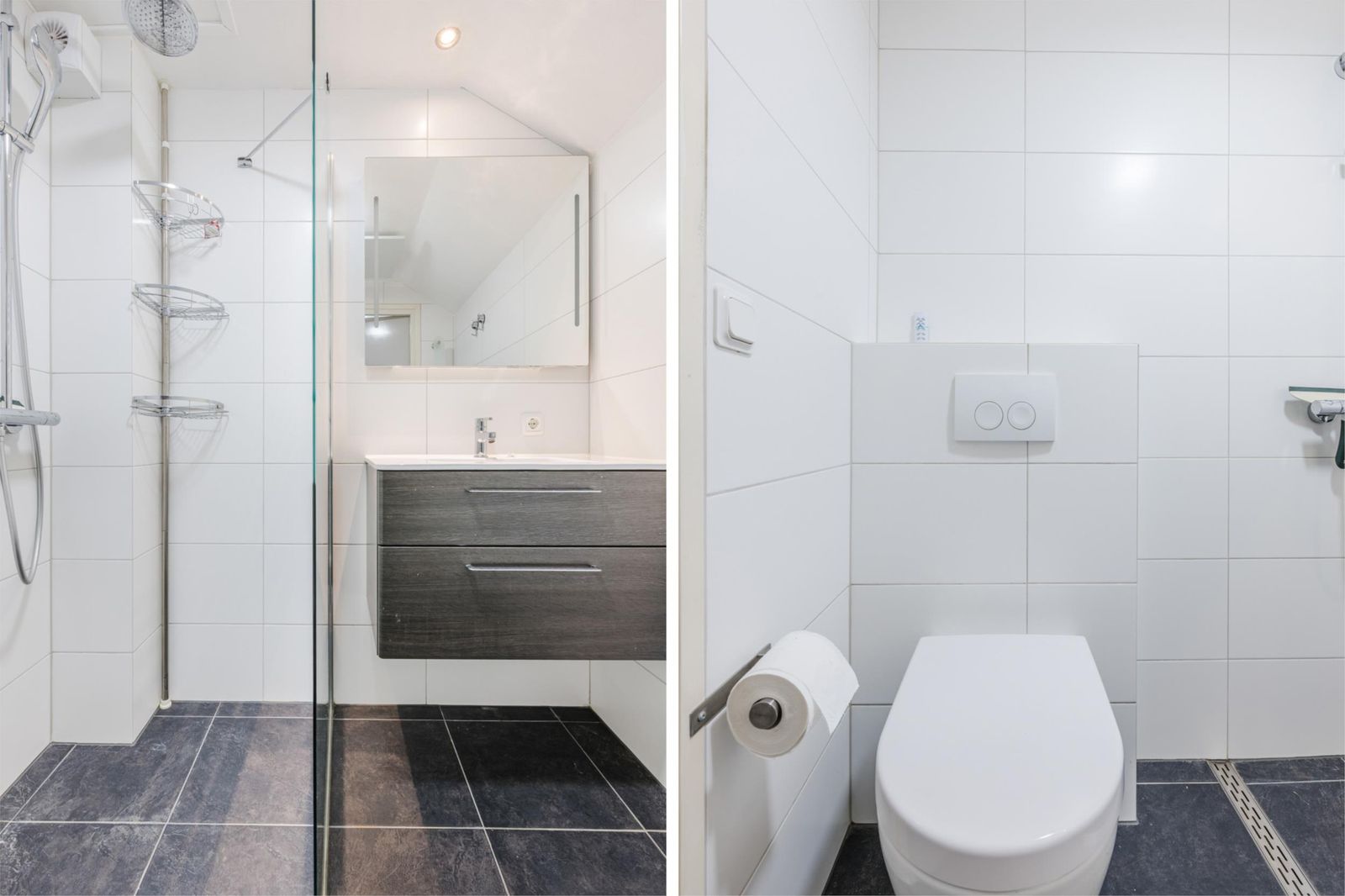 De trapopgang in de woonkamer brengt je naar de vide en overloop. Op de eerste verdieping bevinden zich 2 ruime slaapkamers, allen voorzien van grote ramen en veel lichtinval. De kamers zijn goed in te delen als master bedroom, kinderkamer of thuiswerkplek. De moderne badkamer is compleet uitgerust met douche, wastafel en tweede toilet. Ook treft je hier de cv-installatie en extra bergruimte.