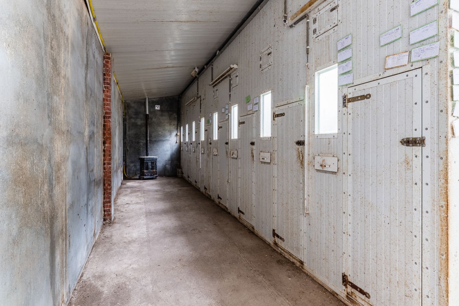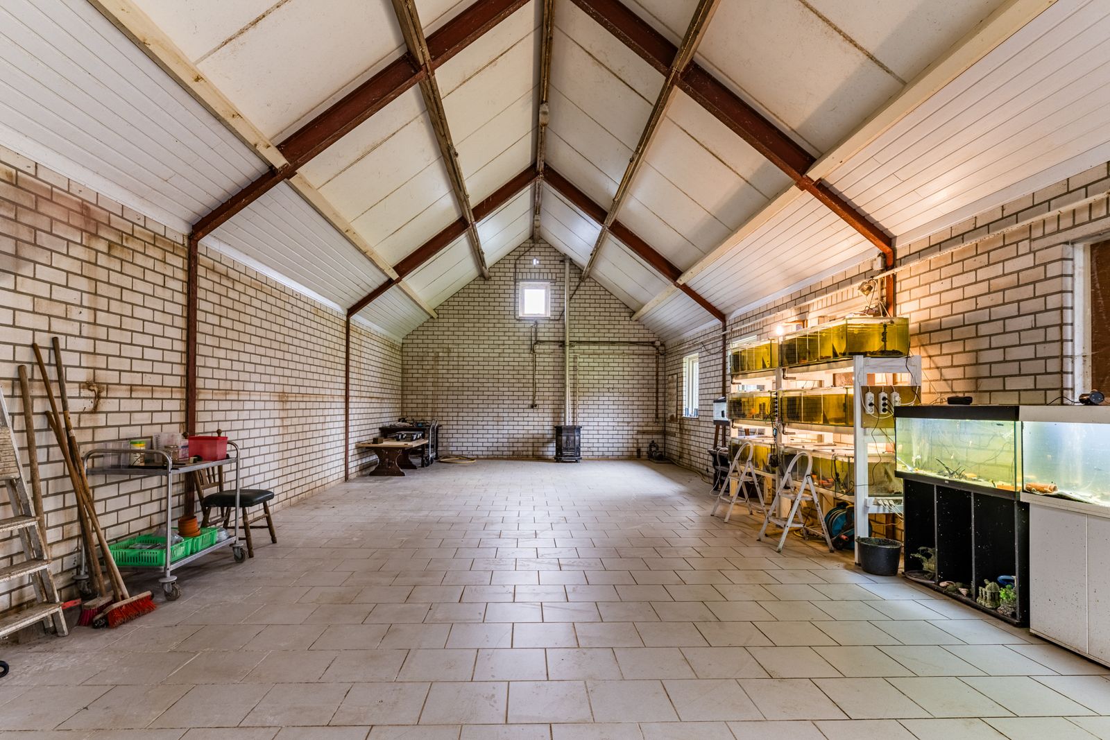 De werkschuur achter is ong. 140m2 en is voorzien van 2 extra stroomgroepen met krachtstroom. Er is ook een bronneringspomp aanwezig.
