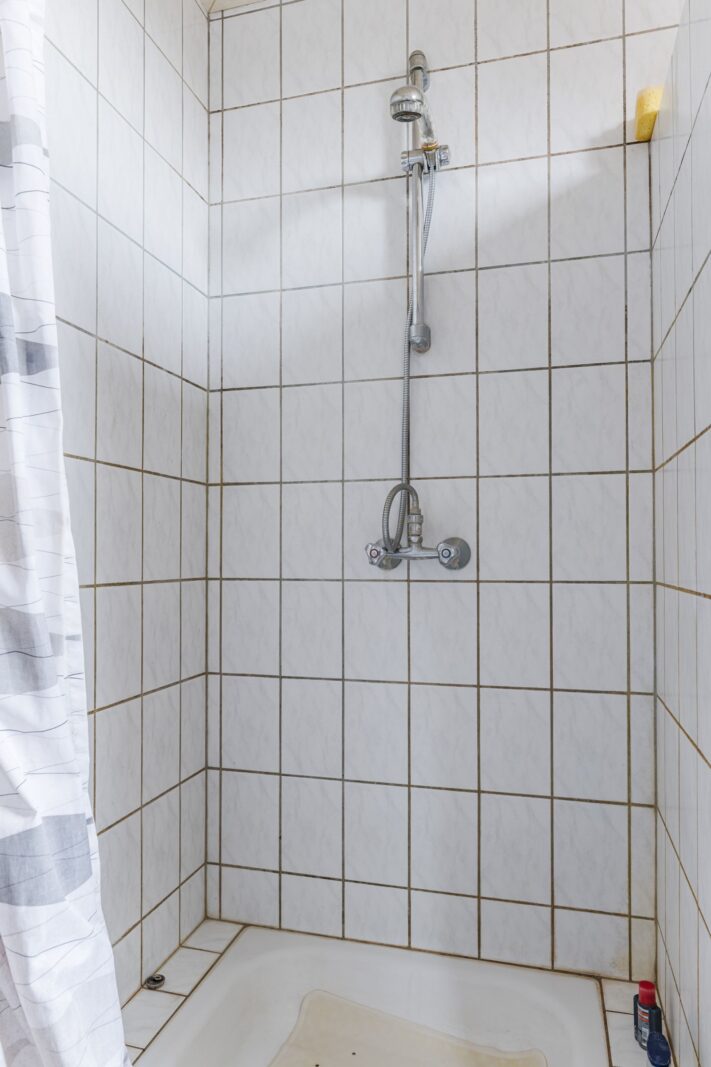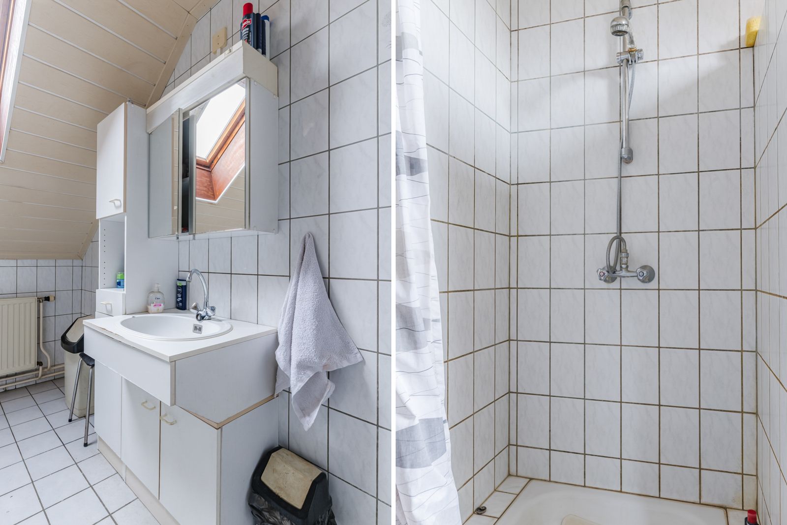 De badkamer bestaat uit douche, ligbad, wastafel en toilet.