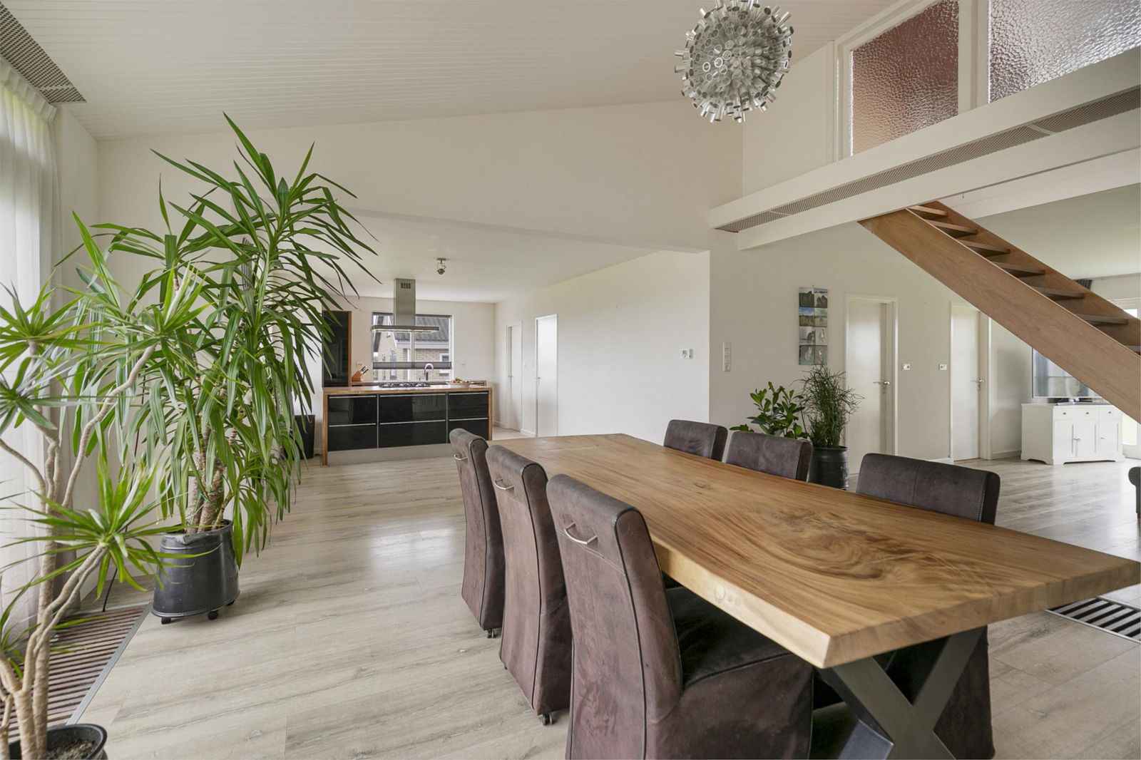 Het woonhuis met een inhoud van maar liefst 875 m3 is perfect voor wie gelijkvloers wil wonen. De 5 ruime slaapkamers, waarvan 3 op de begane grond, bieden alle ruimte voor uzelf en uw gezin. De extra grote ruimte met dakkapel en lichtkoepel is ideaal als kantoor, hobbyruimte of eventueel als extra slaapkamer. De moderne keuken met inbouwapparatuur, waaronder een nieuwe vaatwasser (Bosch, 2024), staat in directe verbinding met de riante woonkamer. De vele ramen en glazen puien zorgen voor een heerlijk lichte leefomgeving.