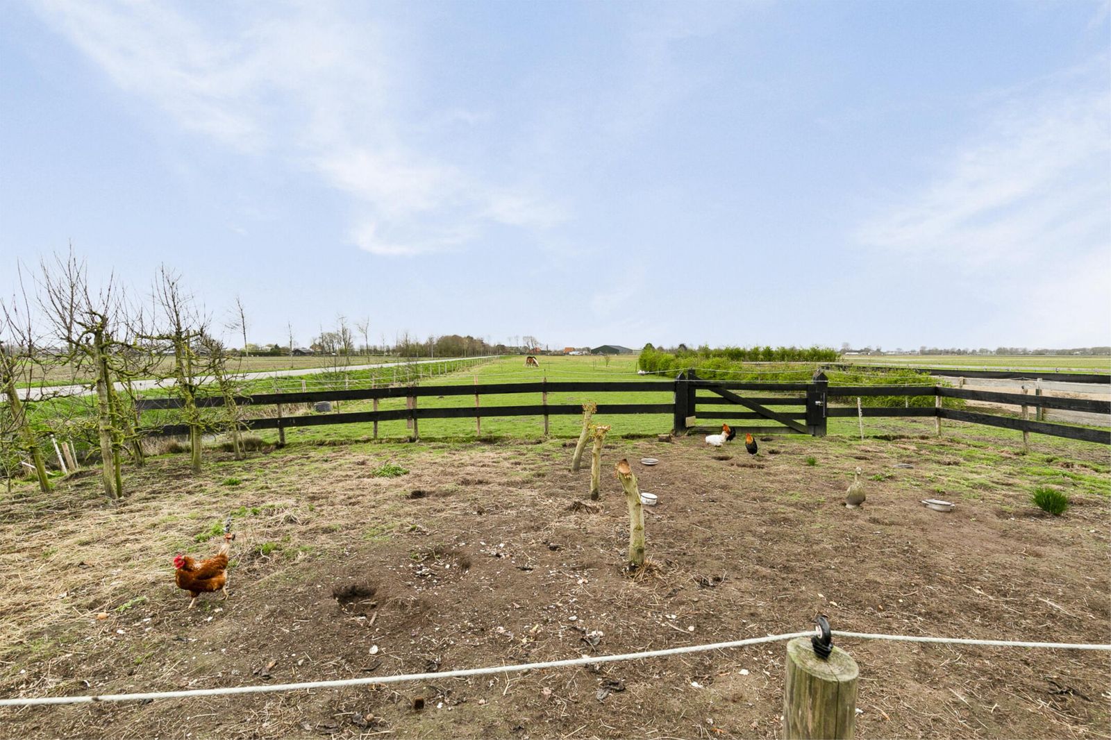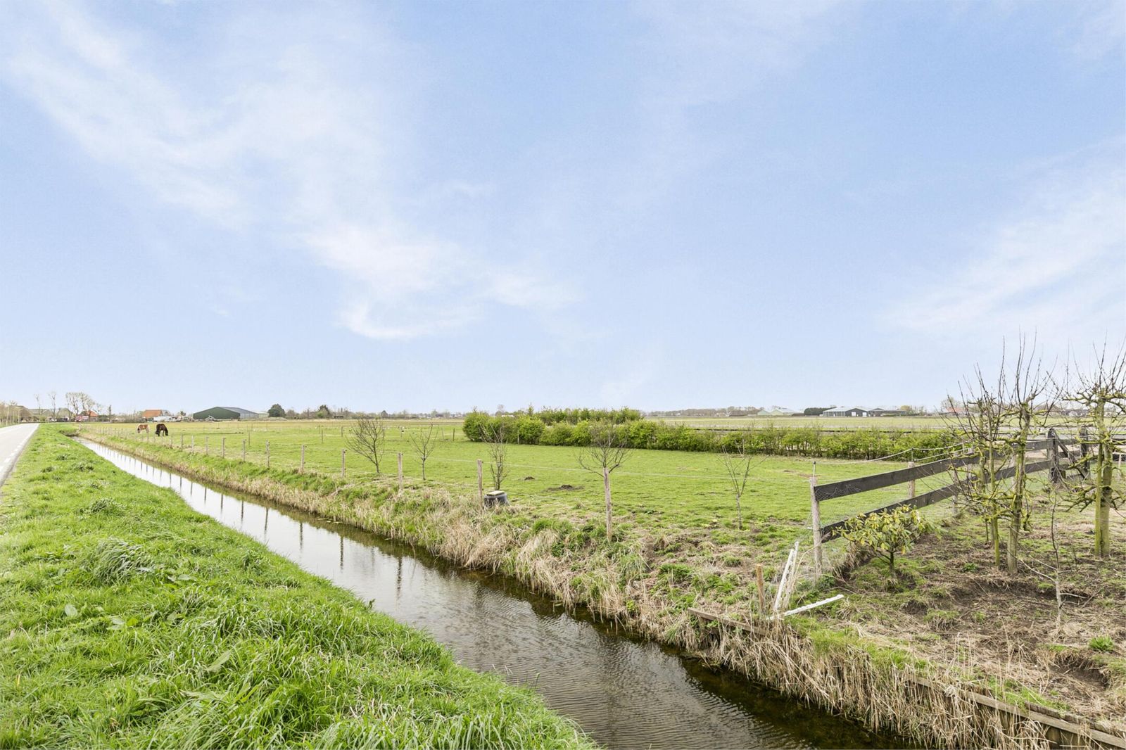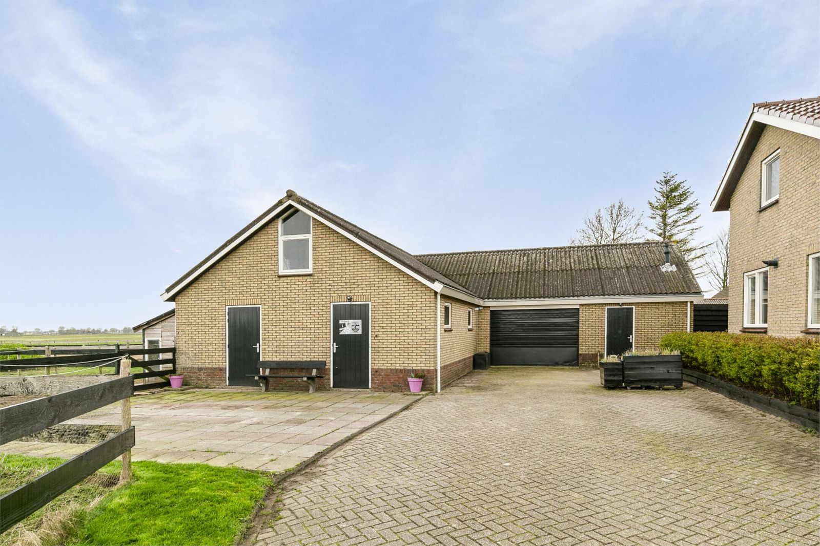 Grenzend aan de schuur bevindt zich een hoge paardeninloopstal van circa 31 m2, een royale paarden(zand)bak/rijbak van 800 m2 (40 bij 20) en voldoende grasland. Uw paarden kunnen hier in alle vrijheid rondlopen.