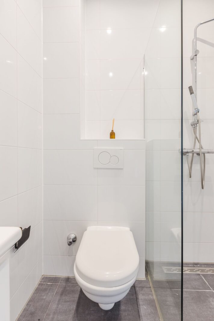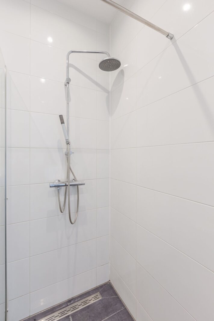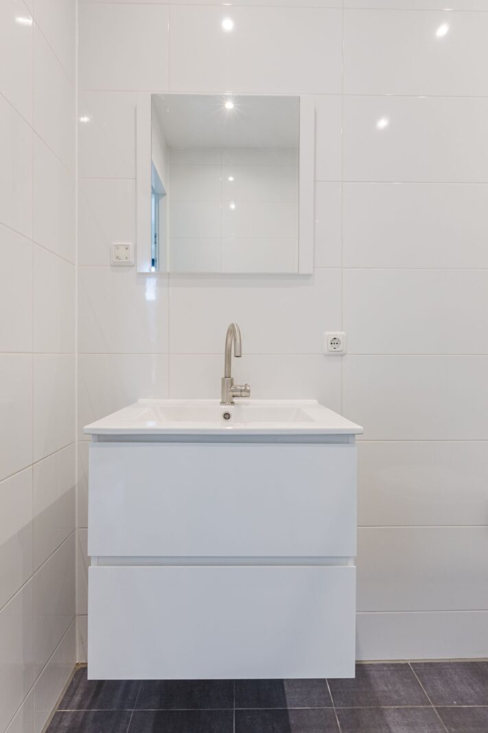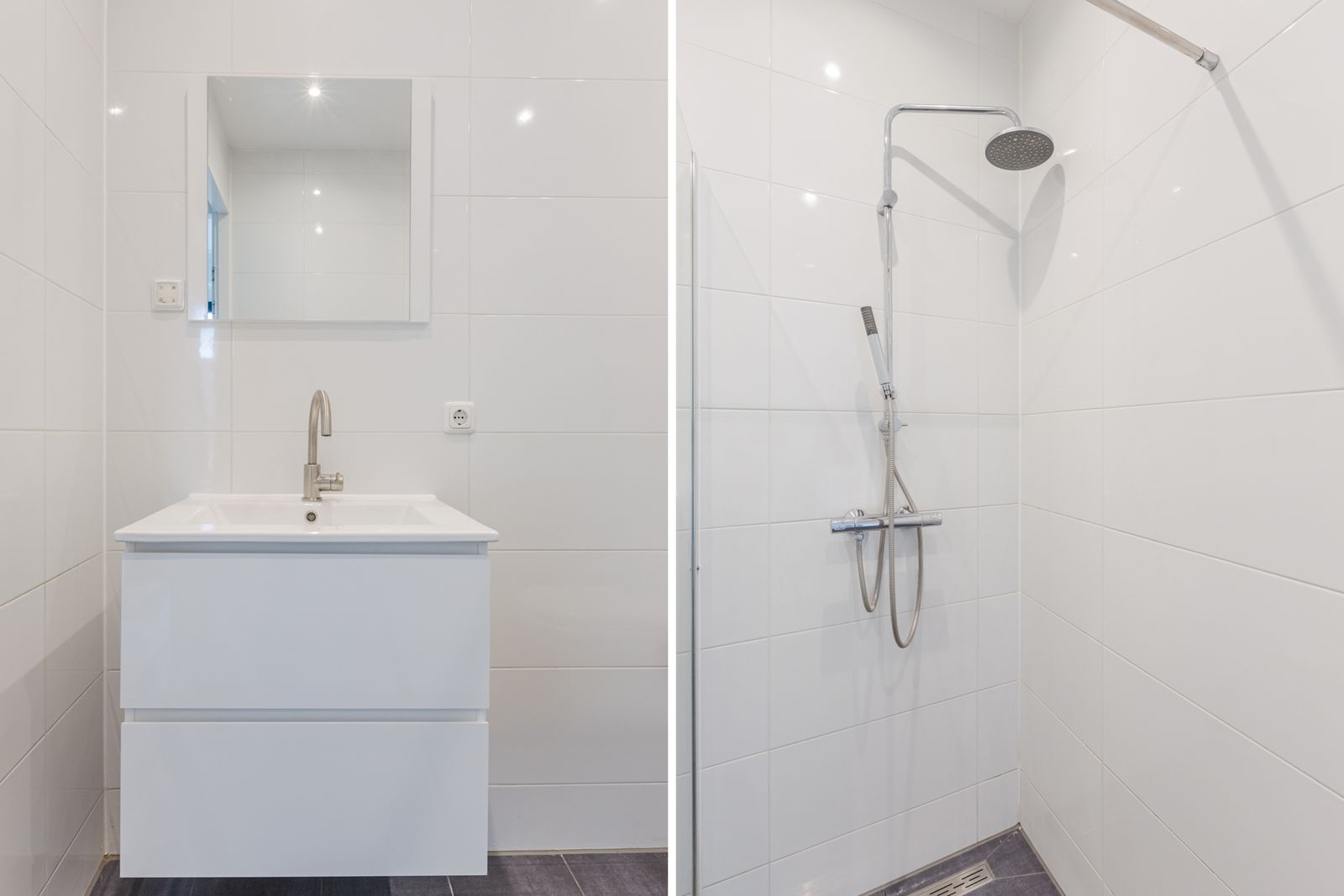 De badkamer is recent gerenoveerd, is netjes uitgevoerd met douche, wastafel en toilet.