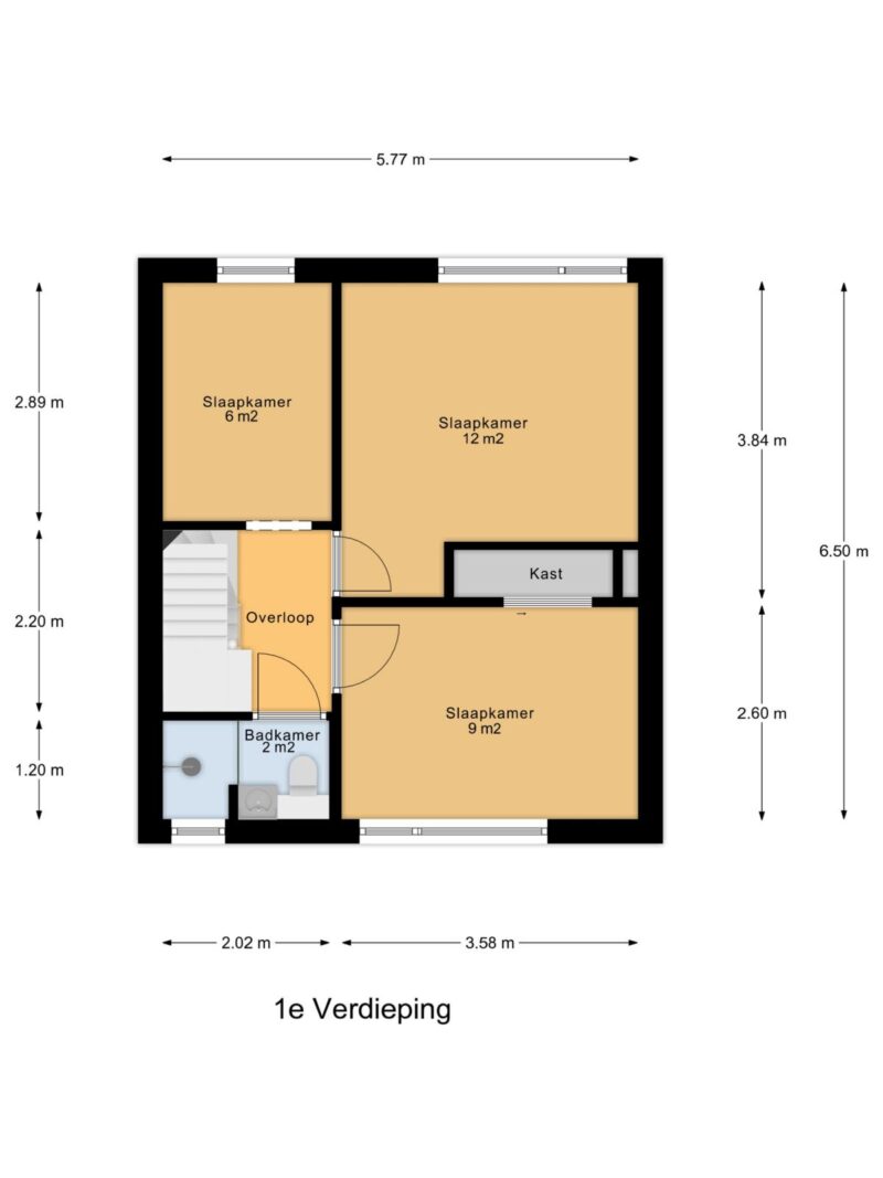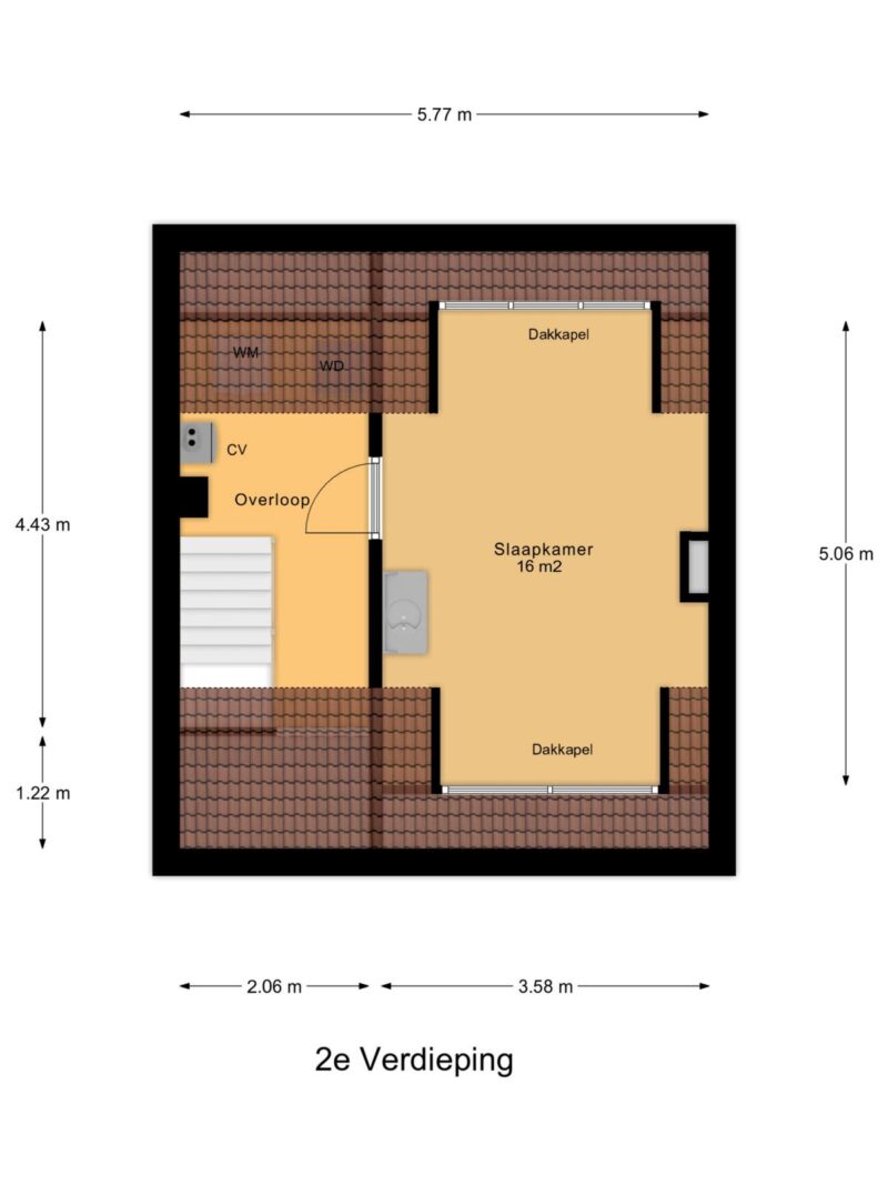 toilet, wastafelmeubel en handdoekradiator. De tweede verdieping verrast met een royale slaapkamer,