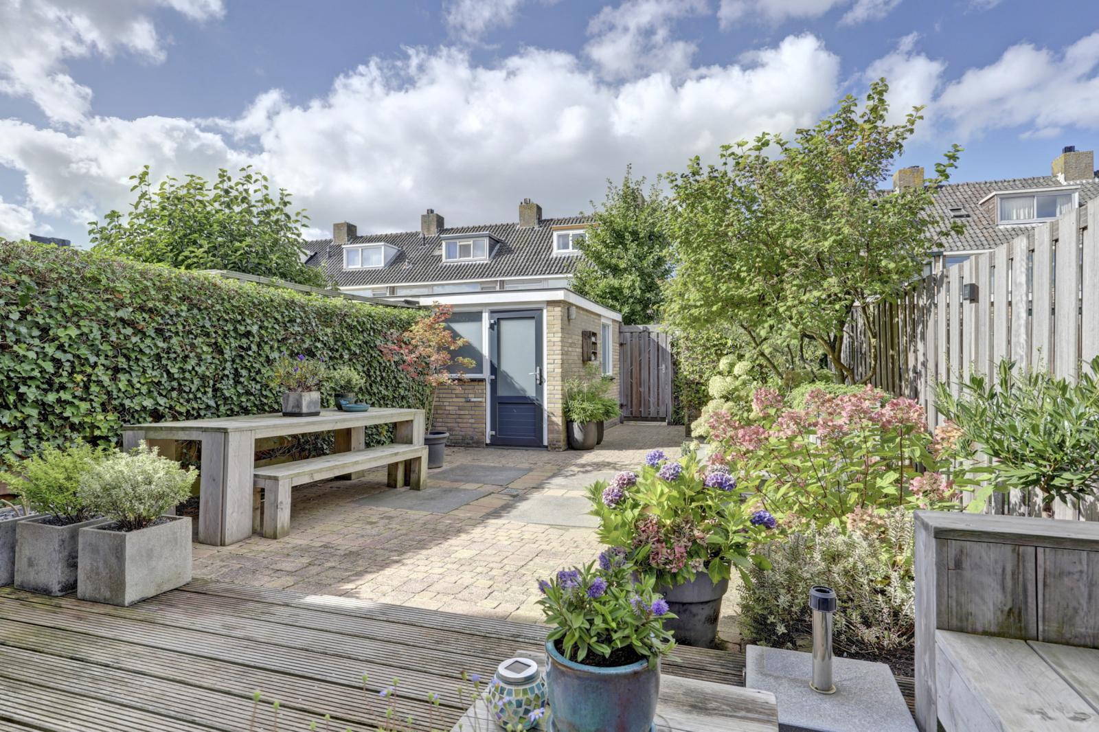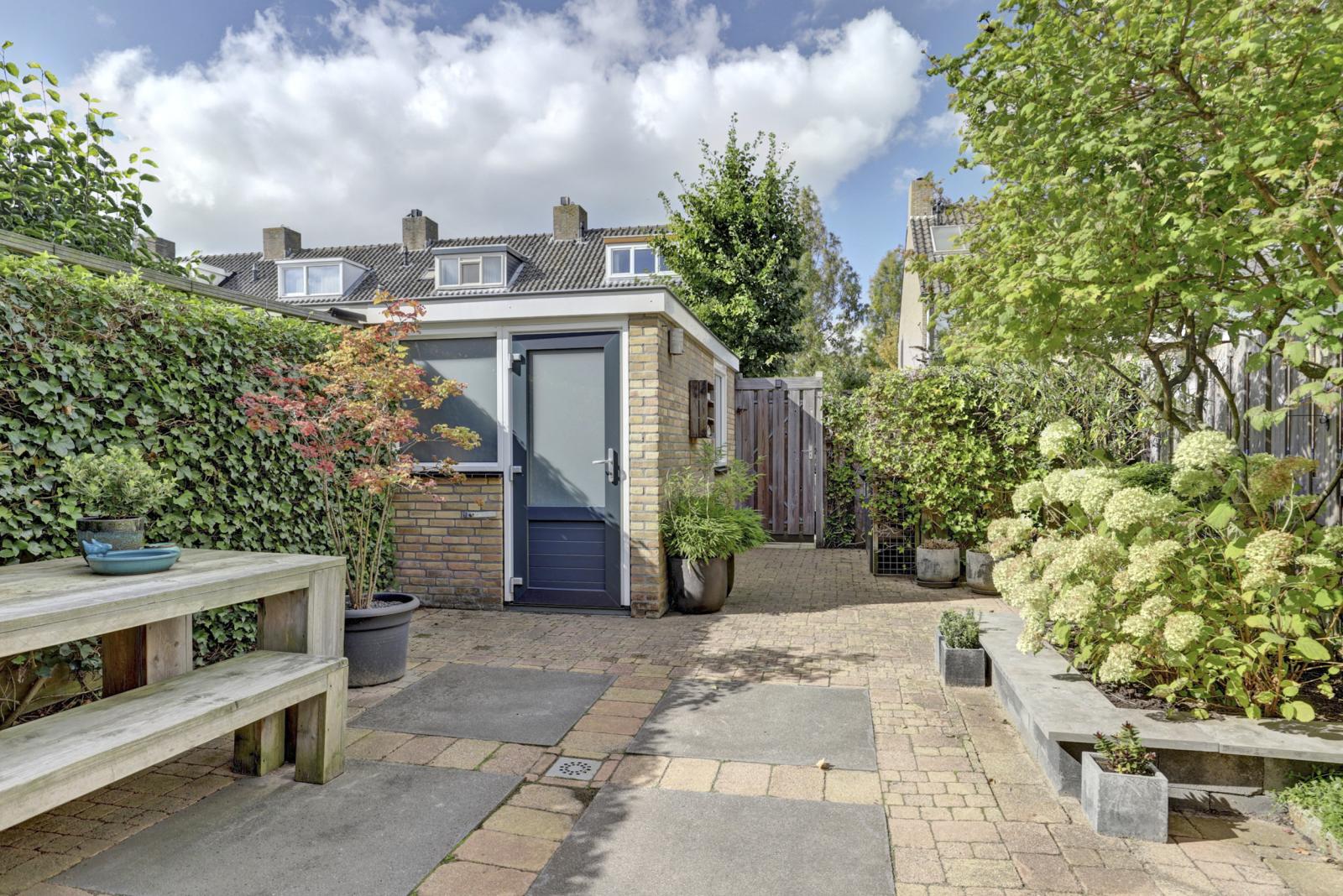 - Achtertuin op het noordwesten met vrijstaande schuur (met kunststof kozijnen) en achterom