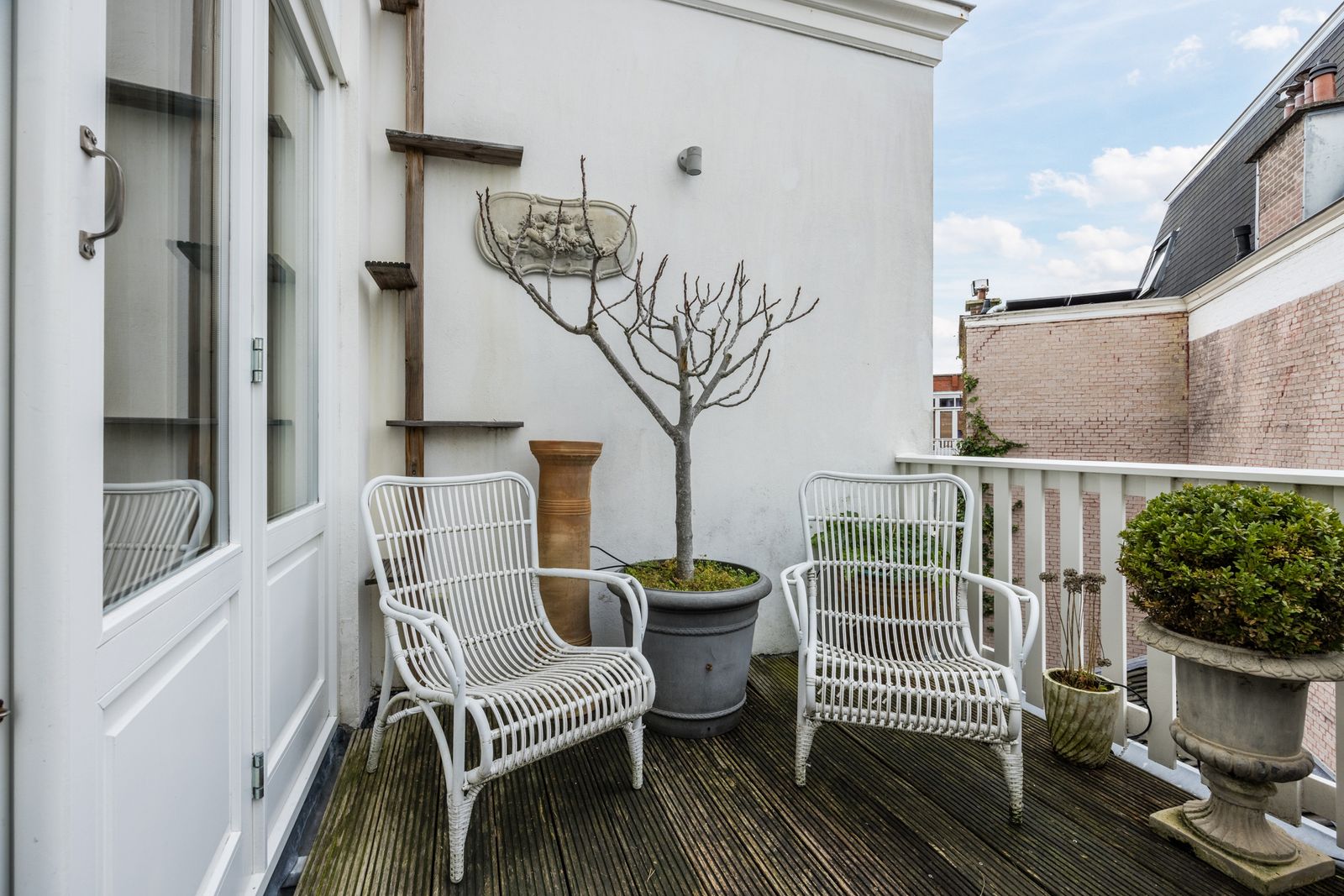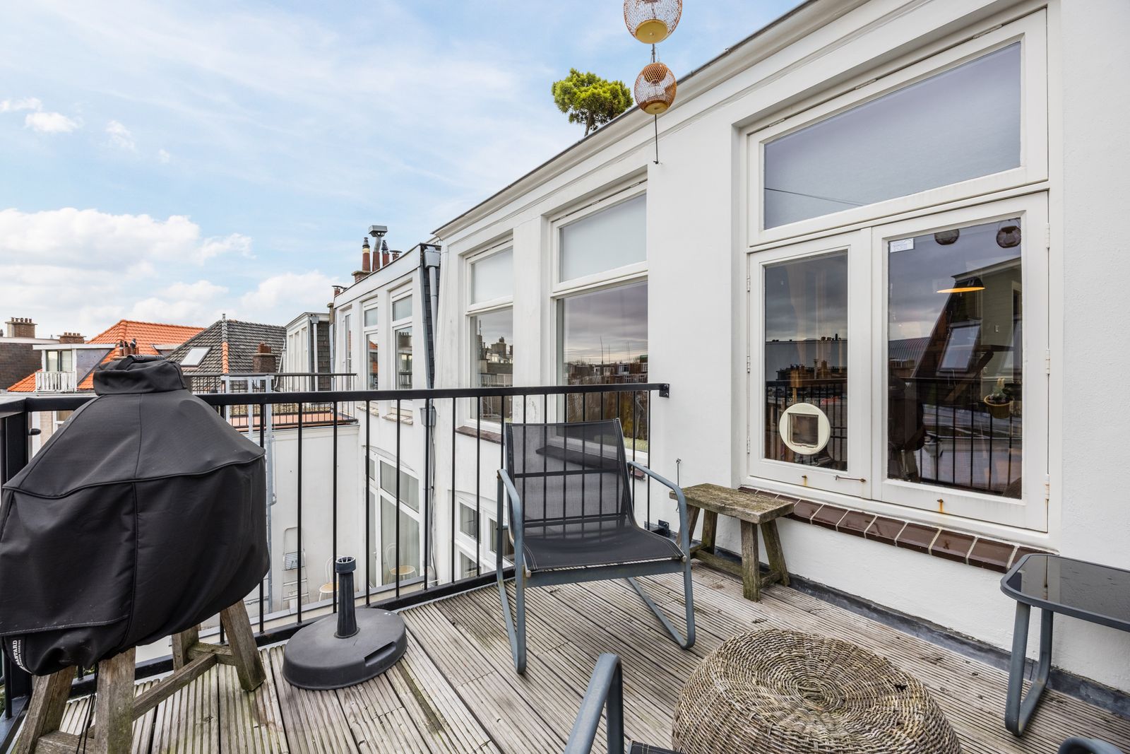 Een absolute eyecatcher: een royaal terras van ca. 42m² met water- en elektra-aansluiting, volledige privacy en fenomenaal 360° uitzicht over Den Haag. Op dit dakterras geniet u hier de hele dag door van zon en rust.