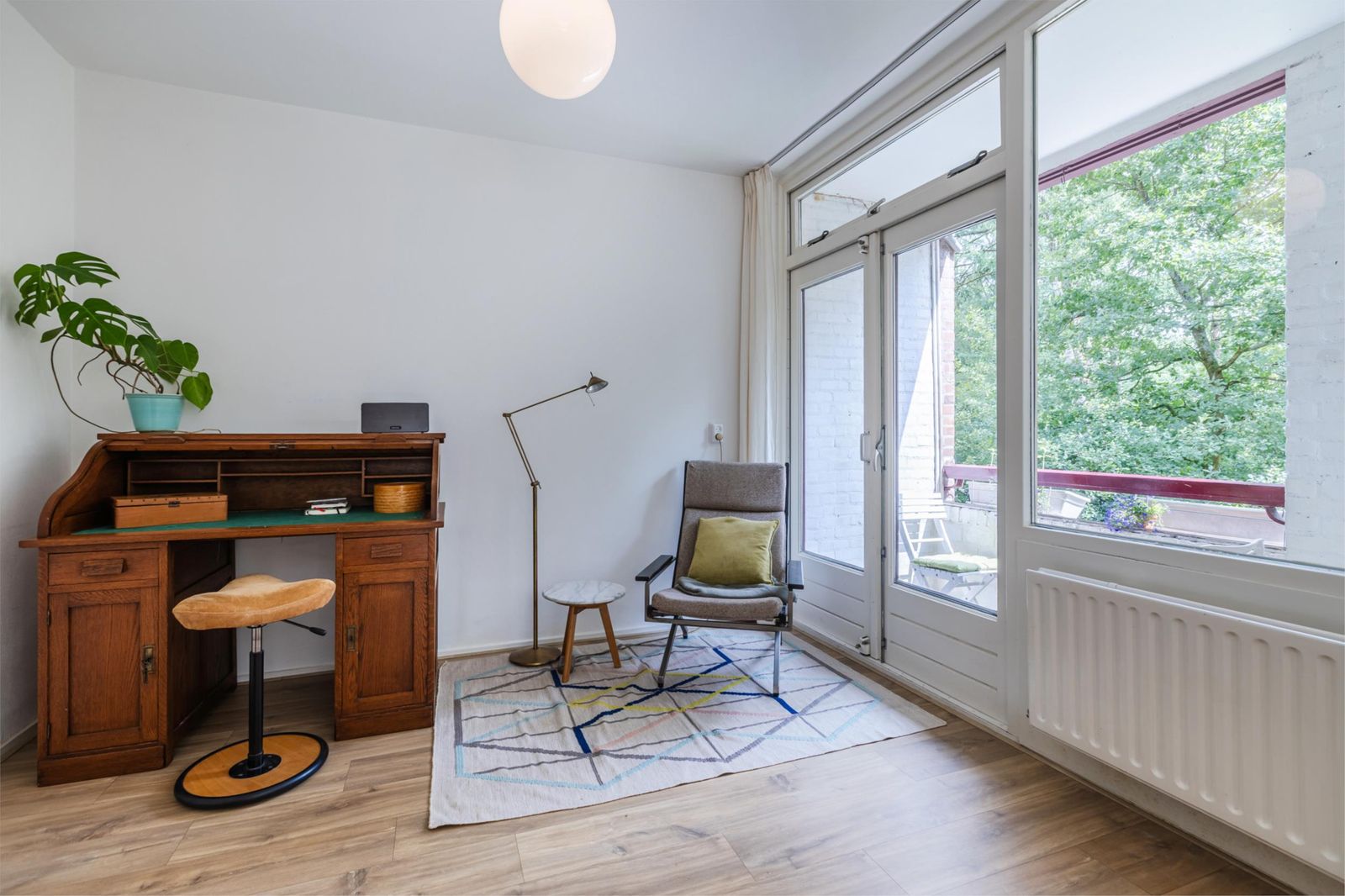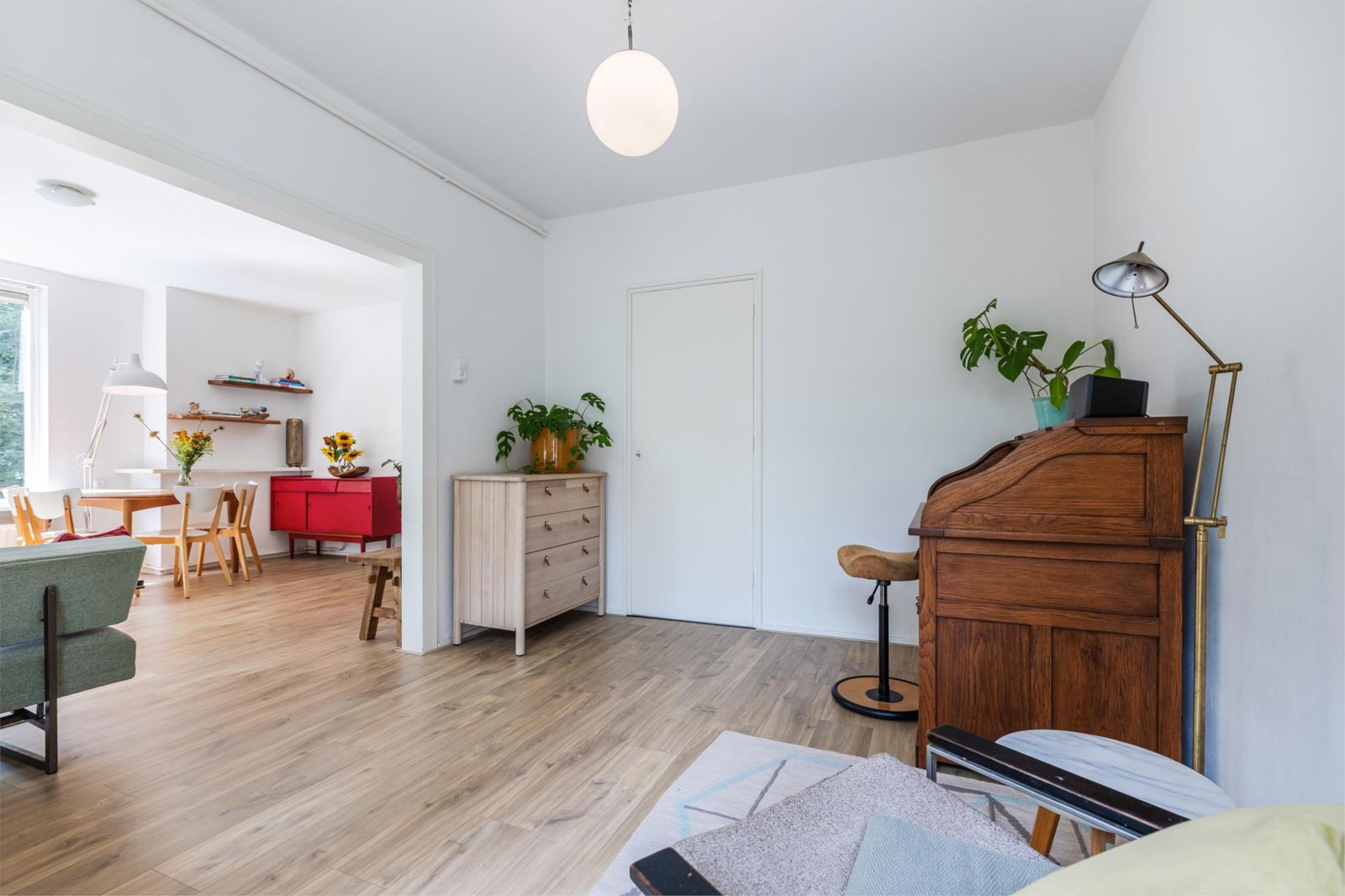 De ruime woonkamer met grote raampartijen zorgt de hele dag voor een prettige lichtinval en uitzicht op het groen. Aansluitend vind je een multifunctionele zijkamer, ideaal in te richten als eetkamer, thuiskantoor of extra slaapkamer. Het balkon op het zuidoosten bereik je vanuit deze ruimte – perfect om ’s ochtends te genieten van de eerste zonnestralen.