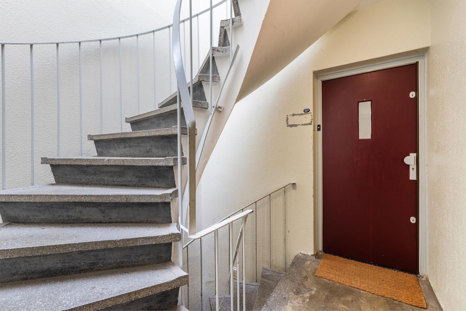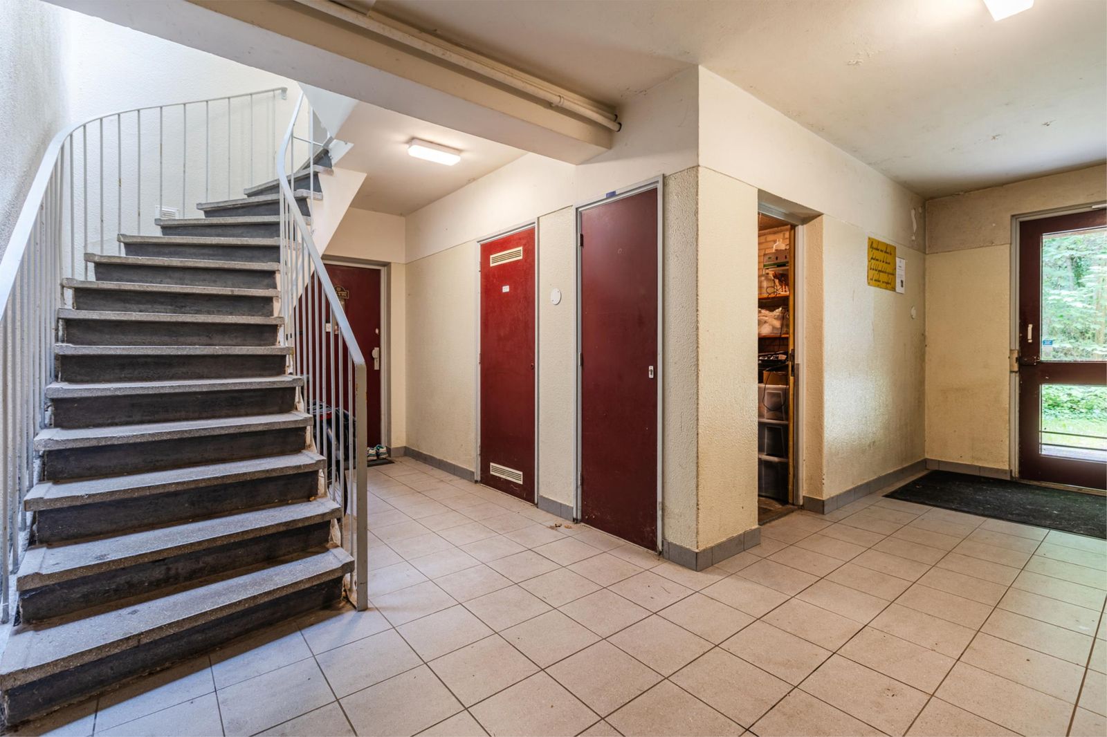Begane grond: centrale entree met toegang tot de berging en trapopgang naar het appartement.