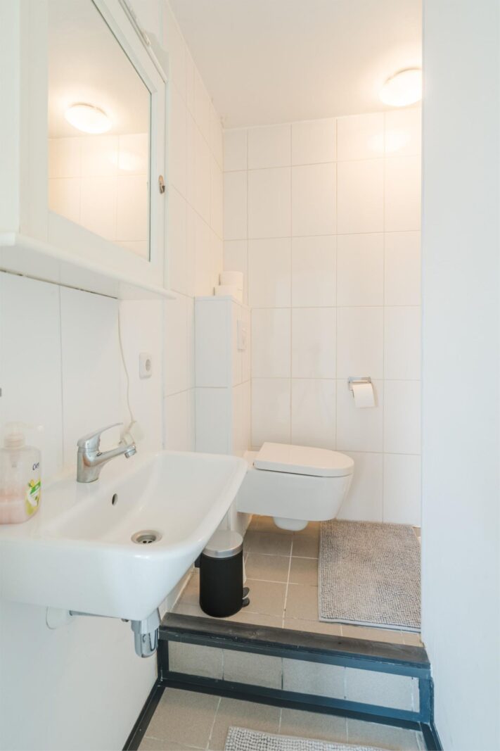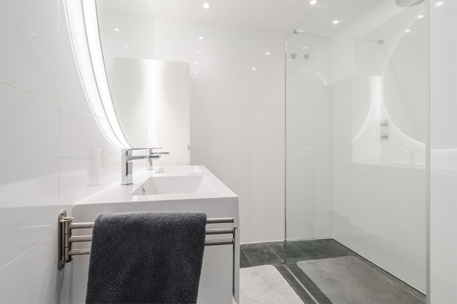Op de eerste verdieping vind je twee ruime slaapkamers (waarvan één voorzien van badkamermeubel), een apart toilet, ruime wasruimte en een moderne badkamer (2021) met elektrische vloerverwarming, inloopdouche en dubbele wastafel.