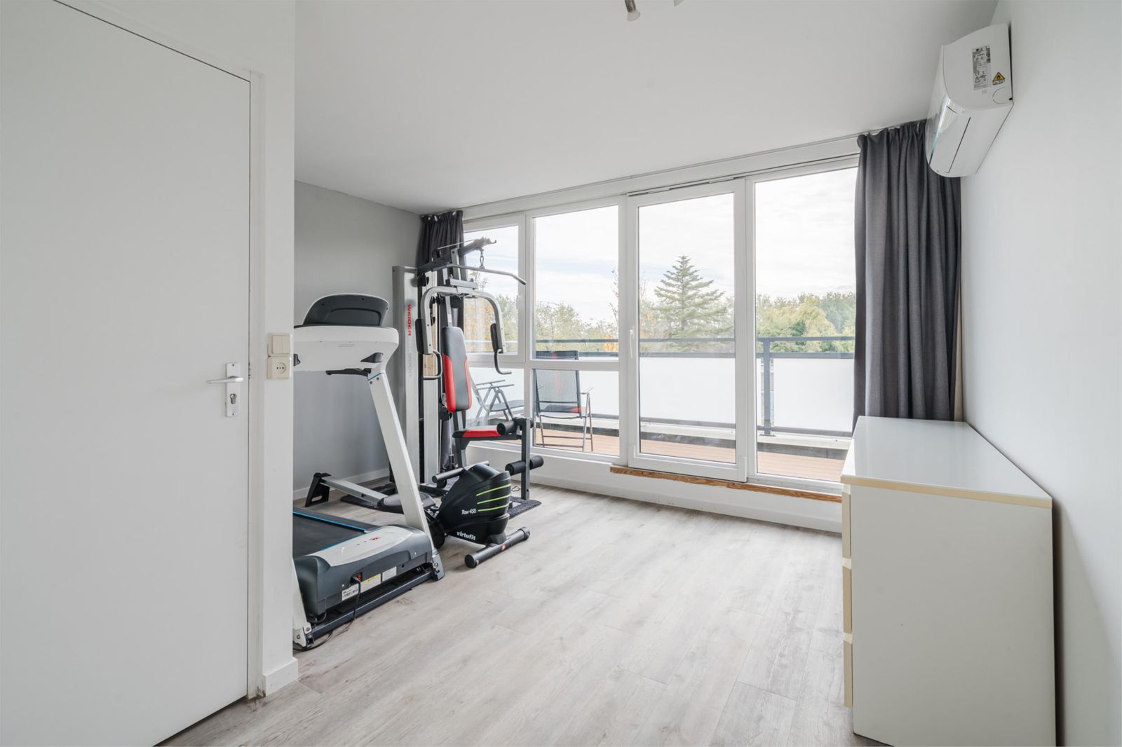 De tweede verdieping, gerealiseerd in 2016, verrast met nog eens twee slaapkamers, een badkamer met wastafel, douche en toilet en toegang tot een riant dakterras van 11m².
