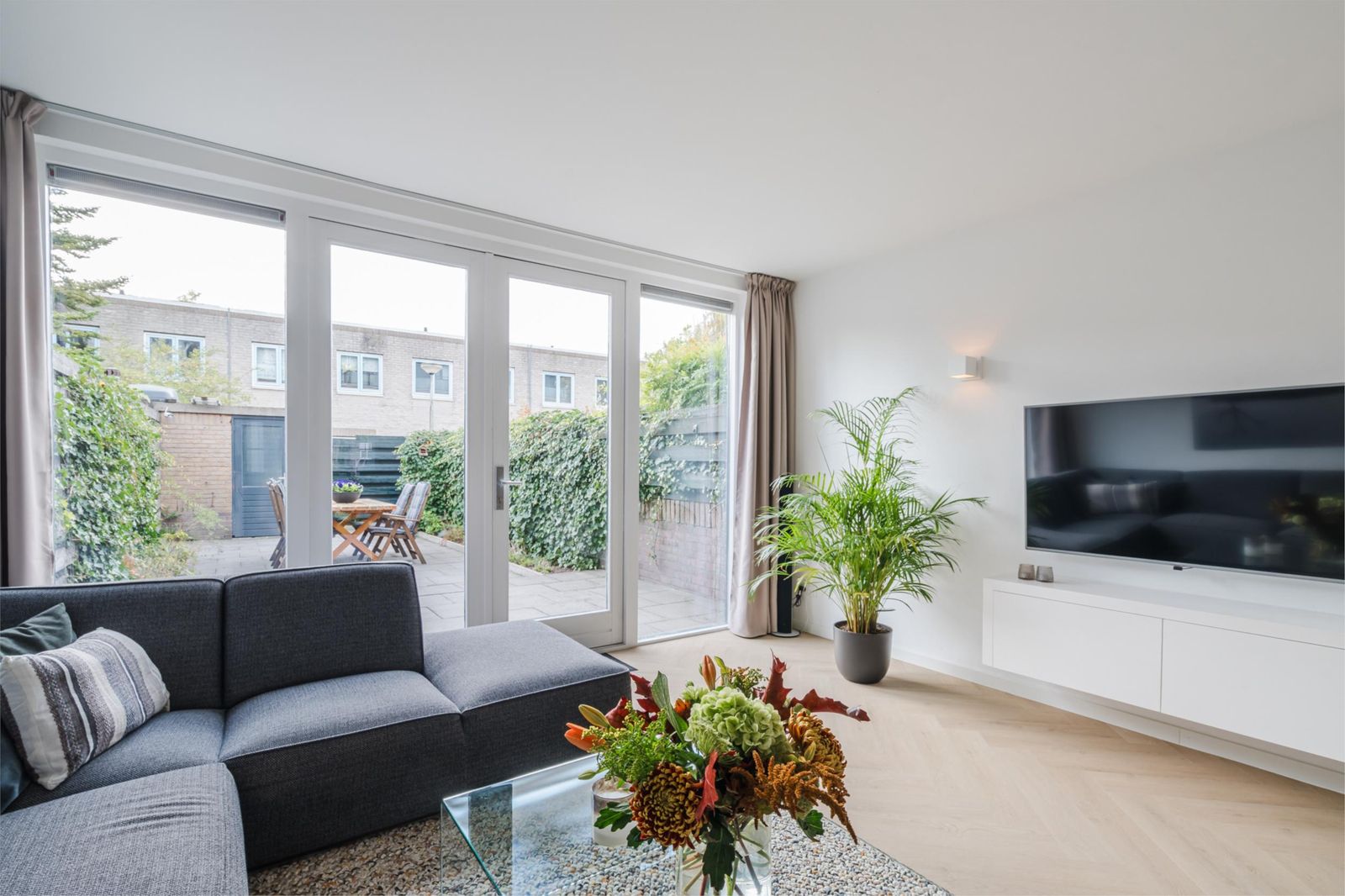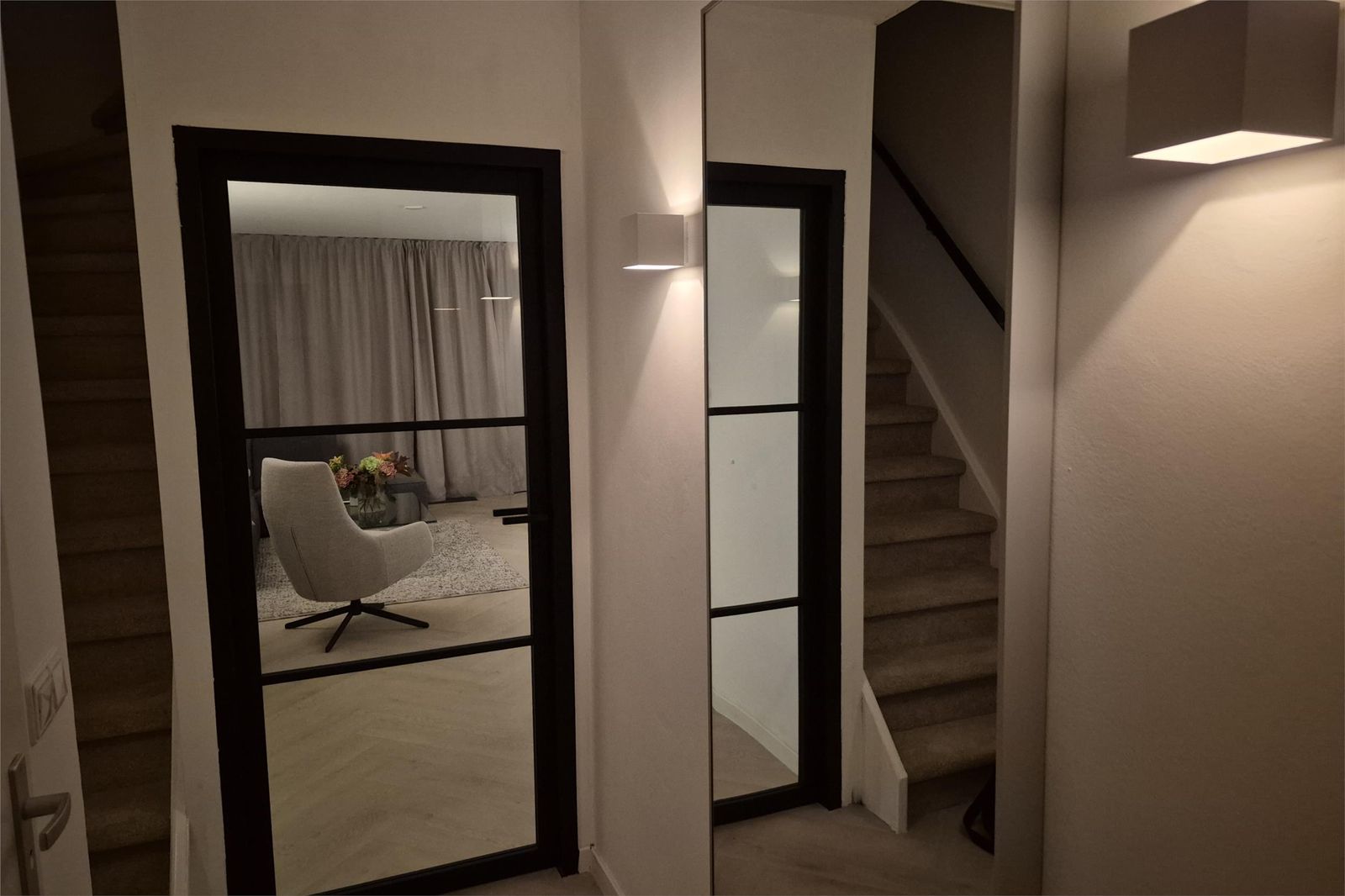 Kenmerkend aan deze huizen is dat ze in de diepte zijn gebouwd. Dat is ook direct wat je opvalt als je binnenstapt. De lichte woonkamer met open keuken heeft door de grote raampartijen en openslaande deuren een heerlijke lichtinval. De hoekkeuken (2020) ligt aan de voorzijde en is voorzien van alle gebruikelijke inbouwapparatuur. De volledige beneden verdieping is in 2025 voorzien van een visgraat pvc vloer.