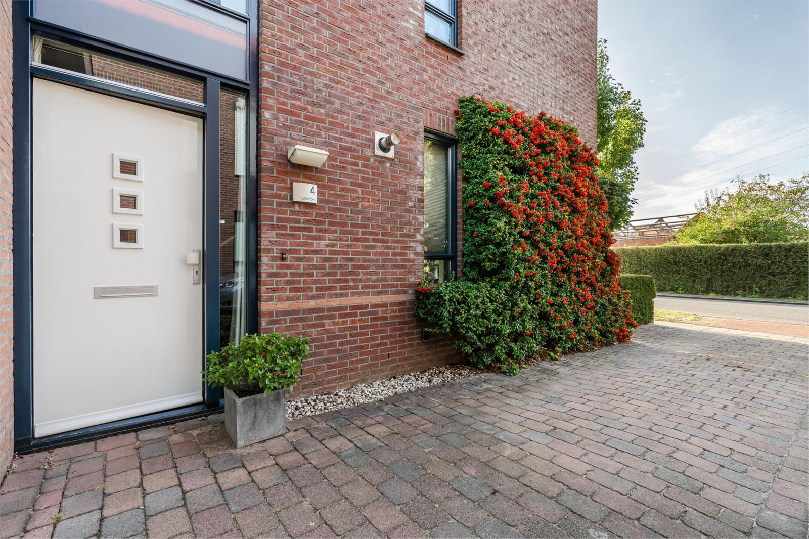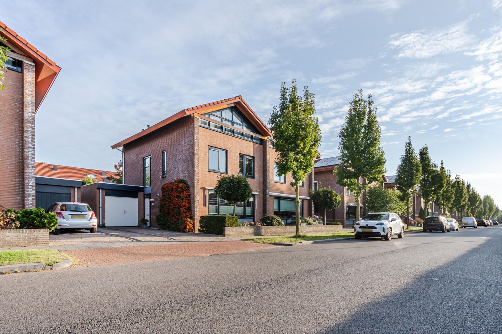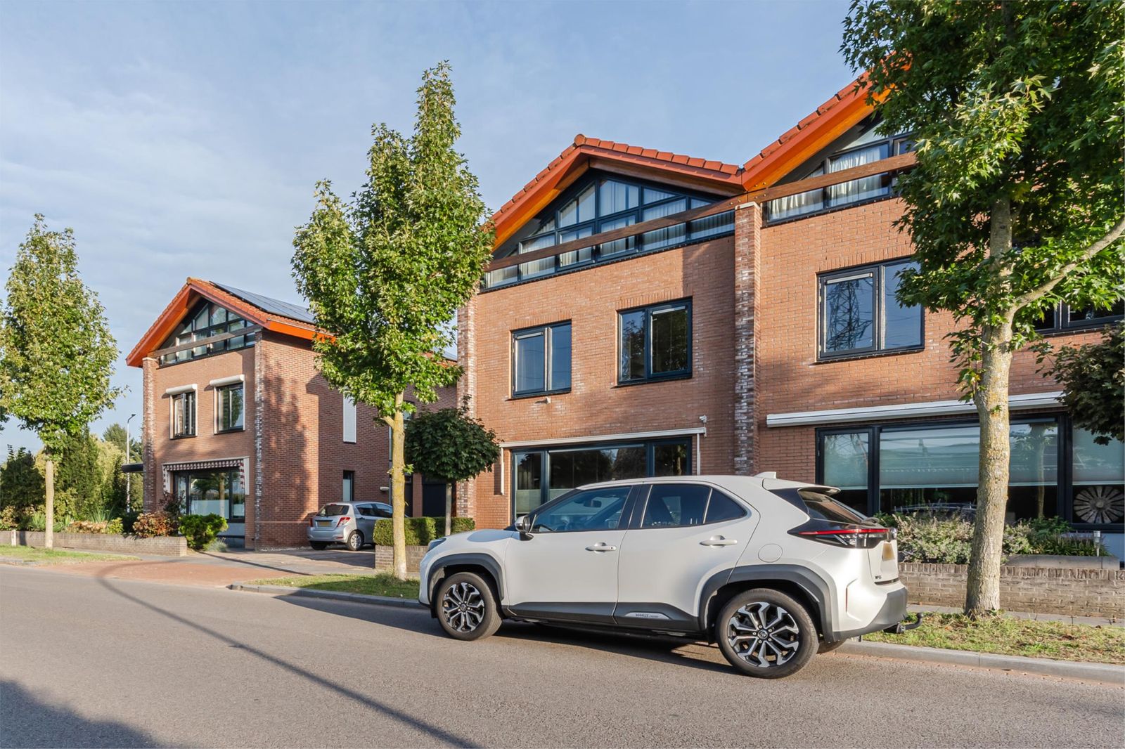 De brede oprit aan de voorkant van de woning biedt plaats aan twee voertuigen. Ook aan de straat is er parkeergelegenheid.