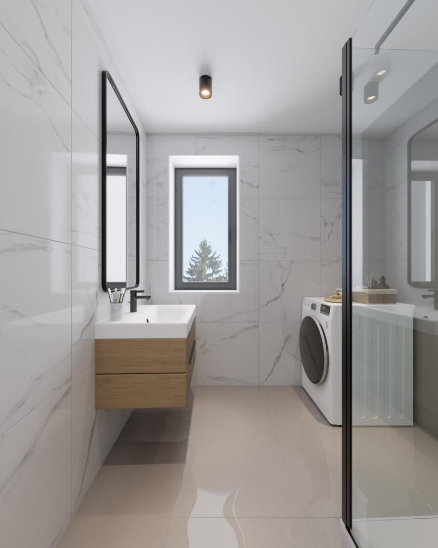 - Ruime slaapkamers en moderne badkamer: Twee comfortabele slaapkamers en een badkamer met inloopdouche, wastafelmeubel en designradiator.