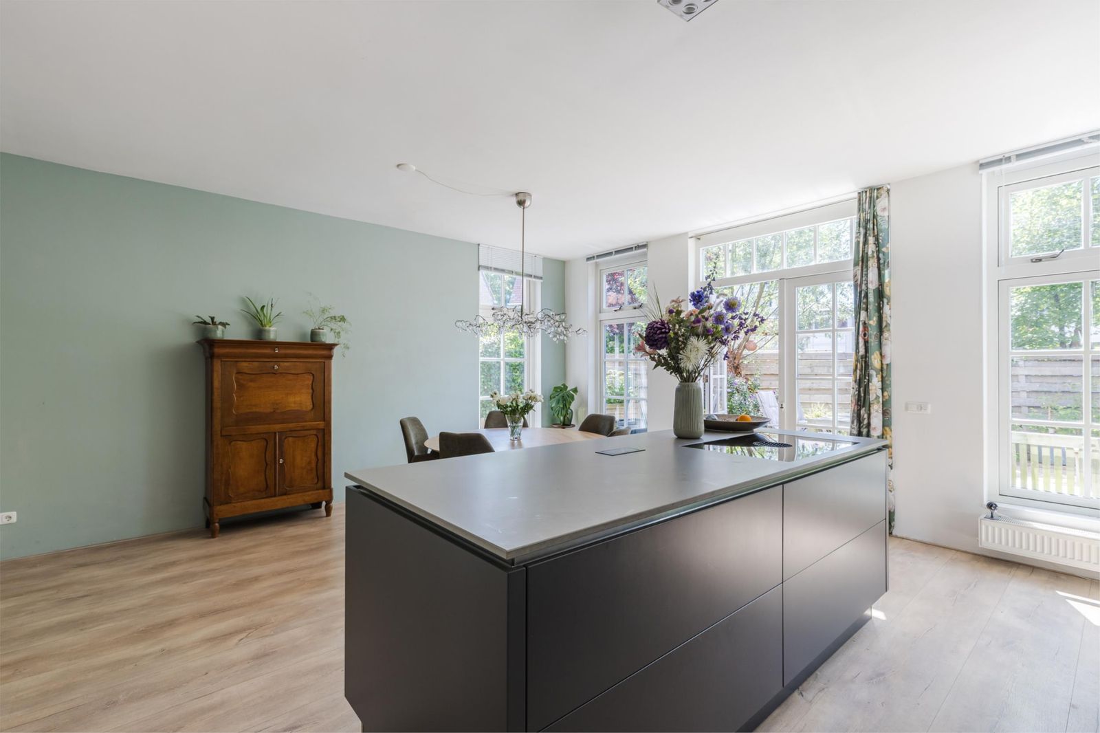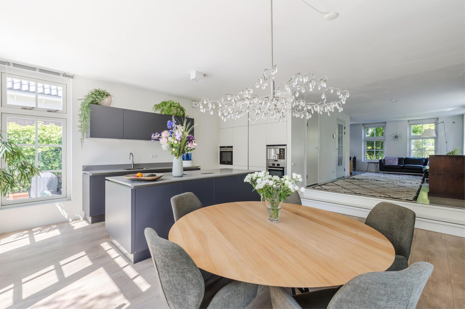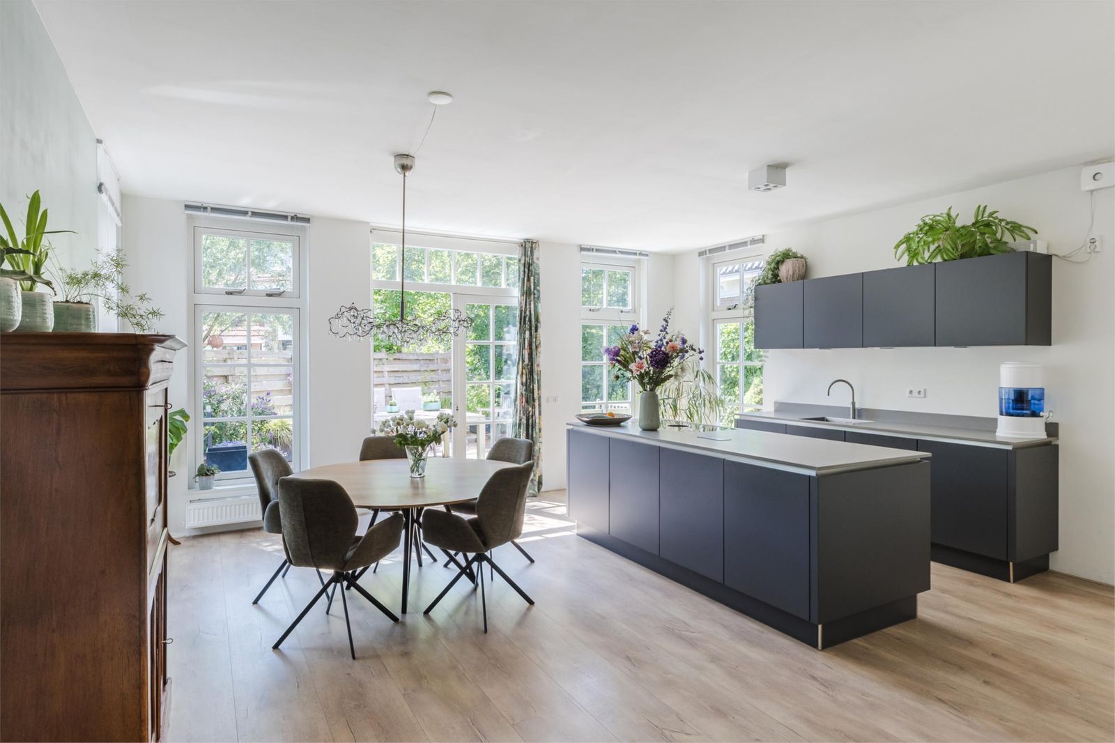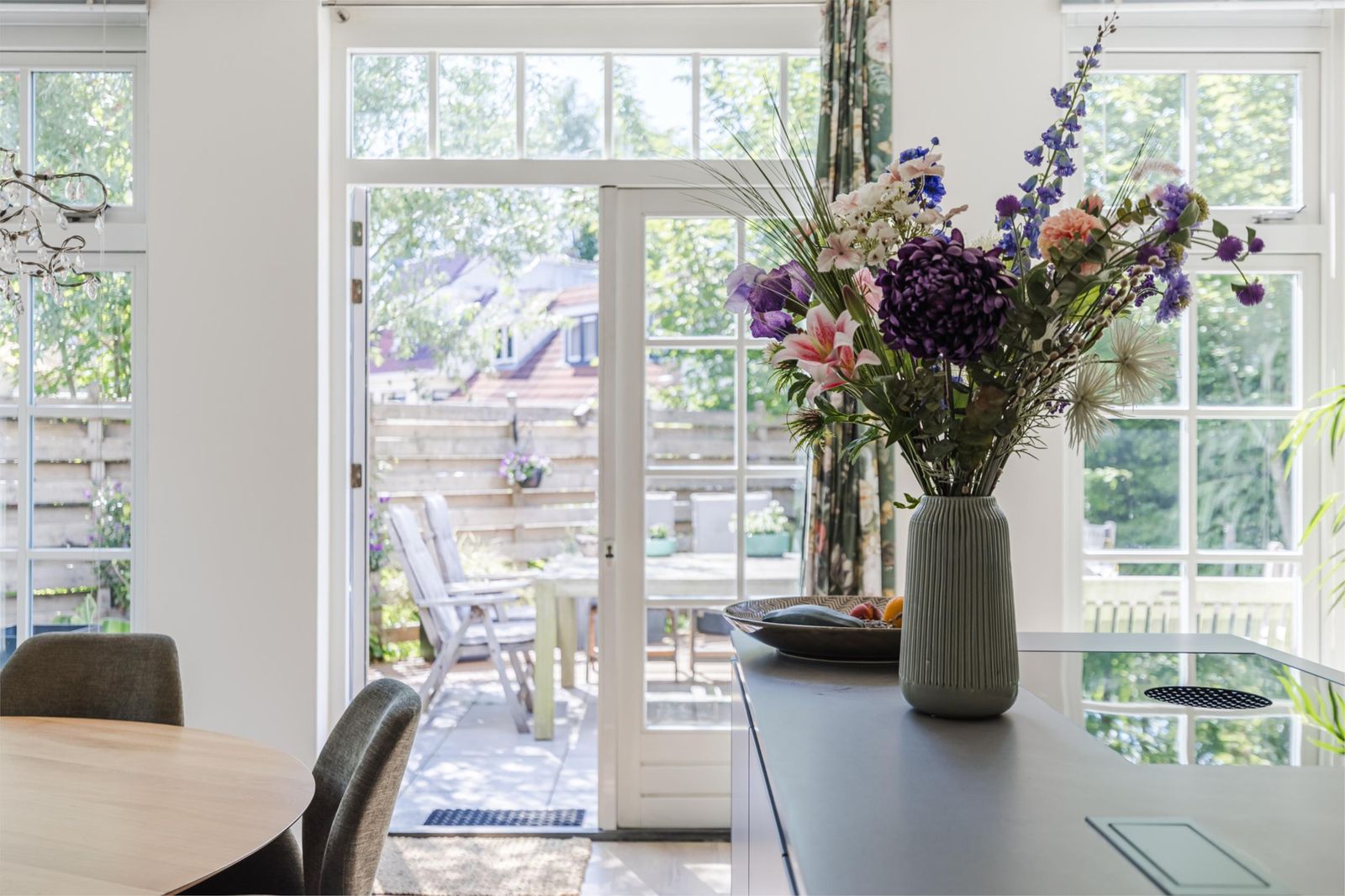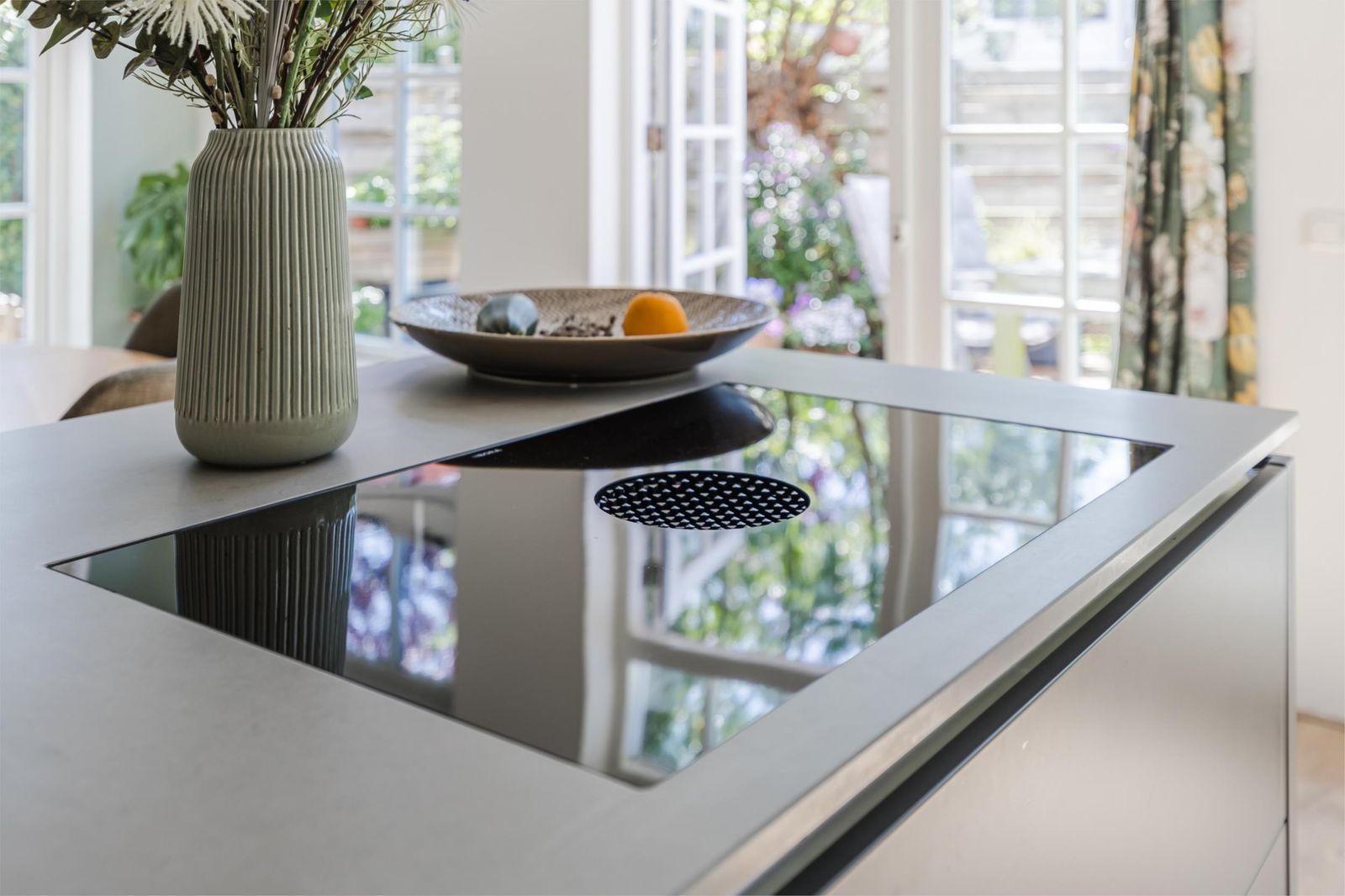 Begane grond: Ruime en lichte woonkamer met meerdere zithoeken en veel ramen. Moderne open keuken (2022) met hoogwaardige apparatuur: Bora inductiekookplaat, Quooker, stoomoven, koffiemachine, combimagnetron, vaatwasser, koel- en vrieskast. Vanuit de keuken loop je zo de tuin in. De garage is in gebruik als opslag- en klusruimte en voor de fietsen.
