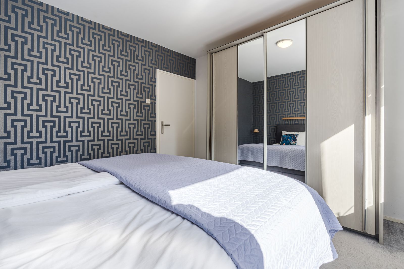Eerste verdieping: De ruime overloop biedt toegang tot nog eens twee royale slaapkamers. Dankzij de kunststof ramen met horren is het hier comfortabel wonen. Daarnaast is er volop bergruimte aanwezig achter de nette schuifdeuren op de overloop.