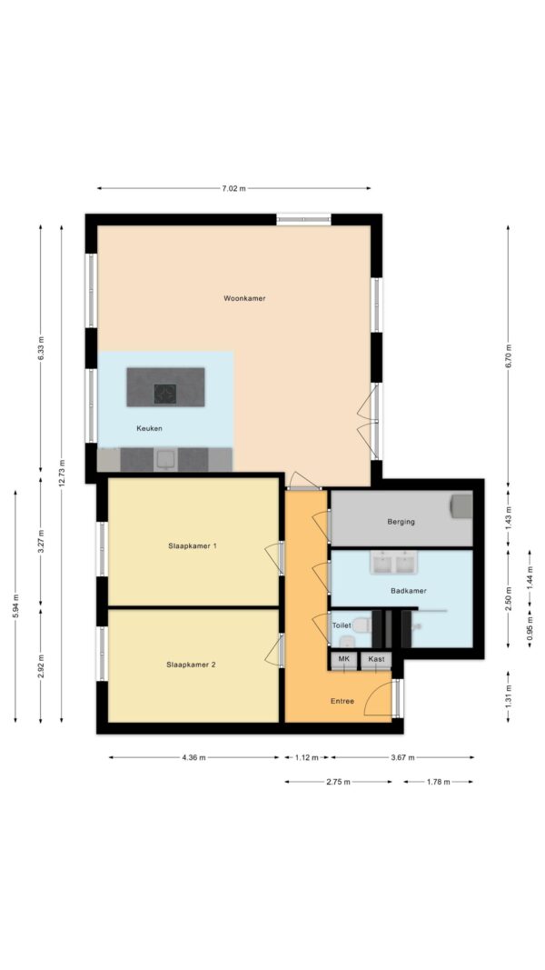 * Twee ruime slaapkamers;