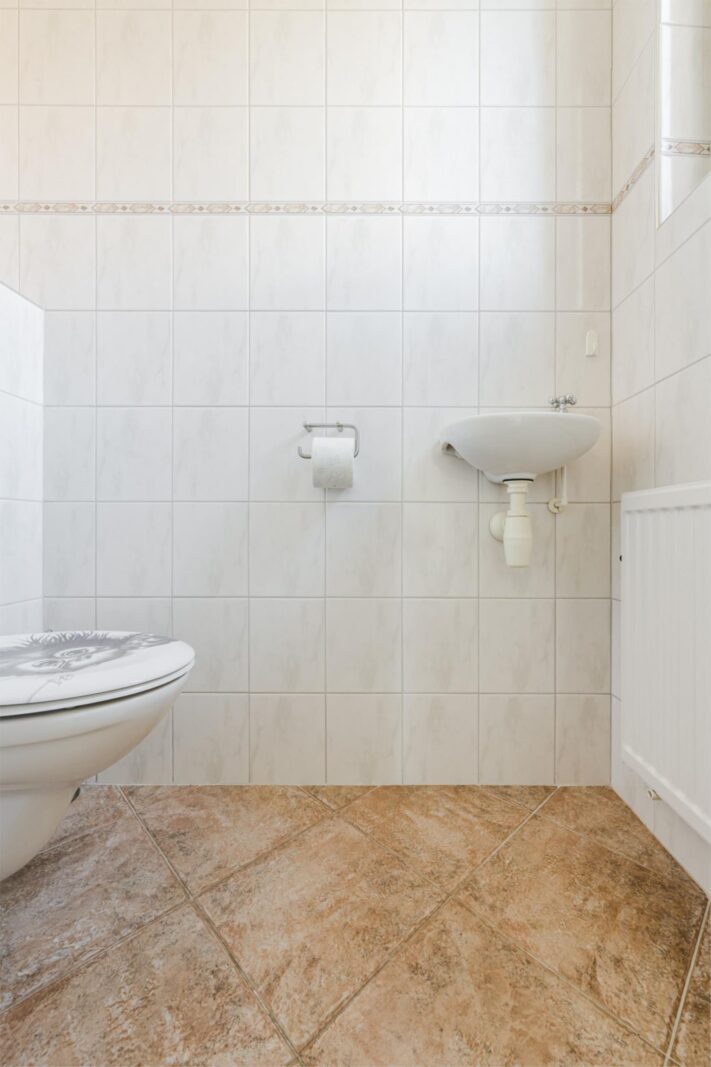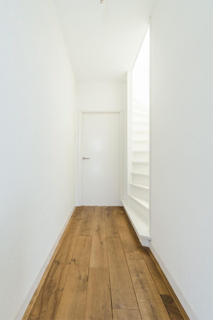 In de hal bevindt zich daarnaast het toilet en de vaste trap naar de eerste verdieping.