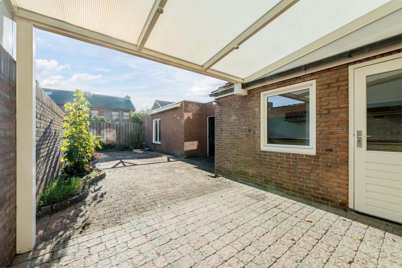 De achtertuin biedt veel privacy en is een heerlijke plek om van het buitenleven te genieten. Achter de woning staat een ruime garage met werkput – ideaal voor de klusser of autoliefhebber.