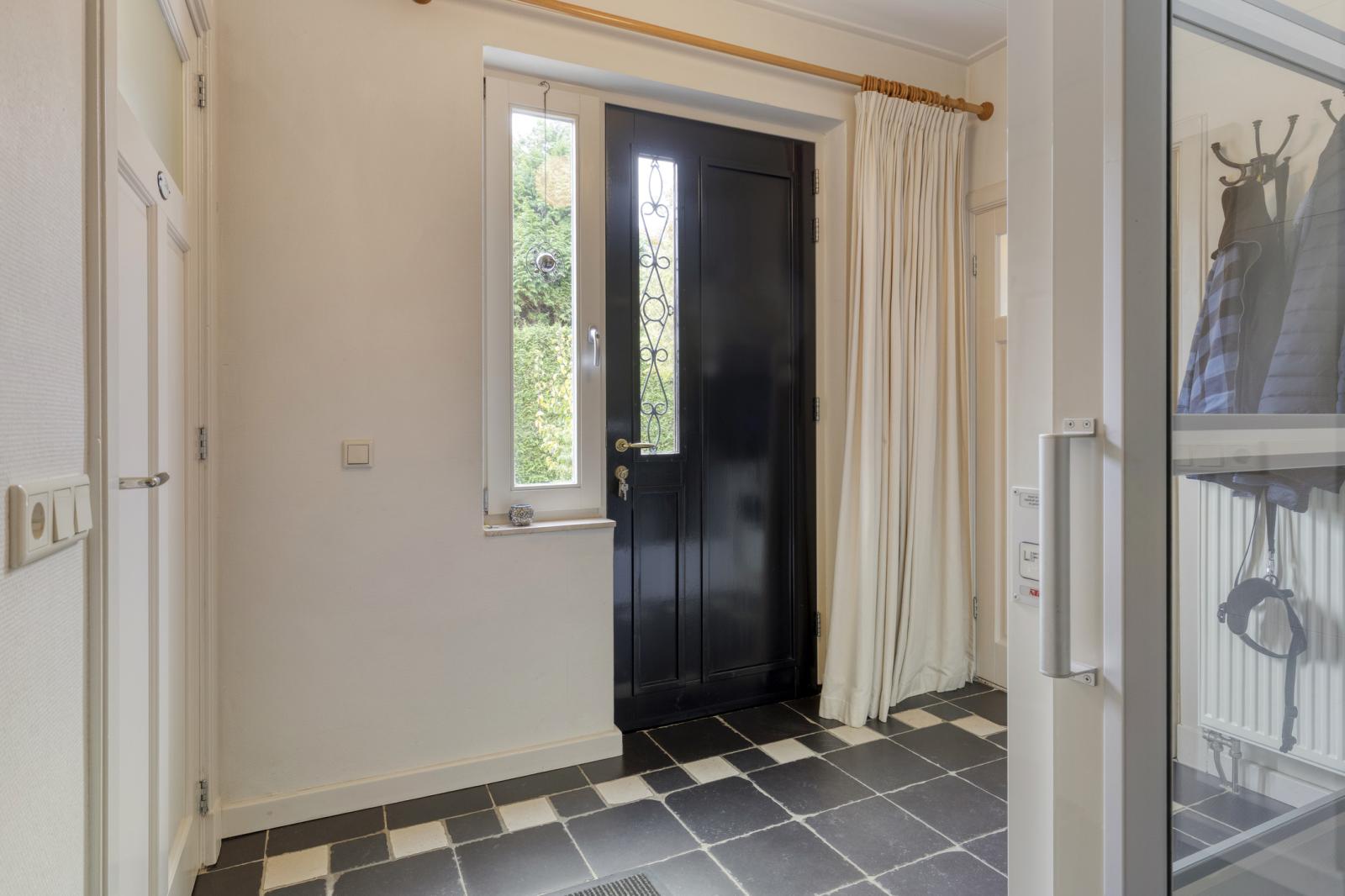 Entree, hal met trapopgang en doorgang naar de ruime sfeervolle lichte woonkamer. Tweede entree, hal met toegang tot lift, berging voorzien van wasmachineaansluiting, toilet met fontein en meterkast doorgang naar de eoonkamer en open woonkeuken voorzien van inbouwapparatuur, via keuken toegang tot de onderhoudsvriendelijke tuin met verwarmd zwembad en afgetimmerde garage.