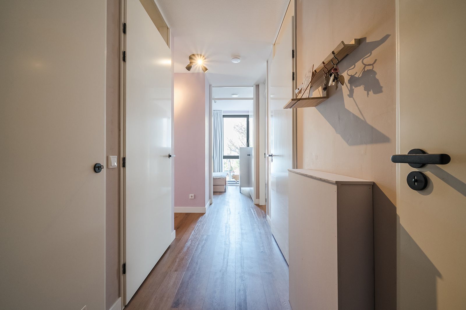 Je komt binnen in een nette entree met hal. Hier vind je het separate toilet en toegang tot alle vertrekken. Alles is gelijkvloers en modern afgewerkt.