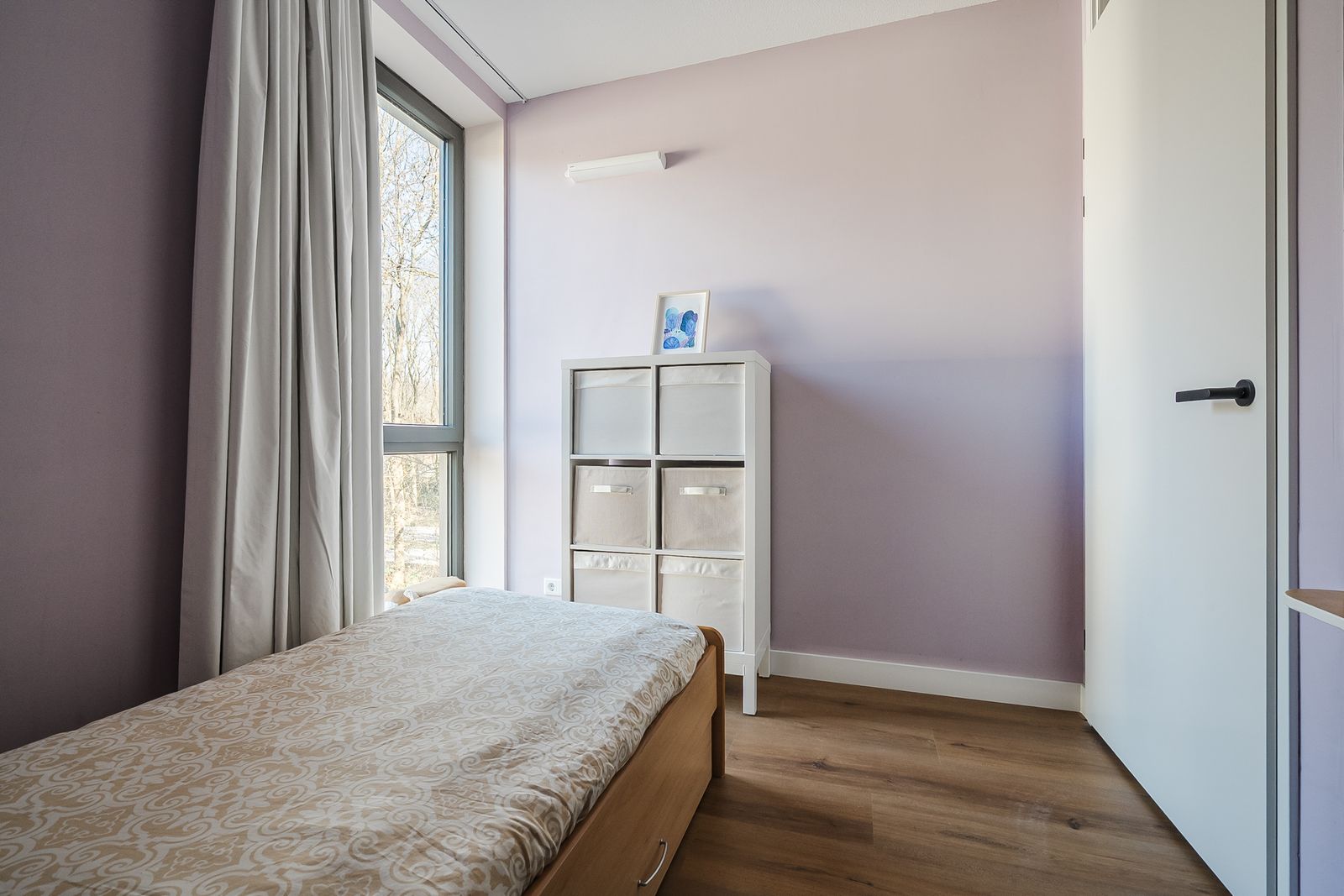 De woonkamer is ruim en grote ramen zorgen voor veel daglicht. Een plek om te ontspannen, om te lezen, om vrienden te ontvangen. En bij mooi weer? Dan open je de deur naar het balkon. Deze loggia is de perfecte plek voor een kop koffie in de ochtendzon met uitzicht op de groene binnentuin.